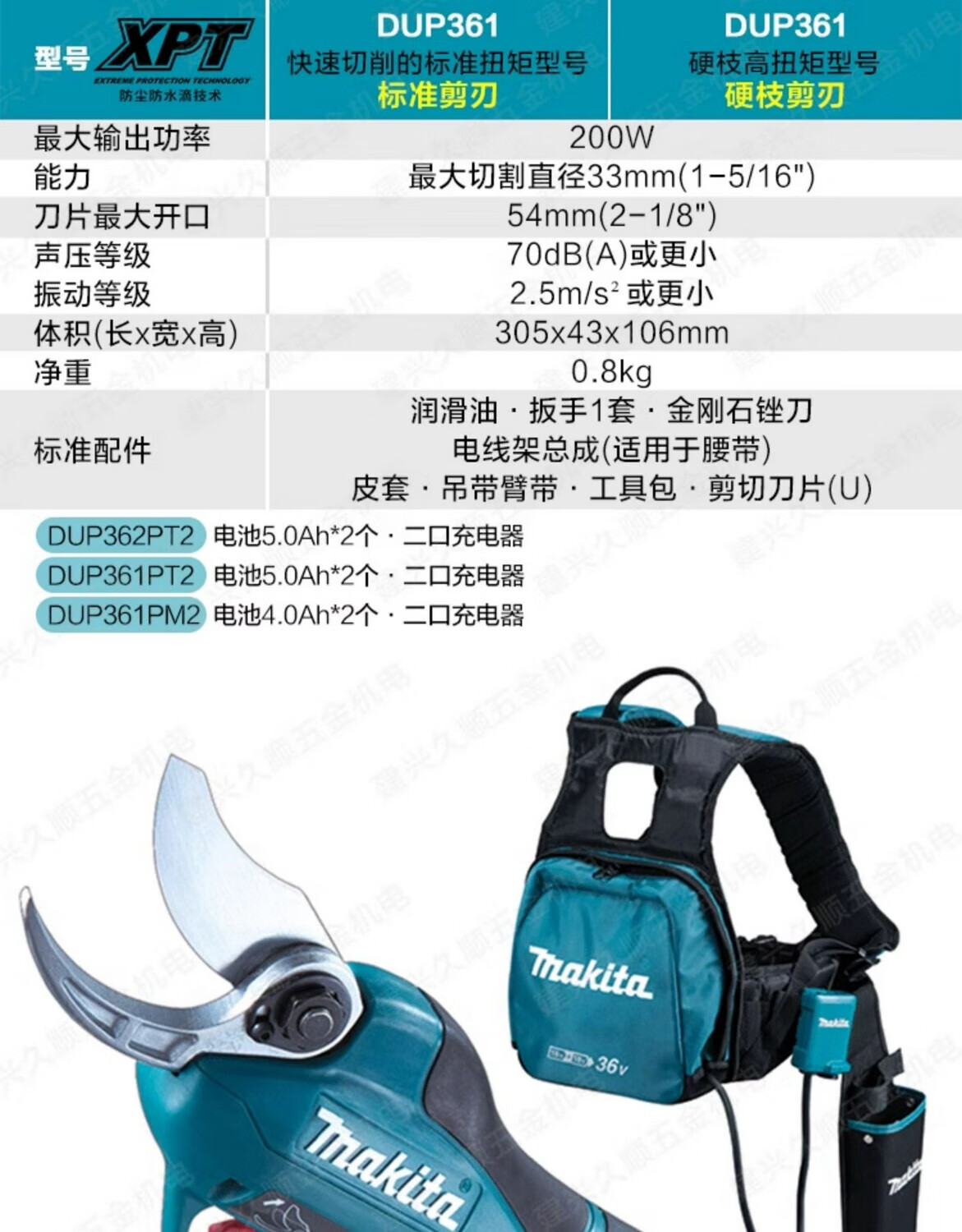 Makita (MAKITA) Makita lithium battery rechargeable fruit tree electric scissors garden pruning shears DUP361_362 DUP361PT2 two batteries and one charge 18V5.0Ah