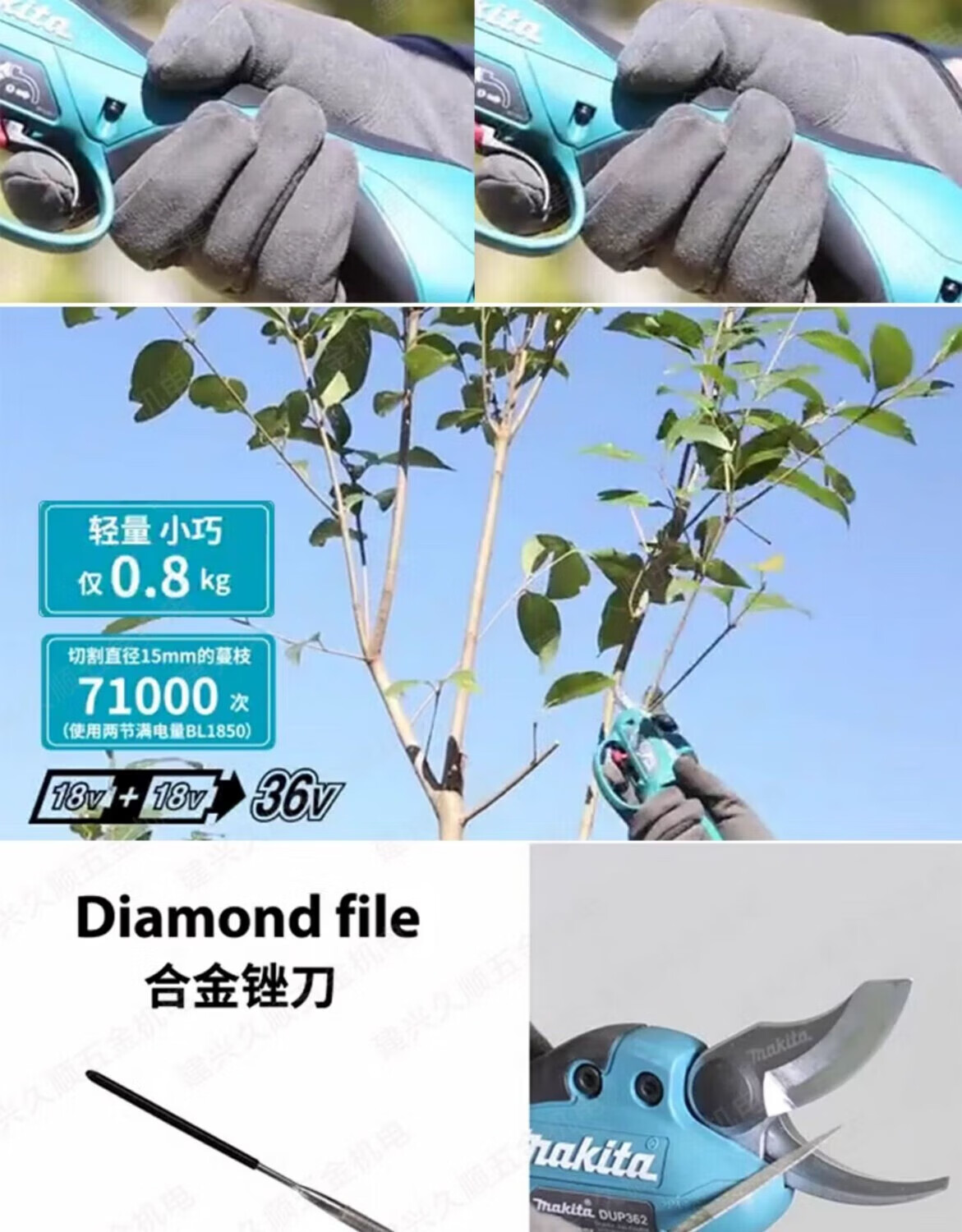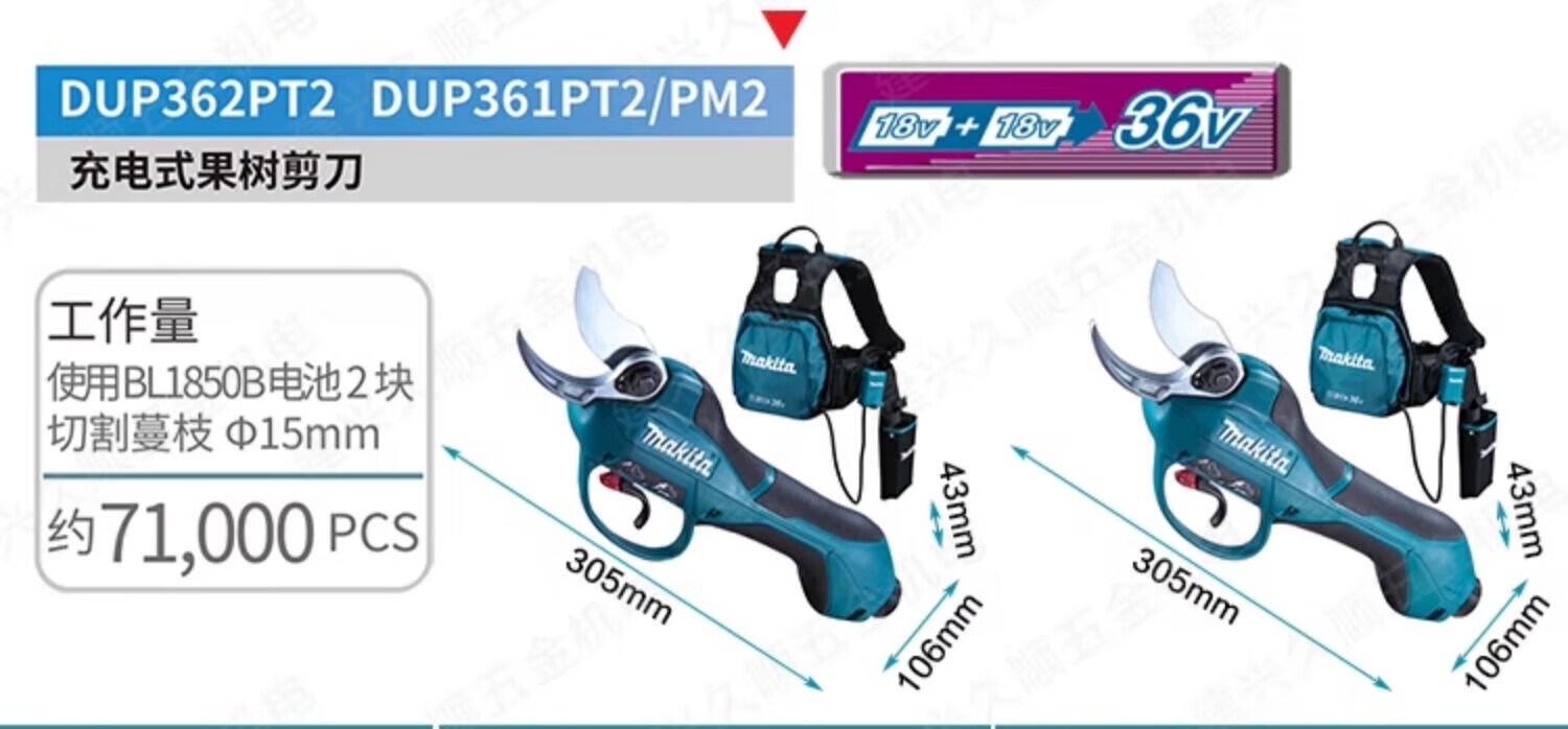 Makita (MAKITA) Makita lithium battery rechargeable fruit tree electric scissors garden pruning shears DUP361_362 DUP361PT2 two batteries and one charge 18V5.0Ah