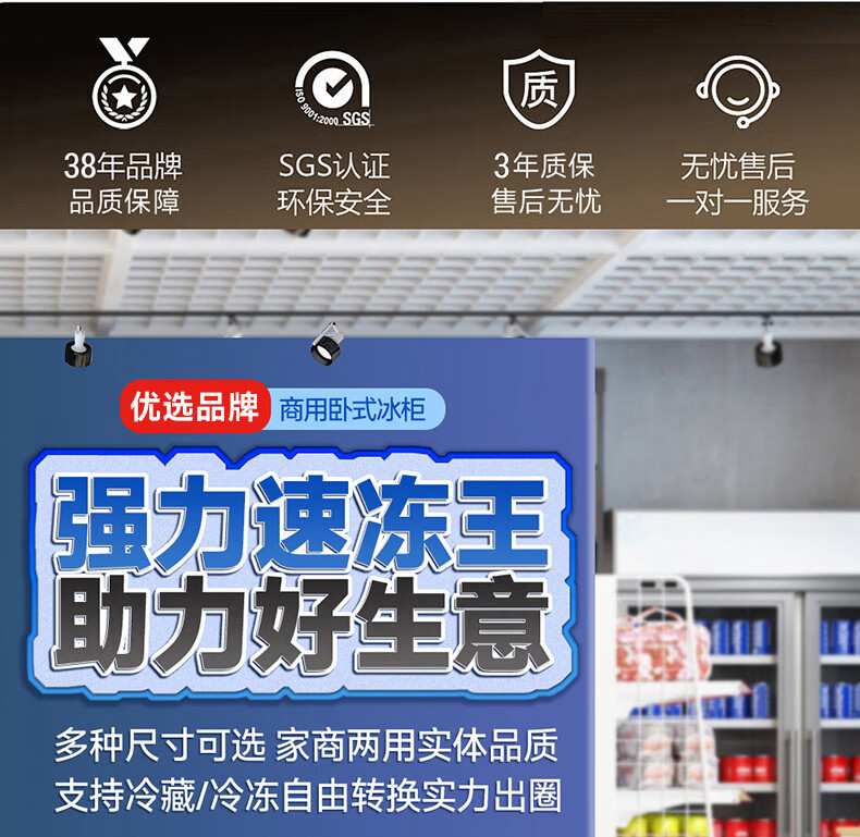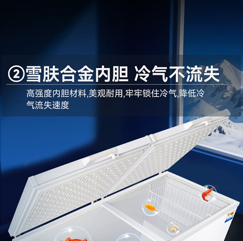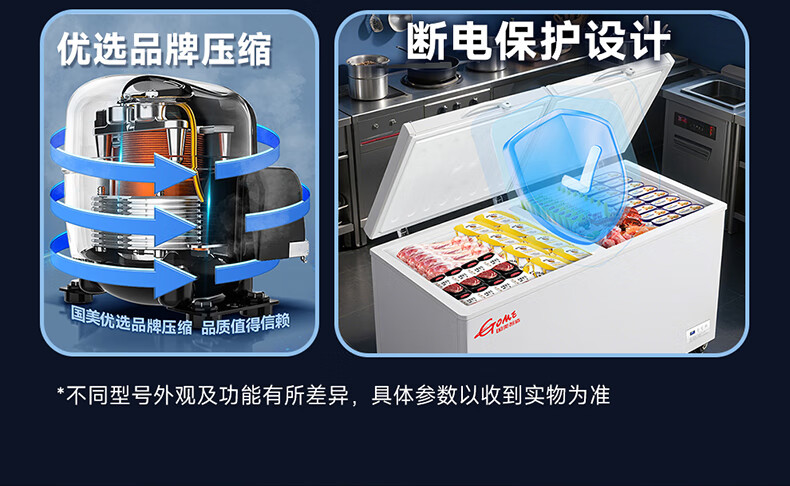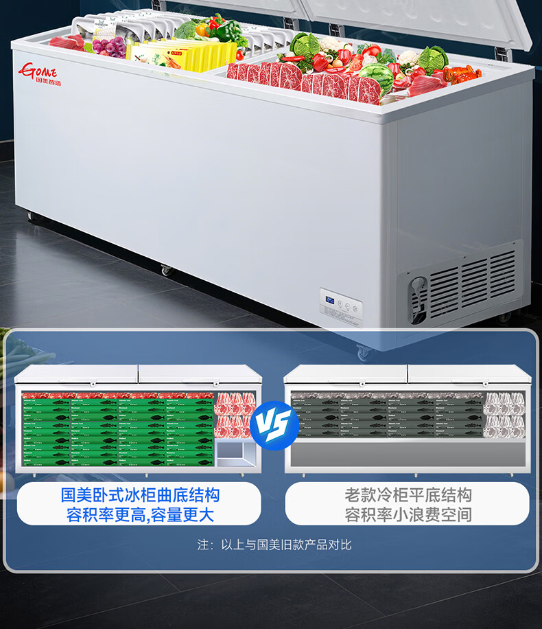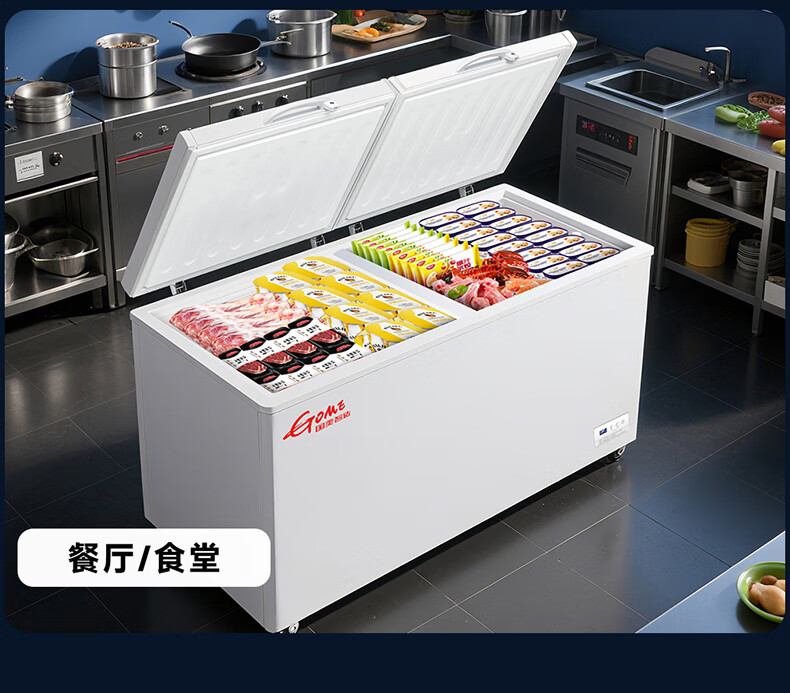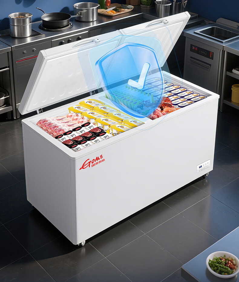Gome Intelligent Manufacturing GOME Freezer Commercial Large Capacity Household Horizontal Freezer Refrigerated Freezer Display Cabinet Dual Temperature Freezer Level 1 Energy Efficiency 606 Liters Single Temperature