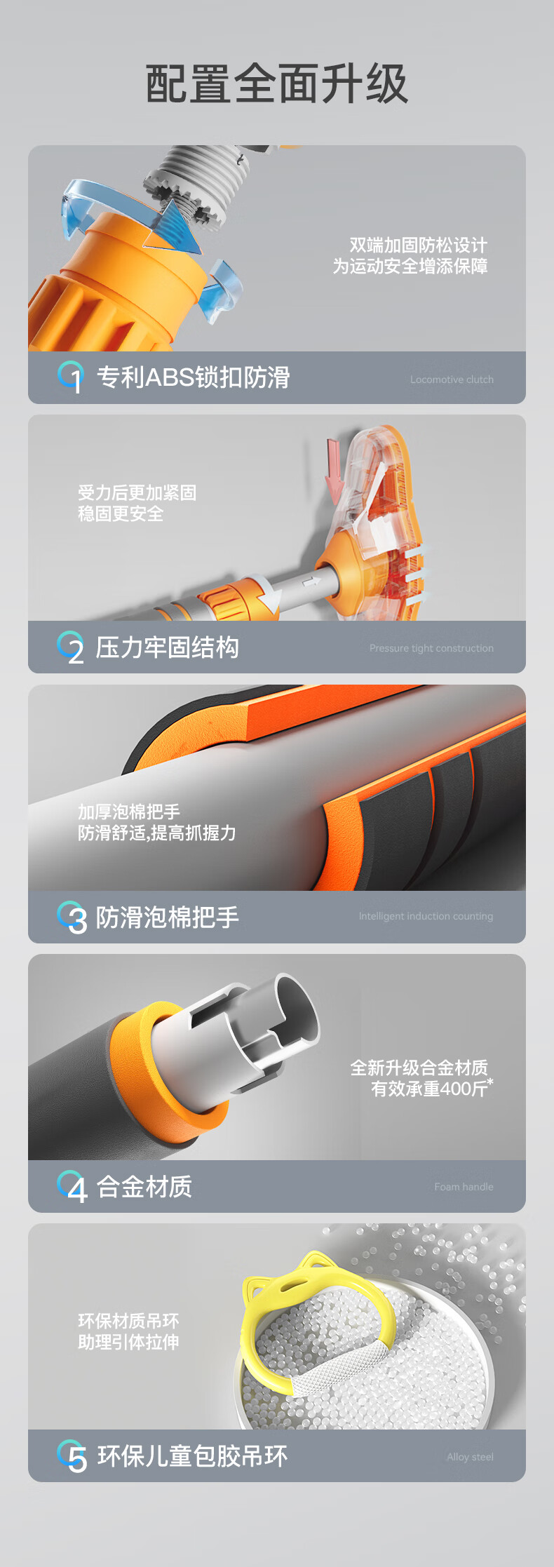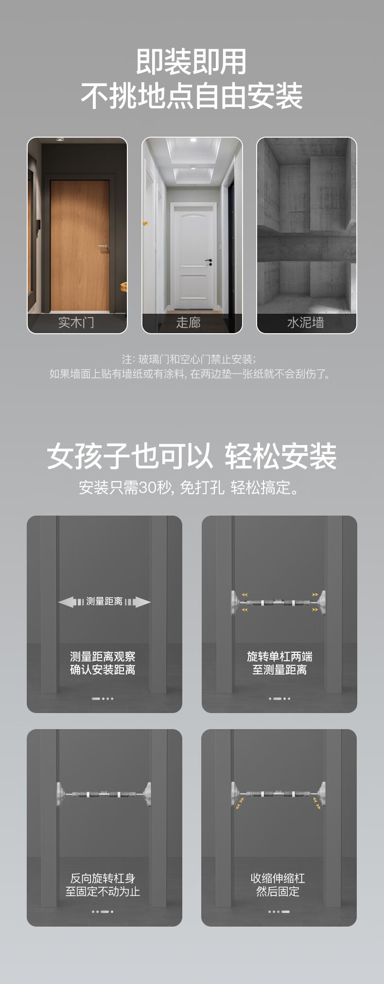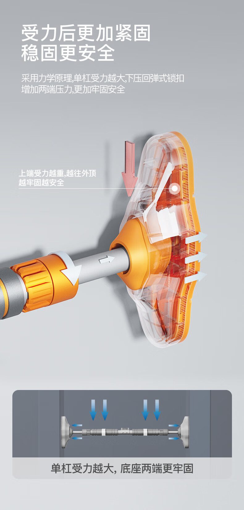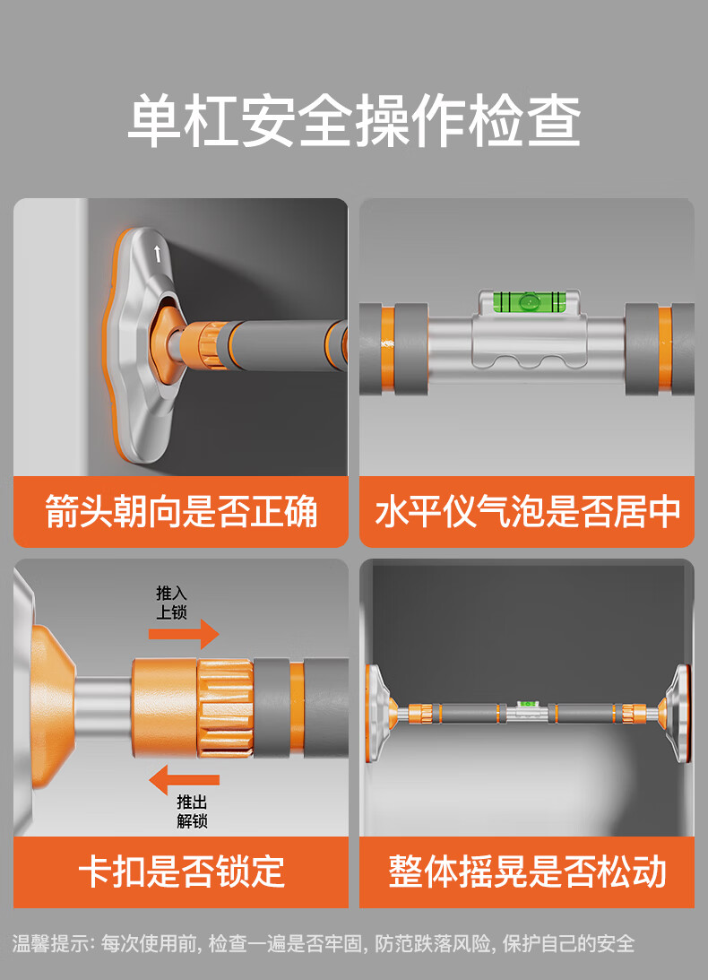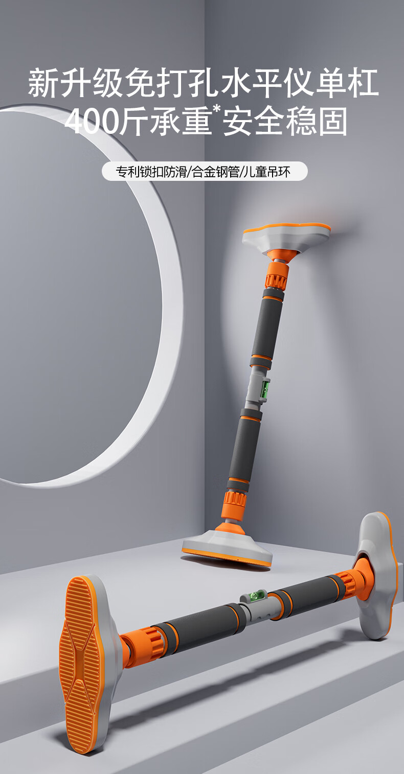 Japan imported horizontal bar home indoor pull-up device without punching door single bar stretching fitness home ring gray orange 95cm-125cm