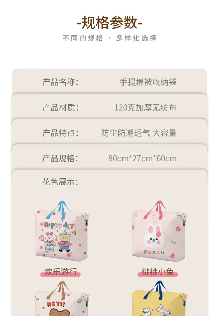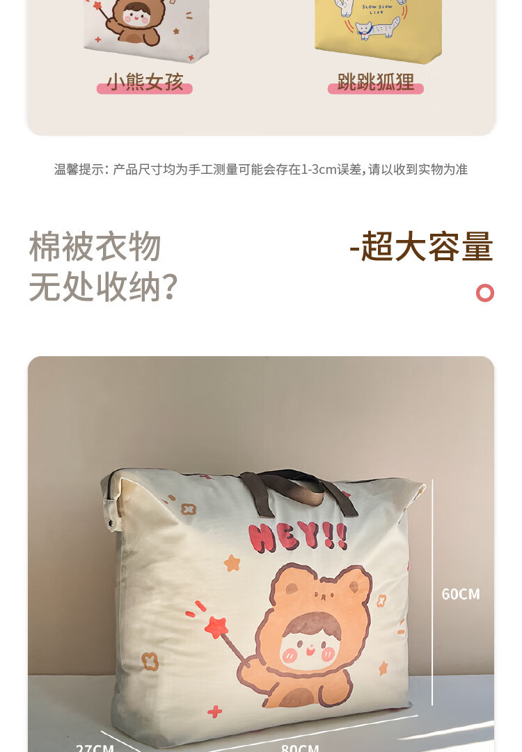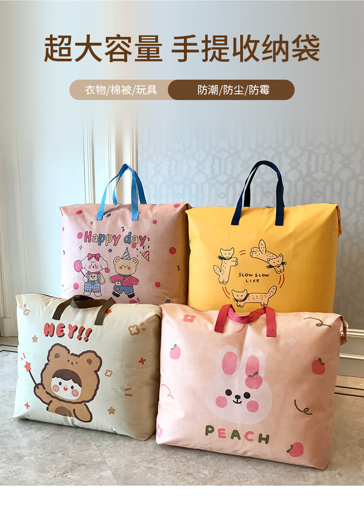 Quilt storage bag, large capacity, kindergarten clothes, quilt organization, home luggage packing, moving bag, woven bag, Jumping Fox extra large, double-sided pattern 80*27*60cm