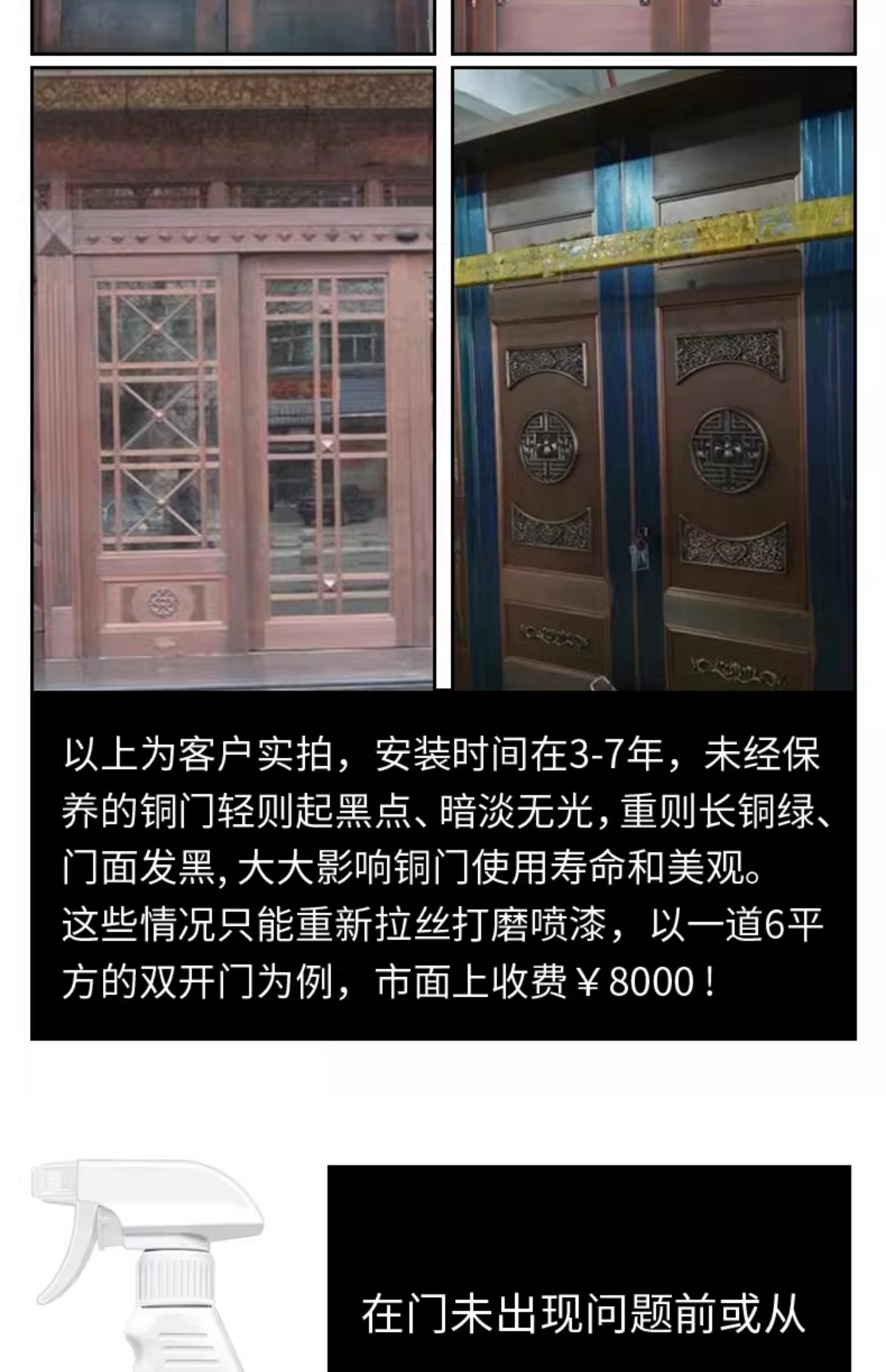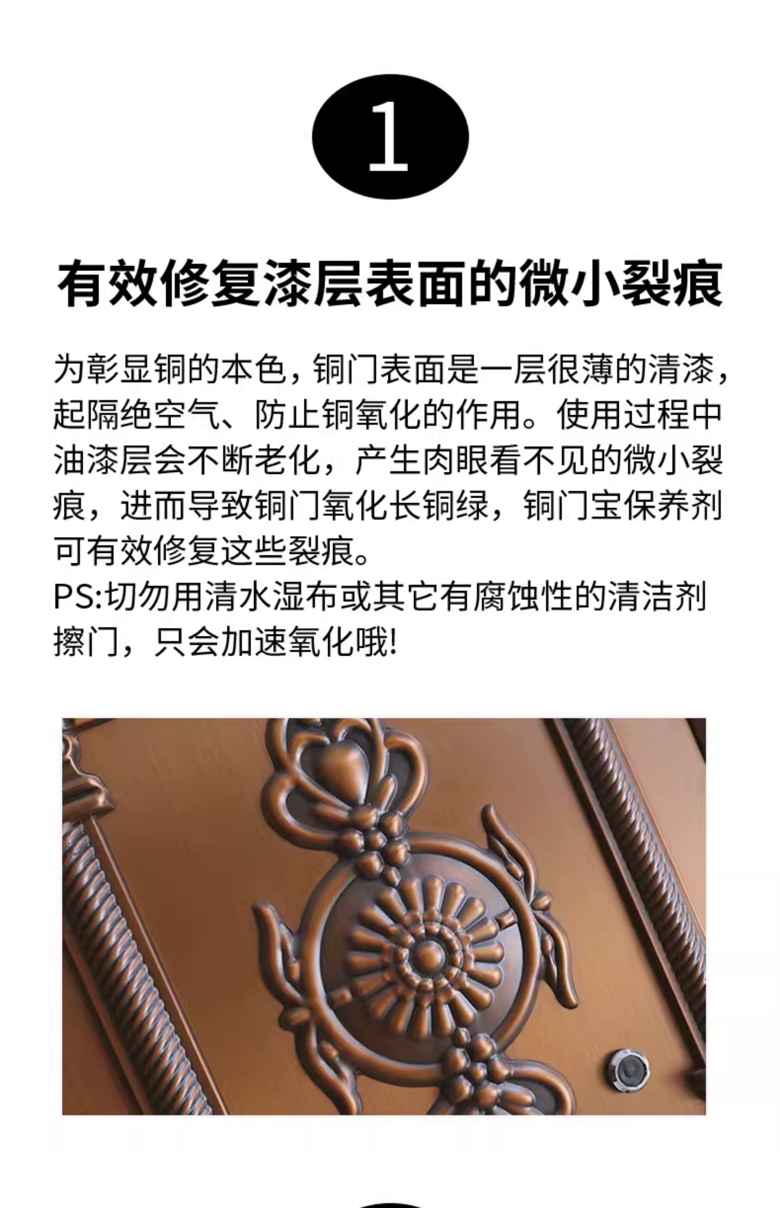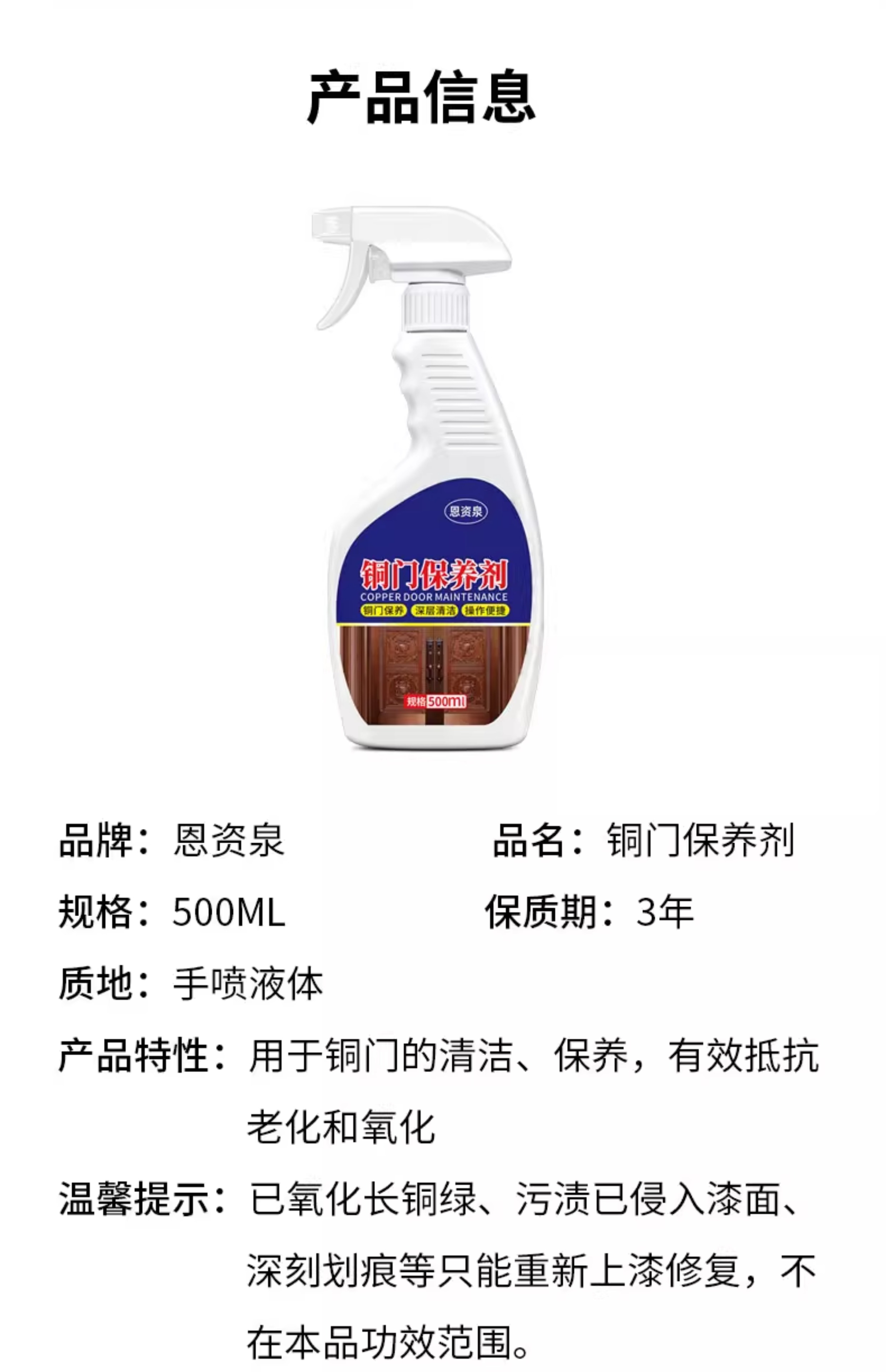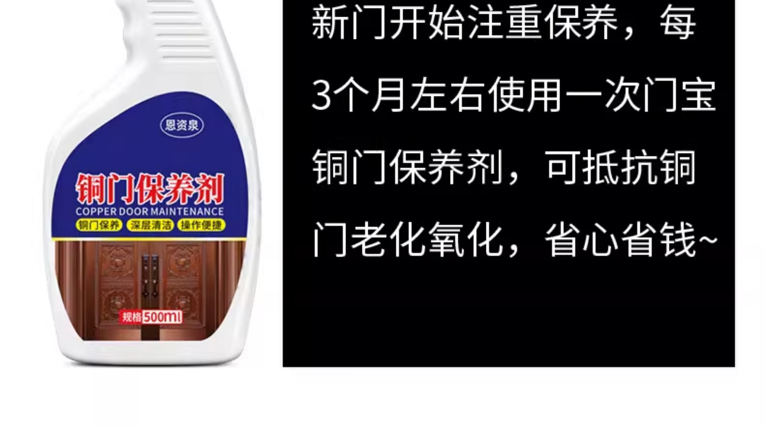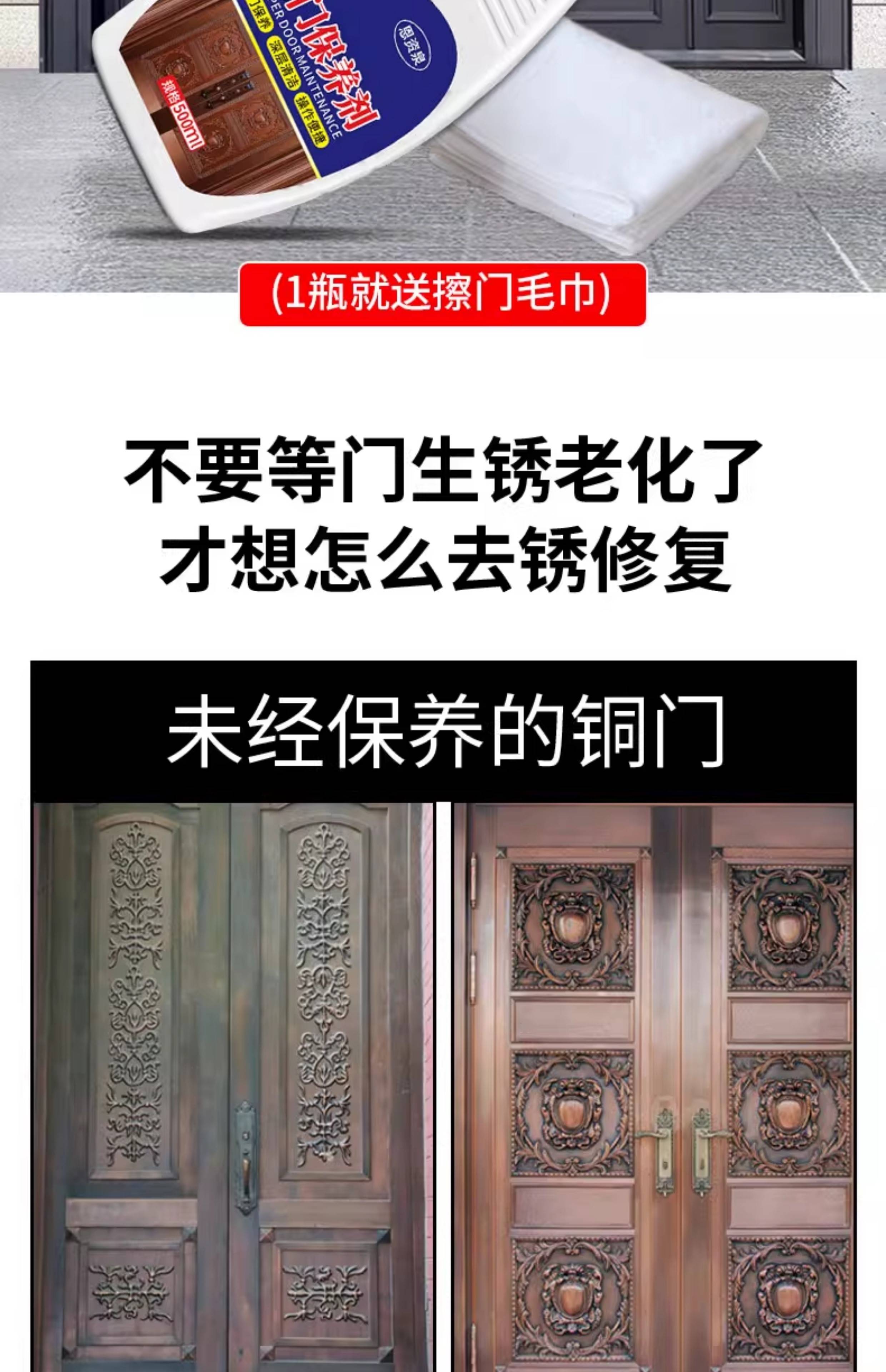 Copper door maintenance wax, polishing care, anti-oxidation essential oil, home rust removal and waxing artifact, metal door cleaning, 1 bottle of 500ml, free maintenance cloth*1
