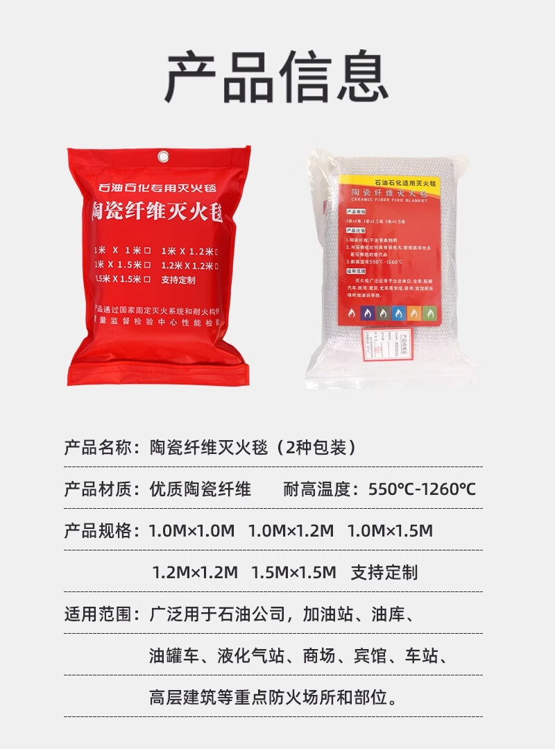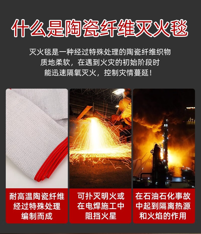 Firefighting household commercial fire extinguishing blanket silicone fiberglass fire extinguishing blanket emergency escape fire extinguishing blanket household fire extinguishing suit escape suit 1.5m*1.5m ceramic fiber fire extinguishing blanket (2mm thick)