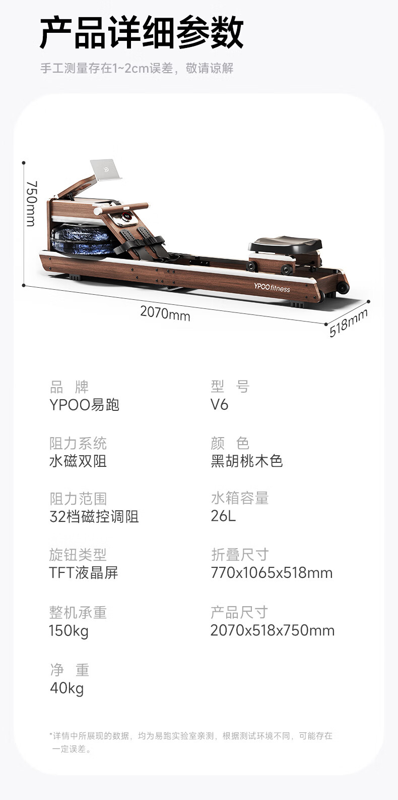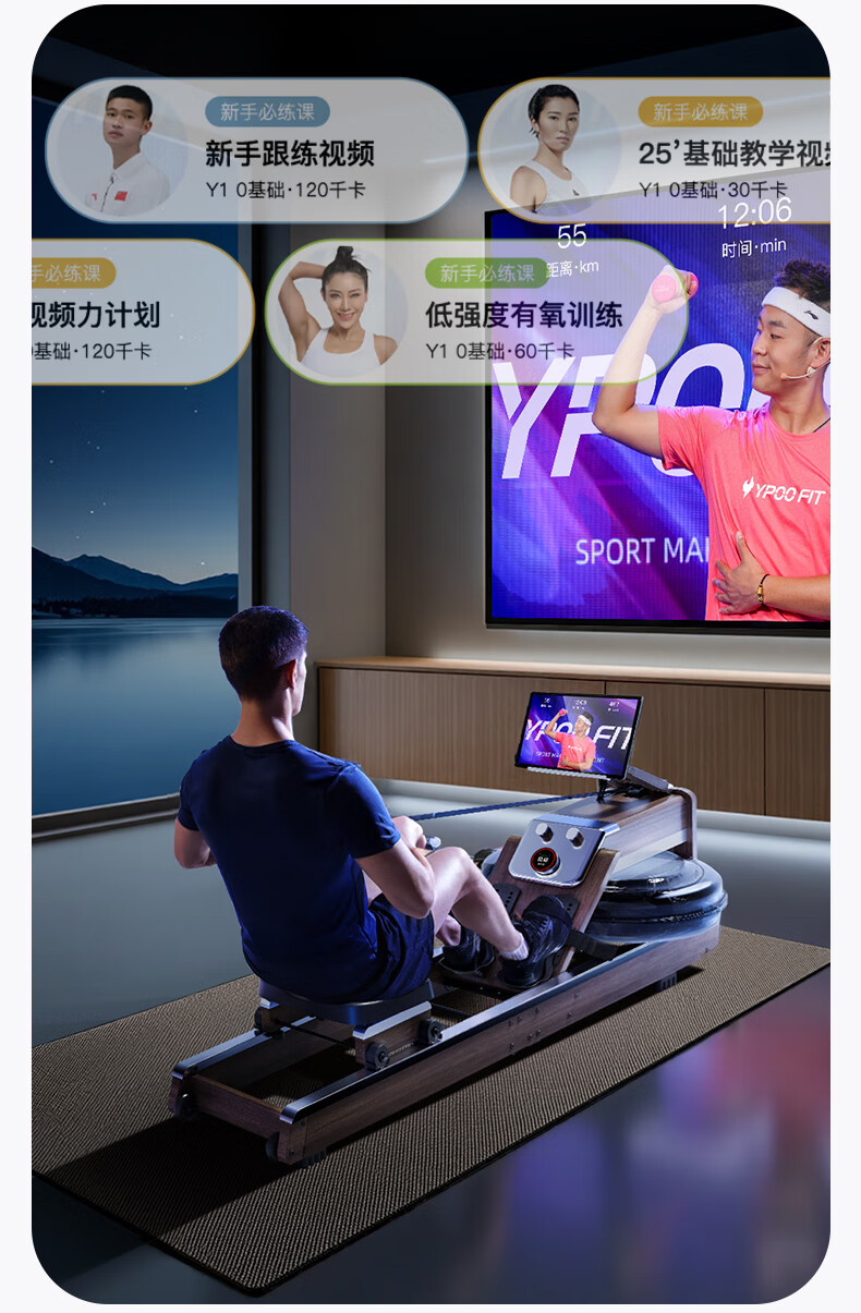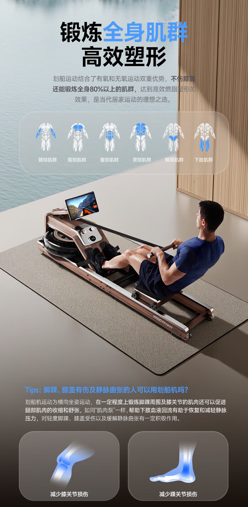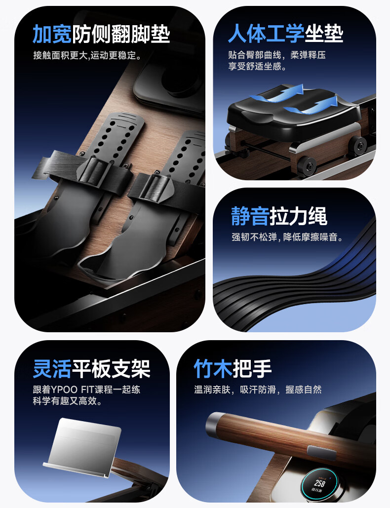 Yipao rowing machine self-generates household water resistance magnetically controlled double resistance indoor sports and fitness equipment intelligent adjustment foldable V6 newly upgraded 16 blades - self-generated/foldable 3