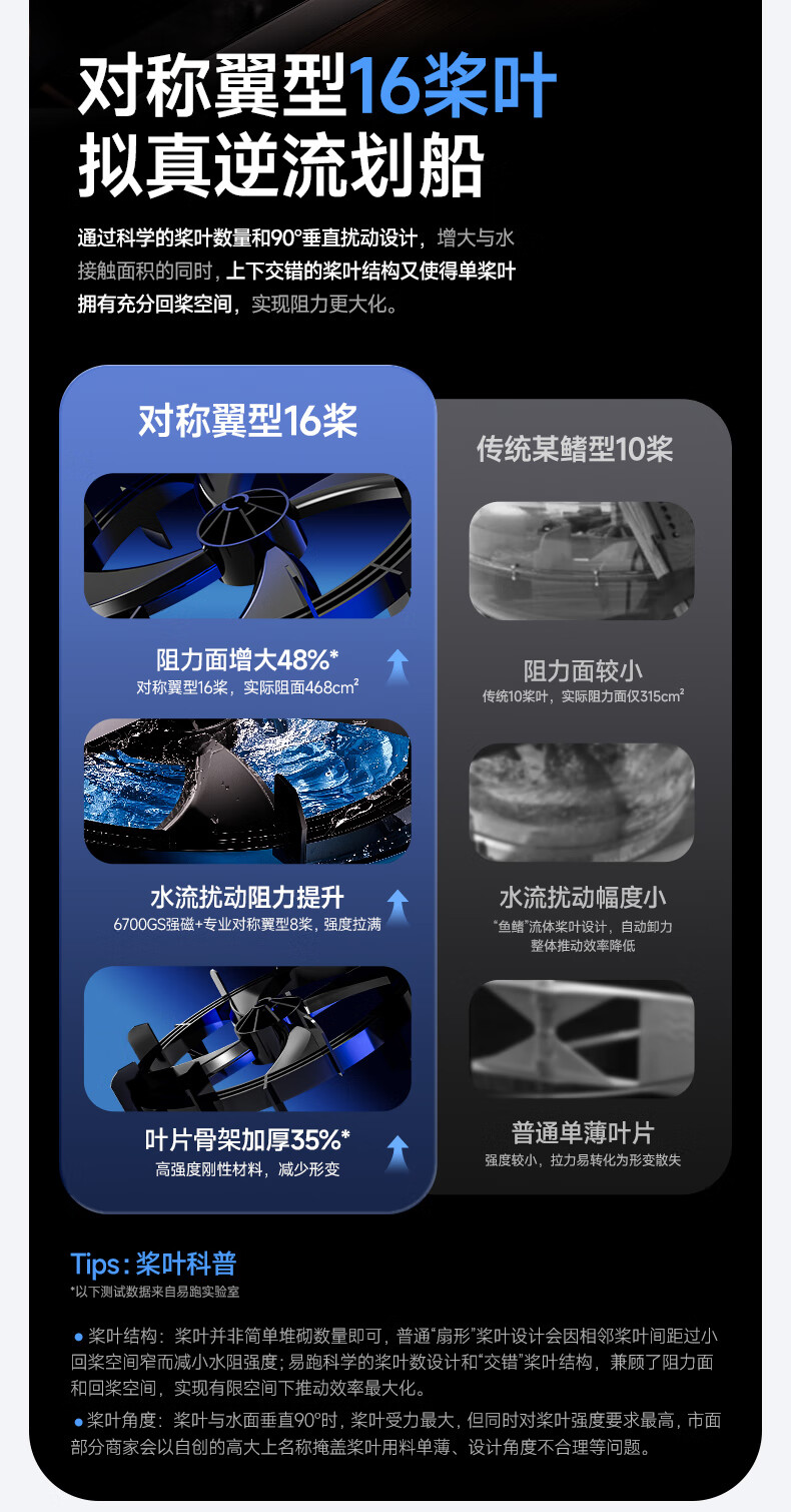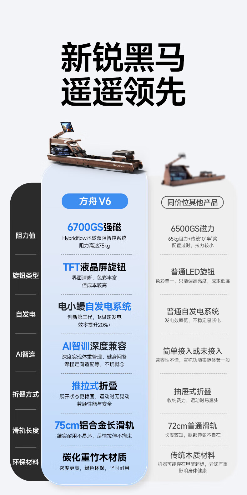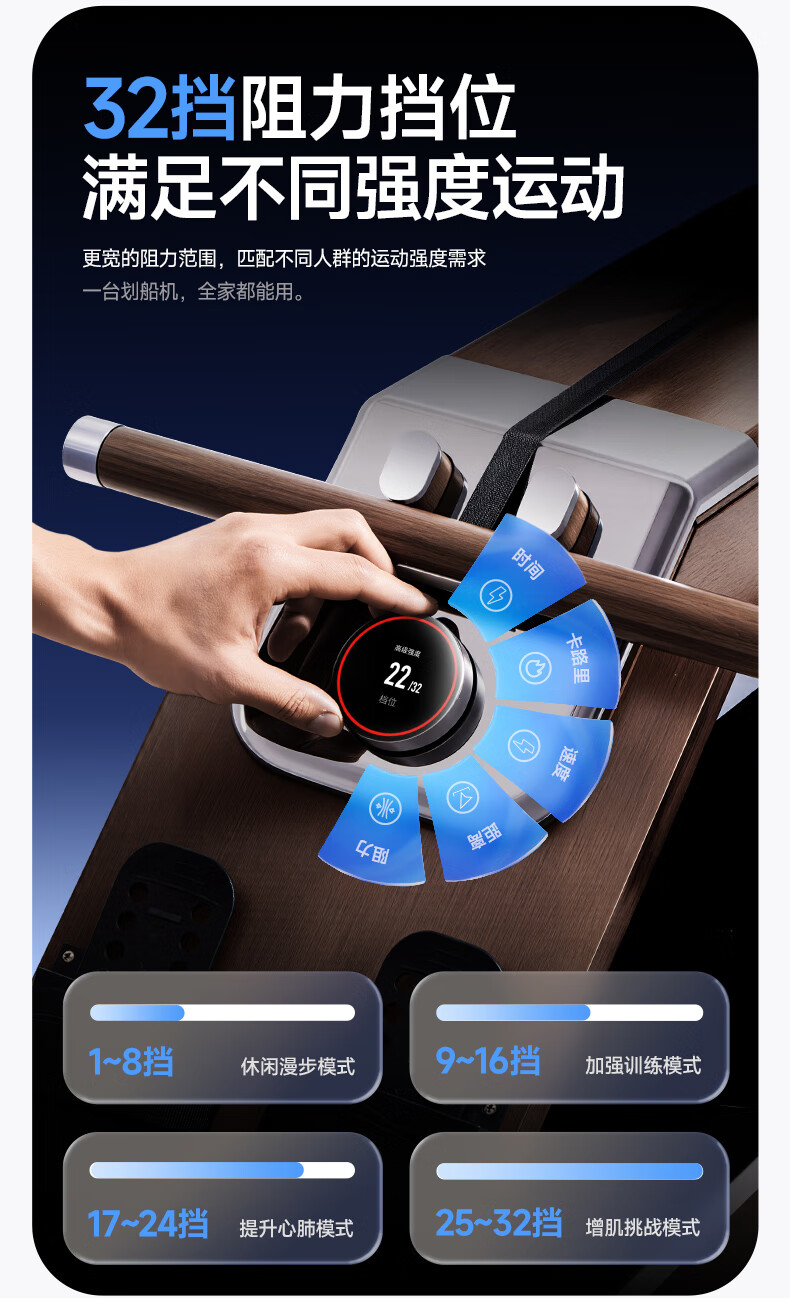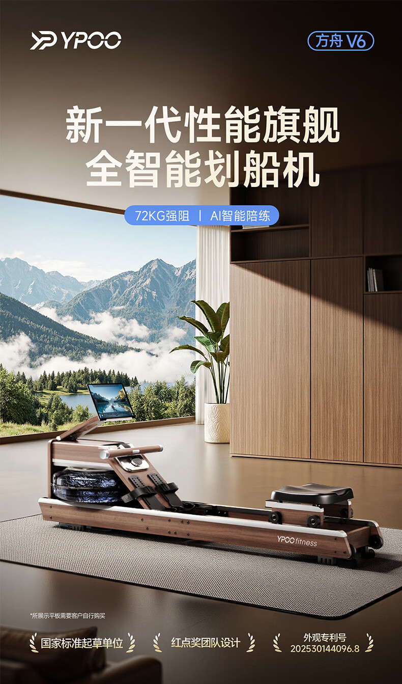 Yipao rowing machine self-generates household water resistance magnetically controlled double resistance indoor sports and fitness equipment intelligent adjustment foldable V6 newly upgraded 16 blades - self-generated/foldable 3