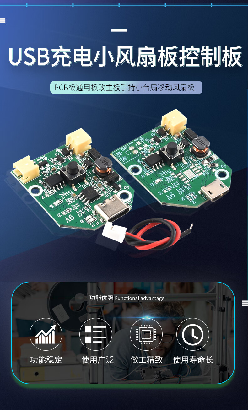 USB charging small fan board control board PCB board universal board modified motherboard handheld small table fan mobile fan board Micro charging model with line 3 gears 9V no specifications