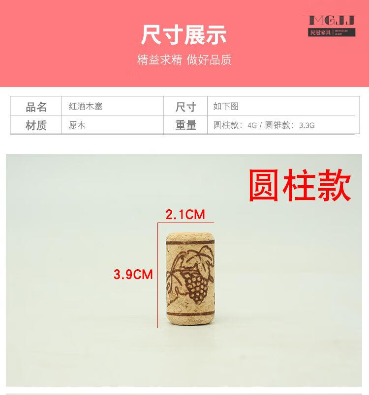 Japanese quality natural log red wine stopper, fresh-keeping cork stopper, cork sealing stopper, red wine bottle stopper, oak stopper, Portuguese cone (1.8x2.2x3.5.cm) 1 pack