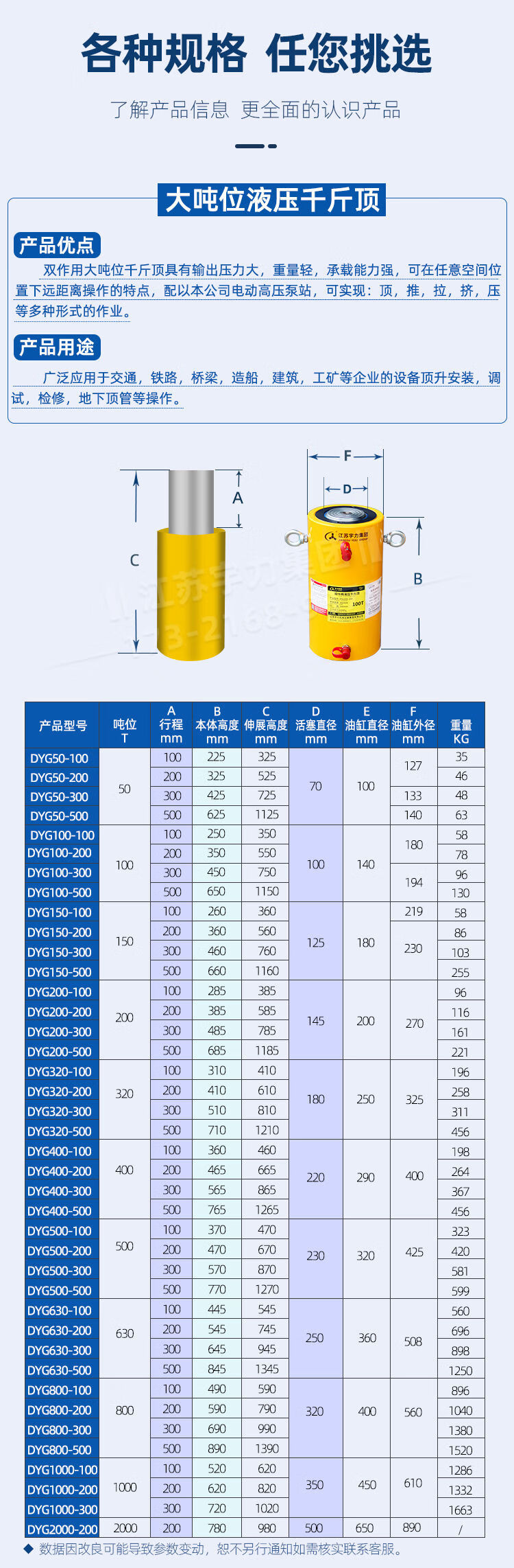 Ling Yuxun electric hydraulic jack long stroke separated large tonnage DYG100T200T320 tons non-standard customization DYG50-200 (50T stroke 200)