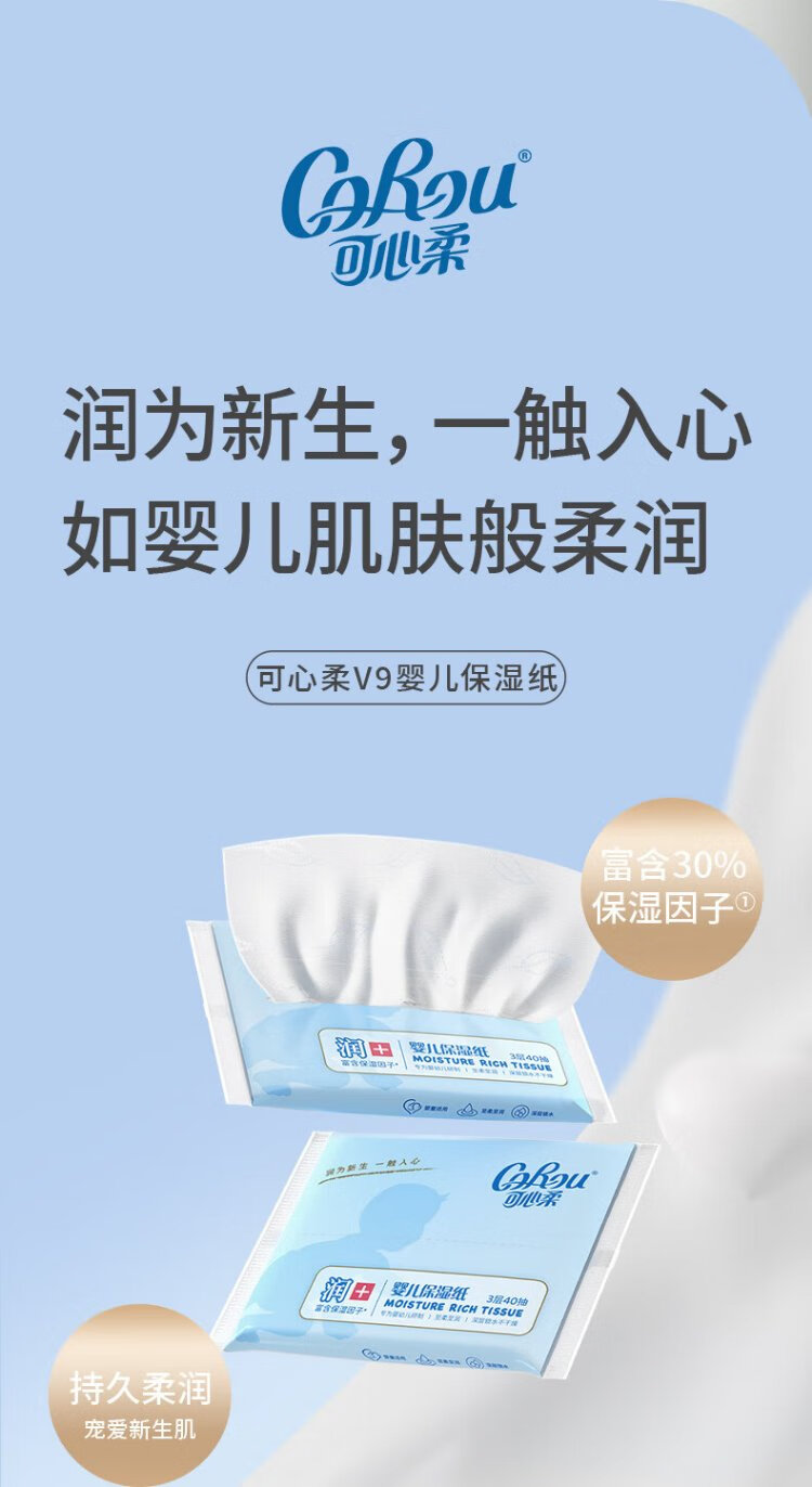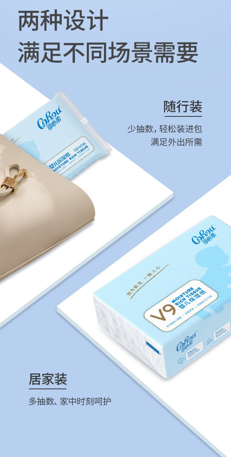 COROU V9 tissue, baby tissue, 3 layers, 80 tissue, cream paper, moisturizing tissue, soft tissue for nose wiping, small pack, portable, trial pack, 3 layers, 80 tissue*2 pack