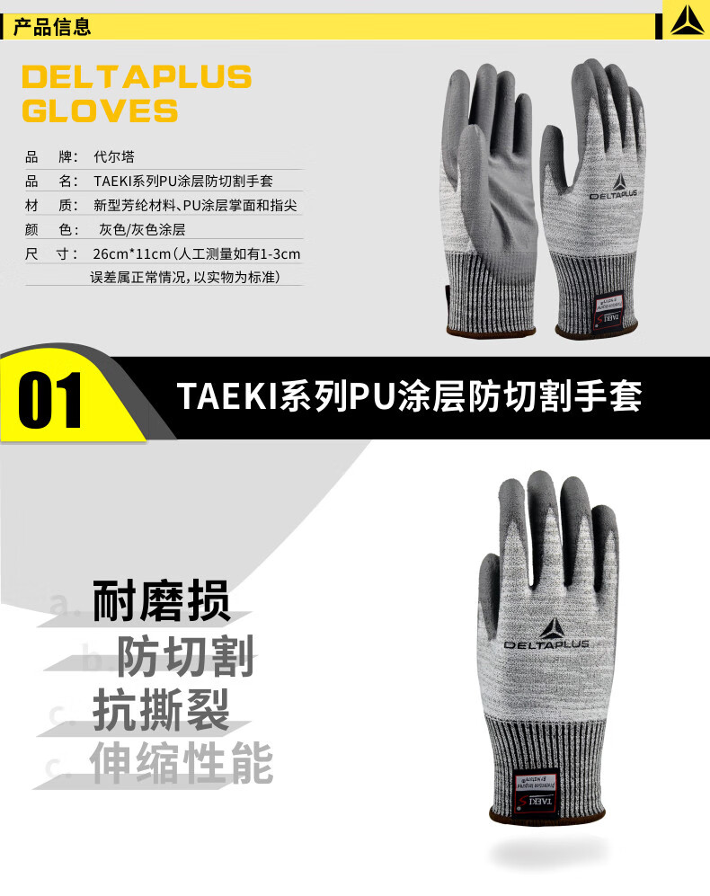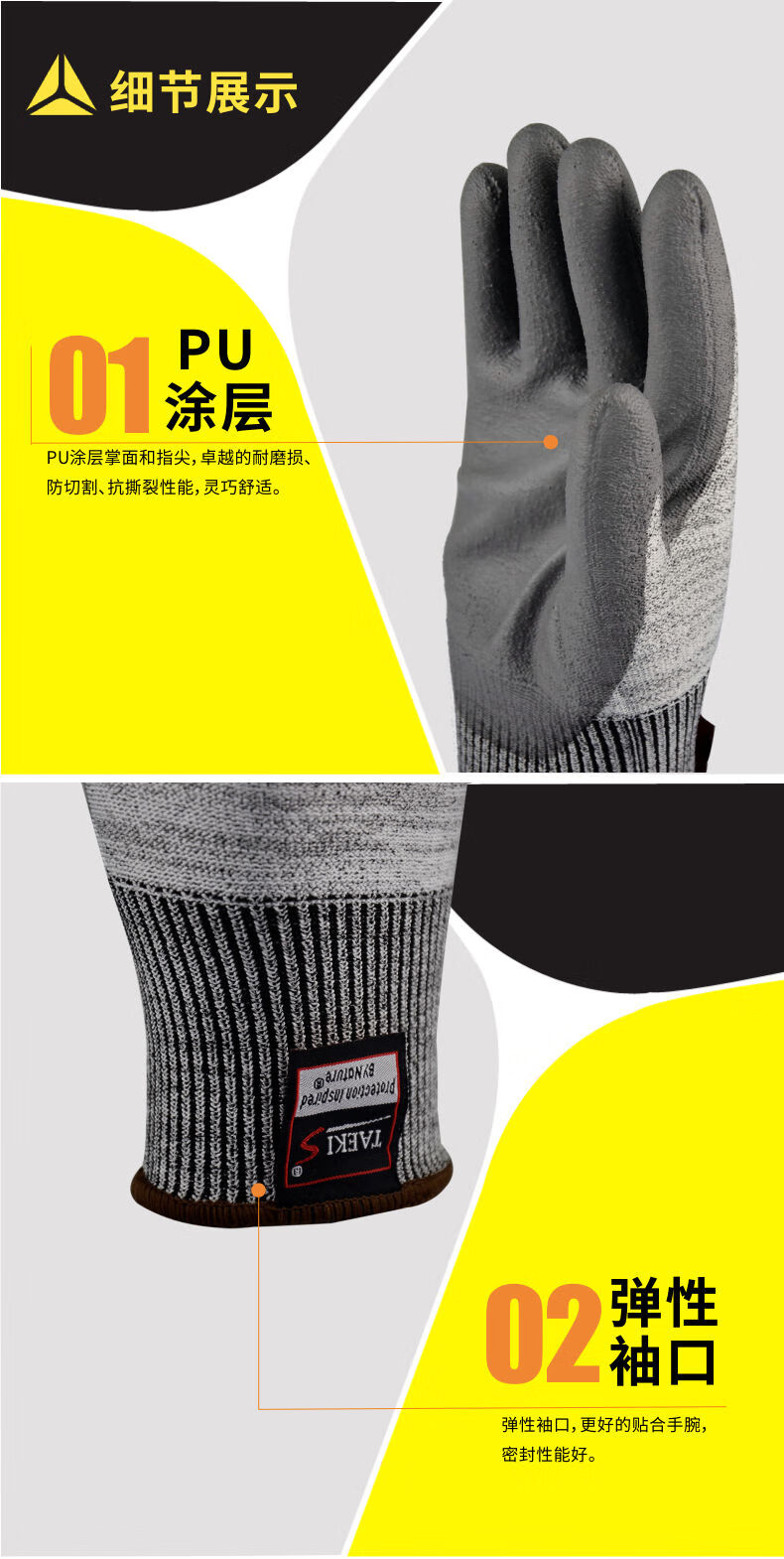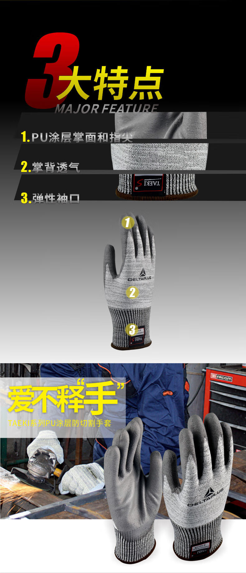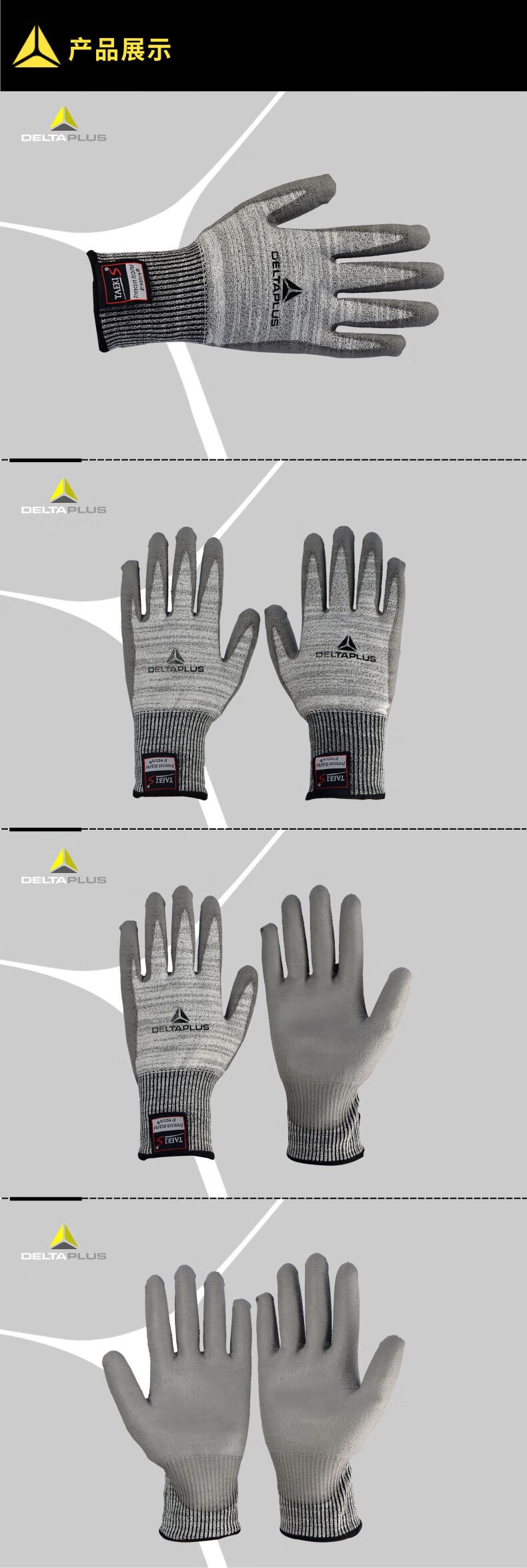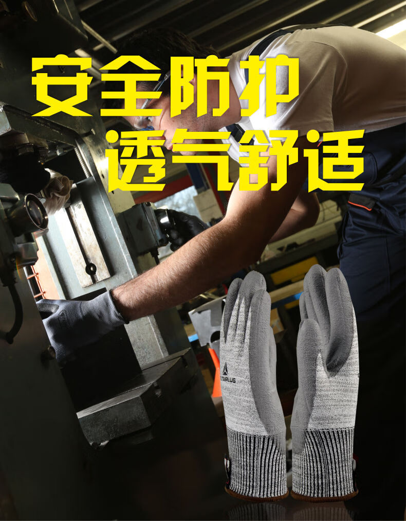 Delta 202011 Gloves Labor Protection PU Coated Palm Dip Nitrile Gloves Cut-Resistant Wear-Resistant Gloves Tear-Resistant Gray M