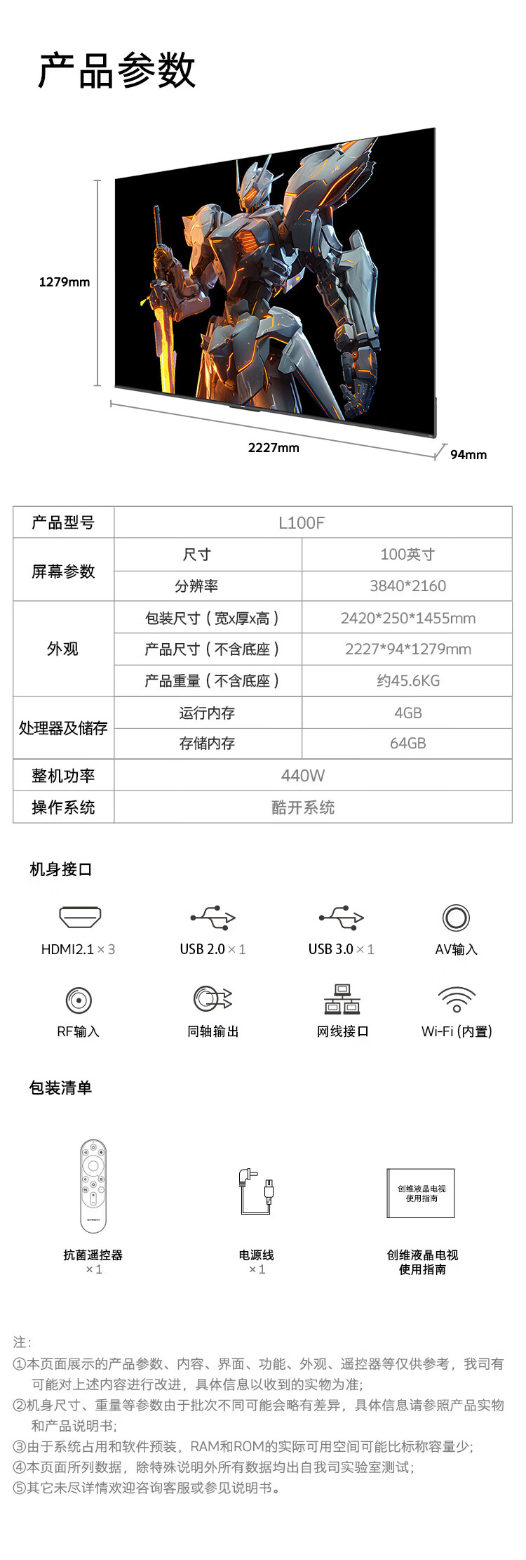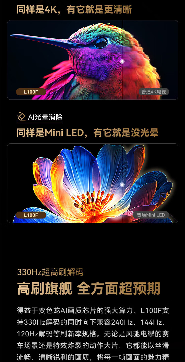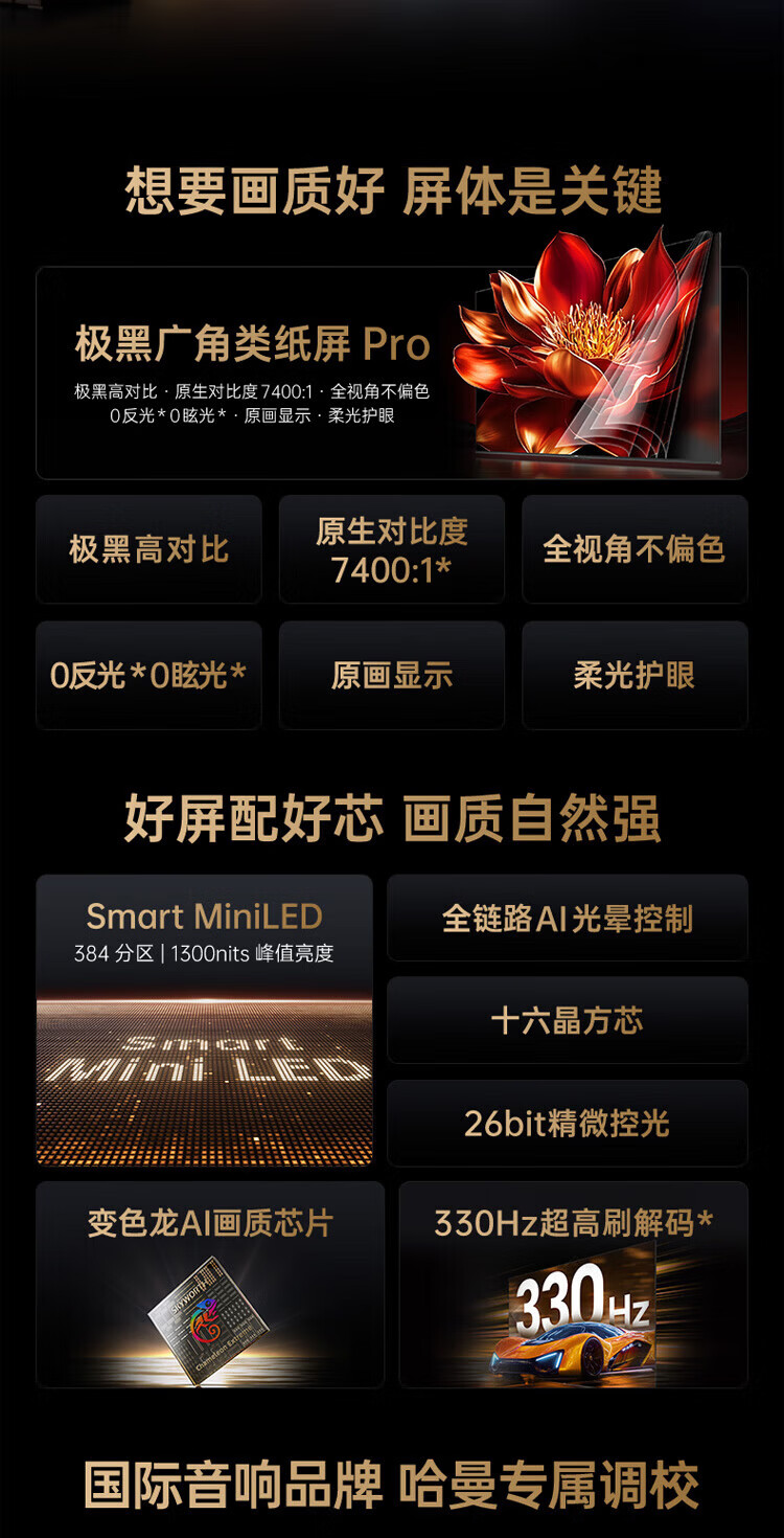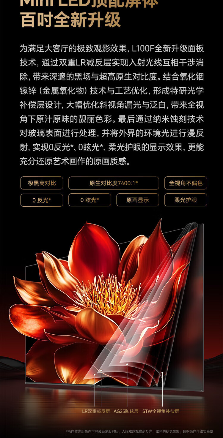 Skyworth TV L100F 100-inch ultra-black wide-angle paper screen Pro Smart MiniLED AI picture quality chip soft light eye protection ultra-thin home living room flat-panel TV 100-inch home installation +L100F