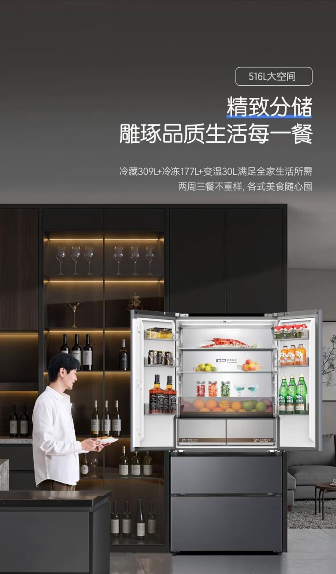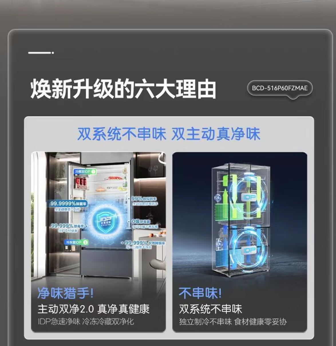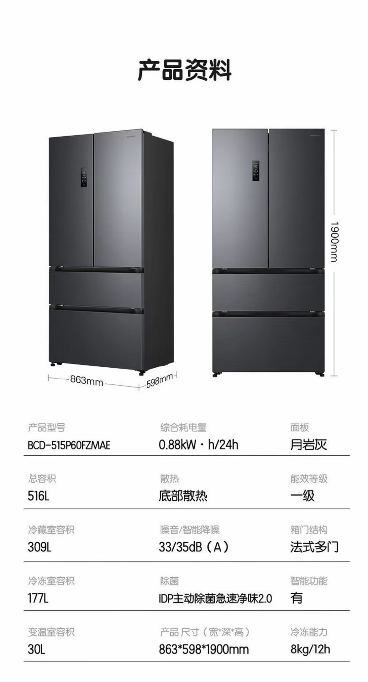 Rongsheng grade machine Rongsheng sugar cube 516 liters of gray active deodorization and sterilization dual system French four-door built-in refrigerator BCD-516P60FZMAE with slight defects in appearance