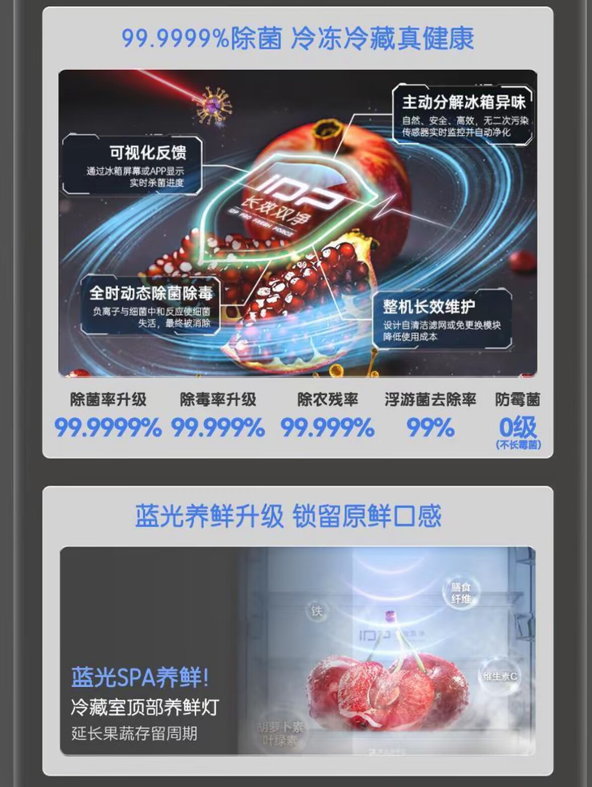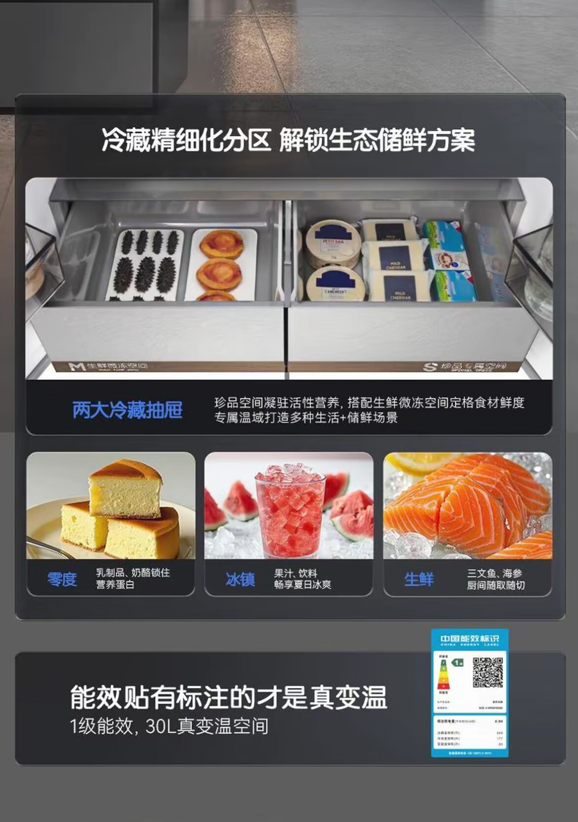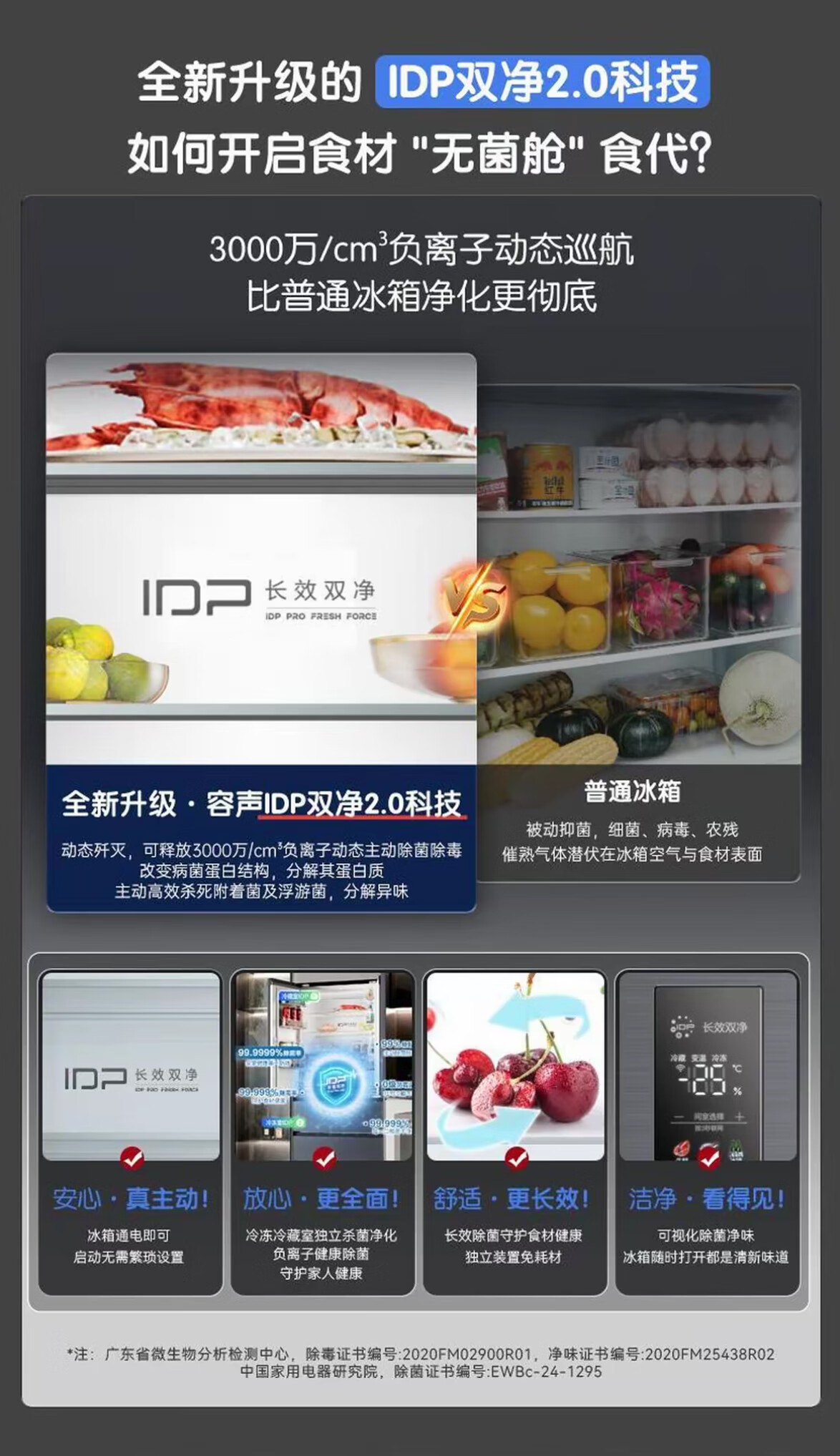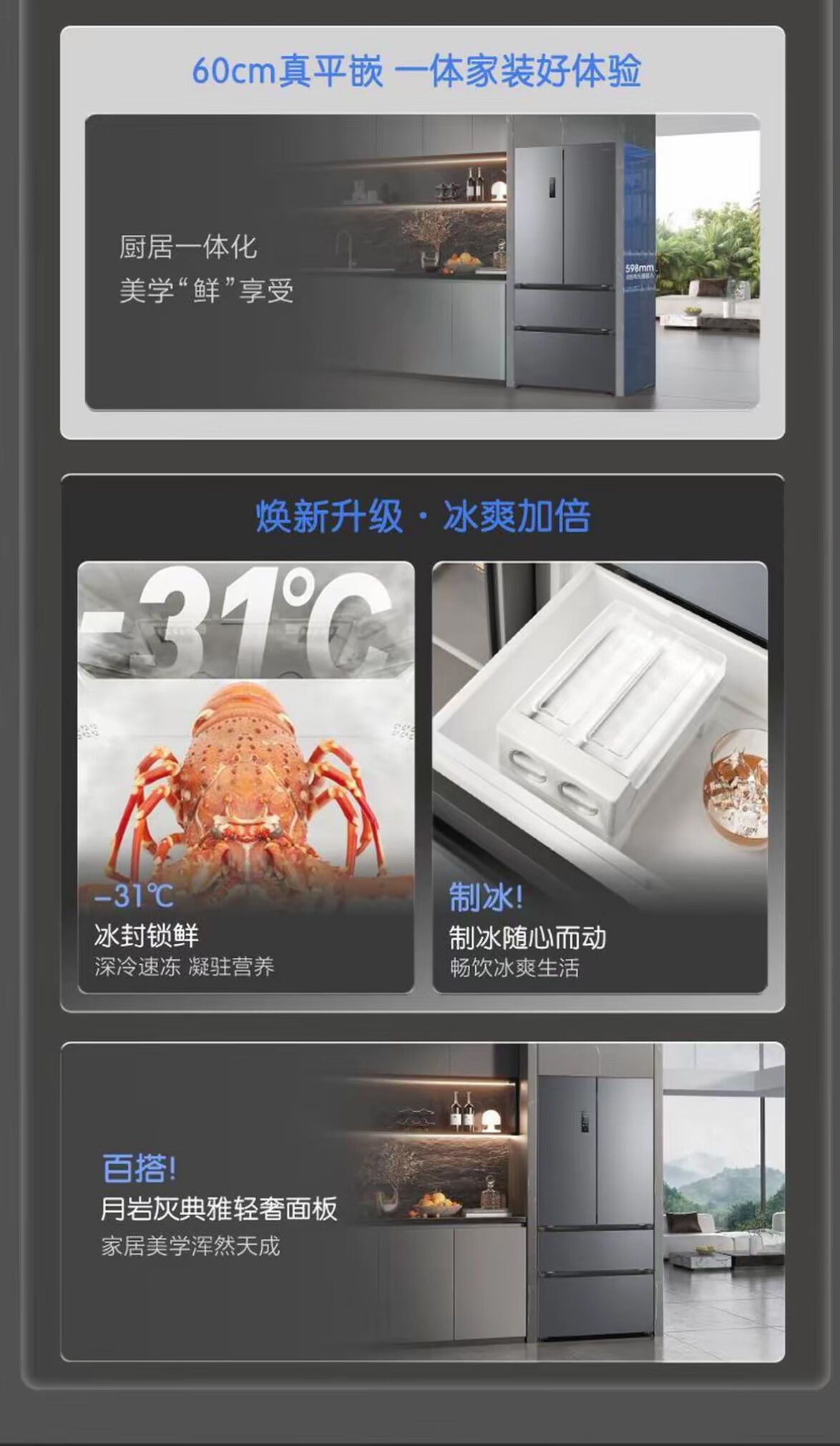 Rongsheng grade machine Rongsheng sugar cube 516 liters of gray active deodorization and sterilization dual system French four-door built-in refrigerator BCD-516P60FZMAE with slight defects in appearance
