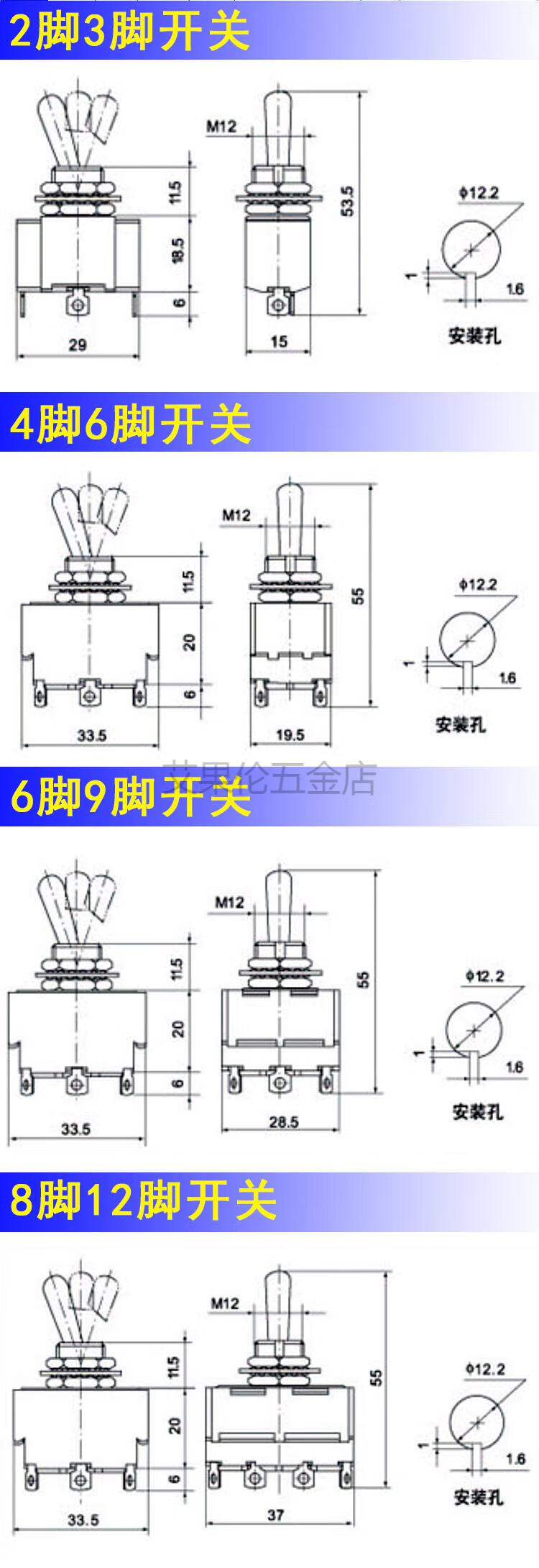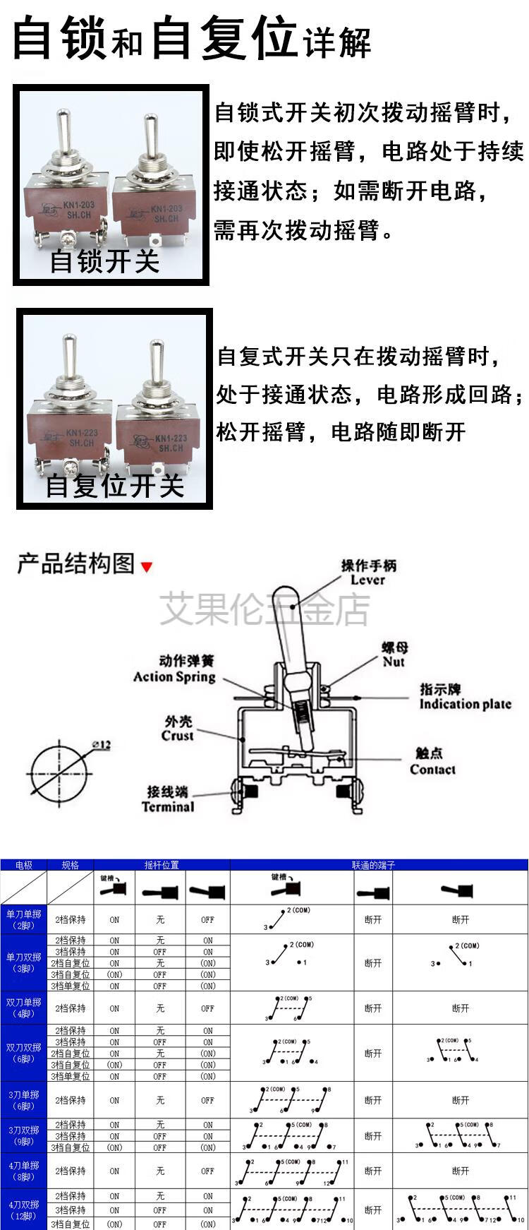 Xingyu KN1 button switch 2-speed rocker switch twist switch toggle switch 3-speed lever twist KN1-101/2 feet 2-speed ON-OFF screw foot