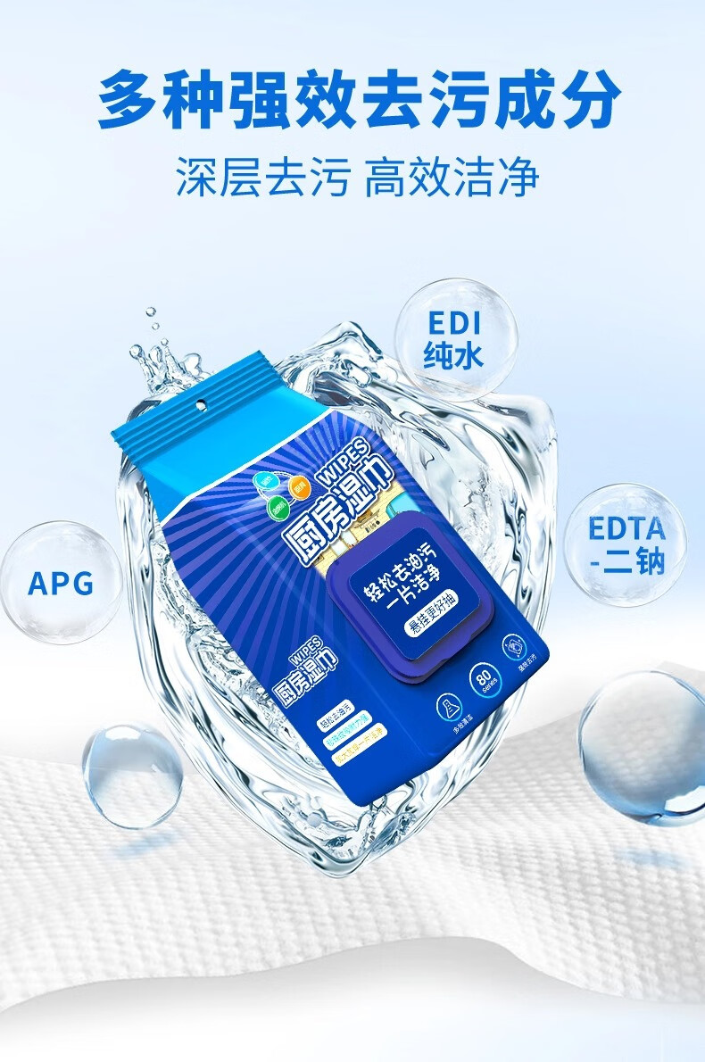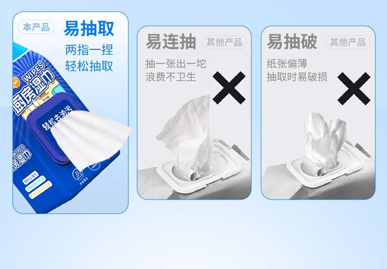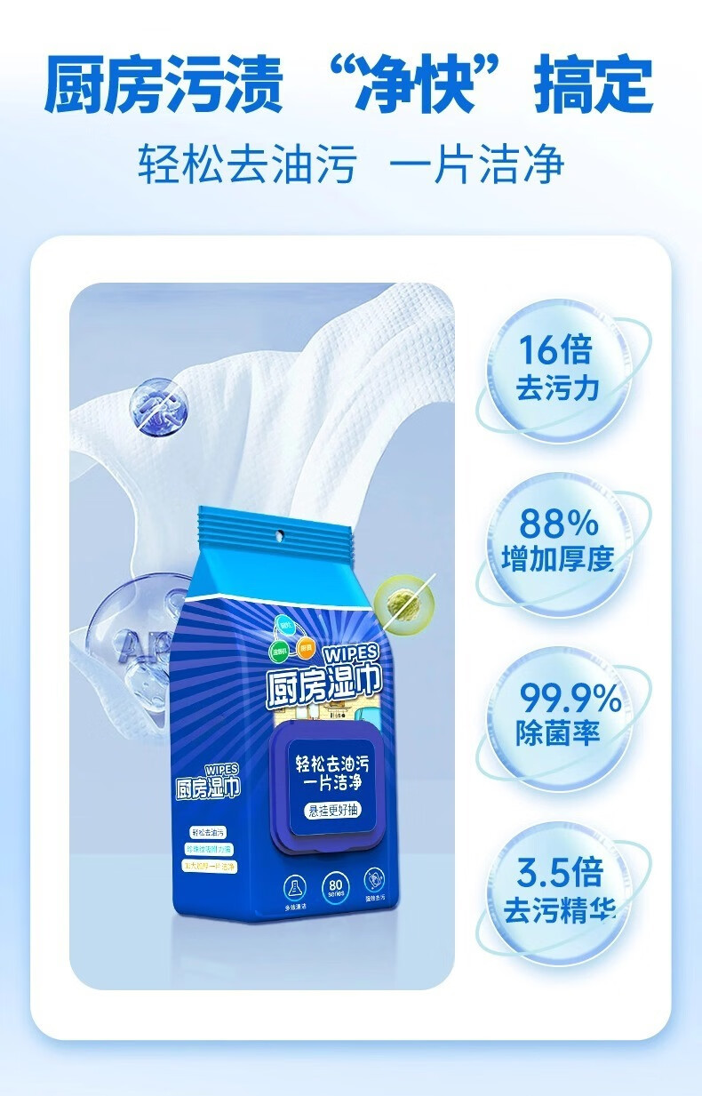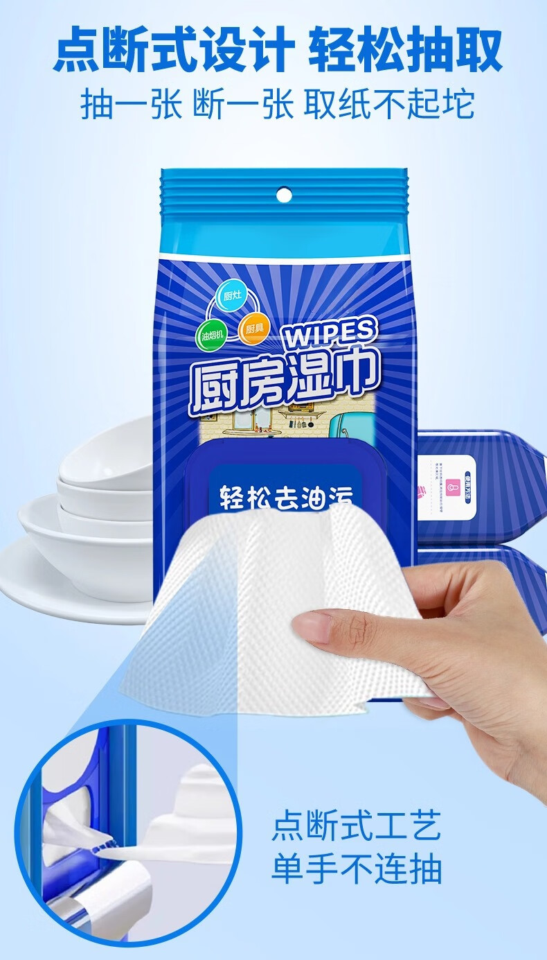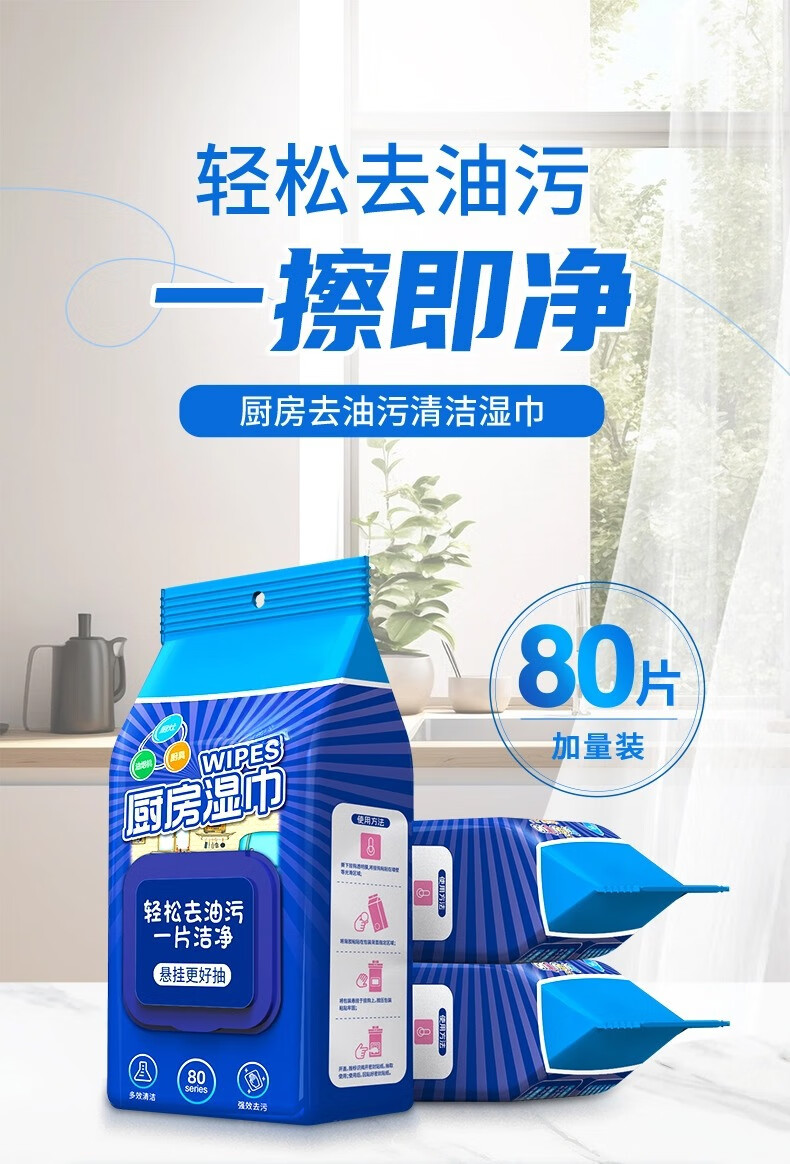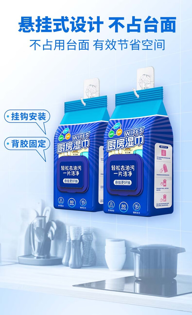 Hanging kitchen wet wipes for decontamination and degreasing, household range hood cleaning, special enlarged and thickened kitchen wet wipes, 1 layer, 80 cigarettes*1 pack, 5 packs