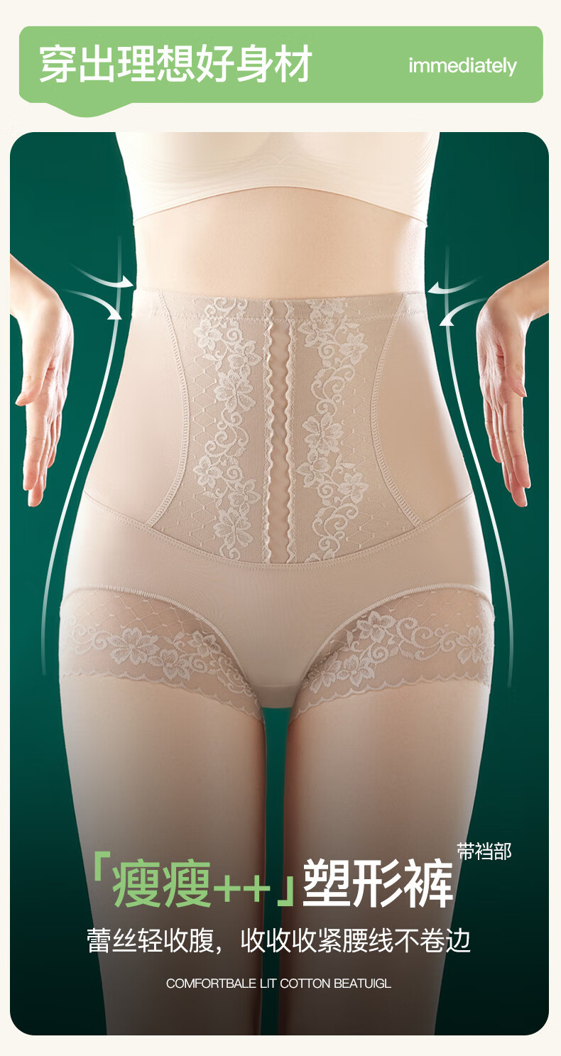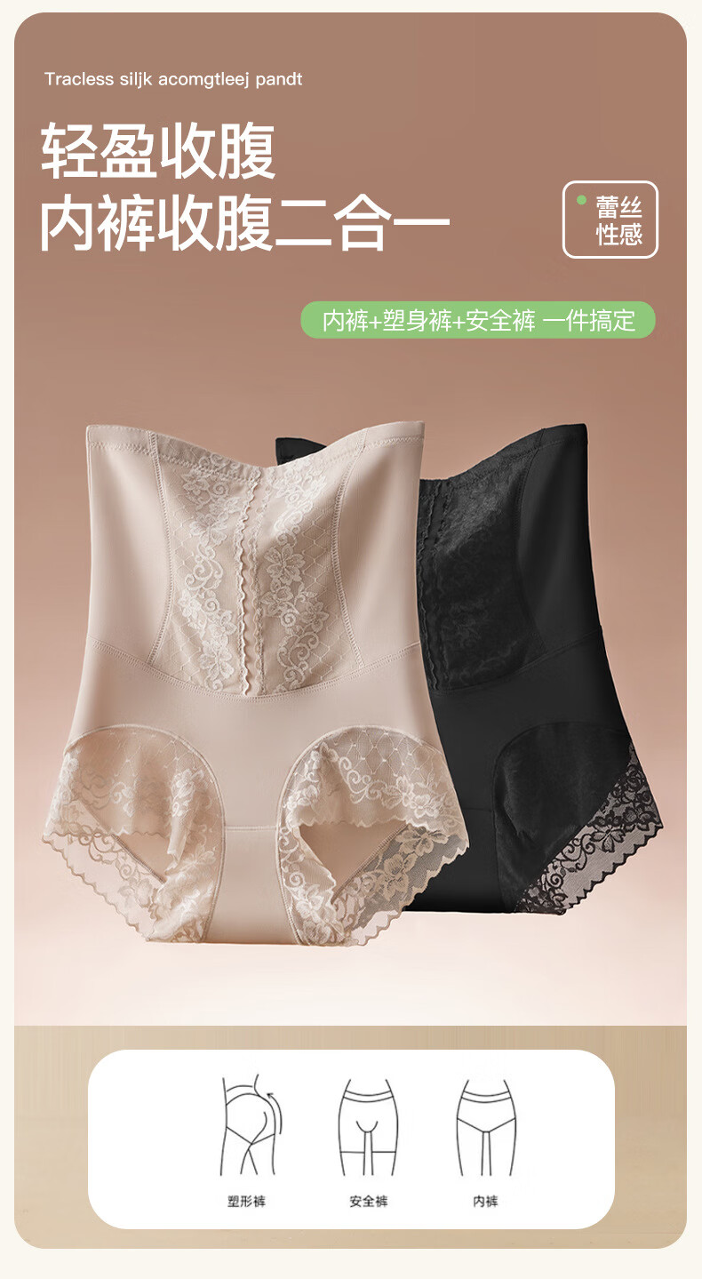 Guangdong Puning Tummy Control Panties Women's Strong Shaping Waist Body Pants Ice Silk Seamless High Waist Tummy Control Butt Lifting Pants 3 Black + Champagne L Recommended 100-120 catties