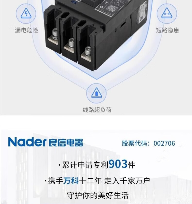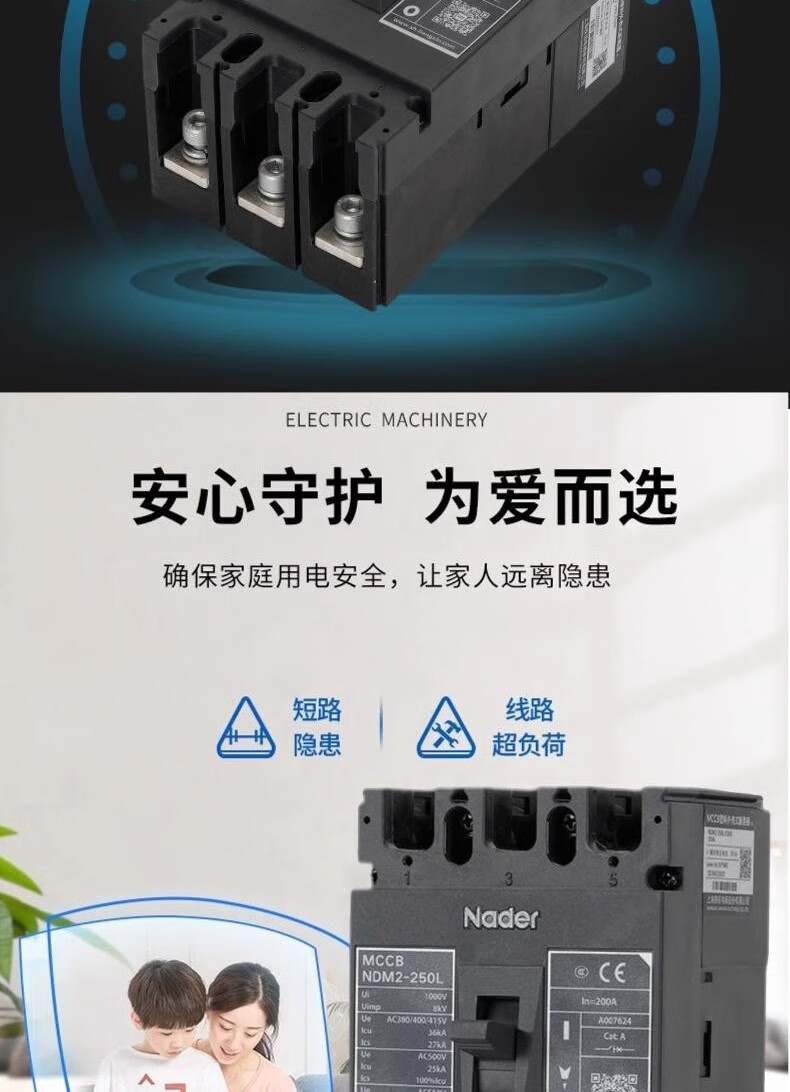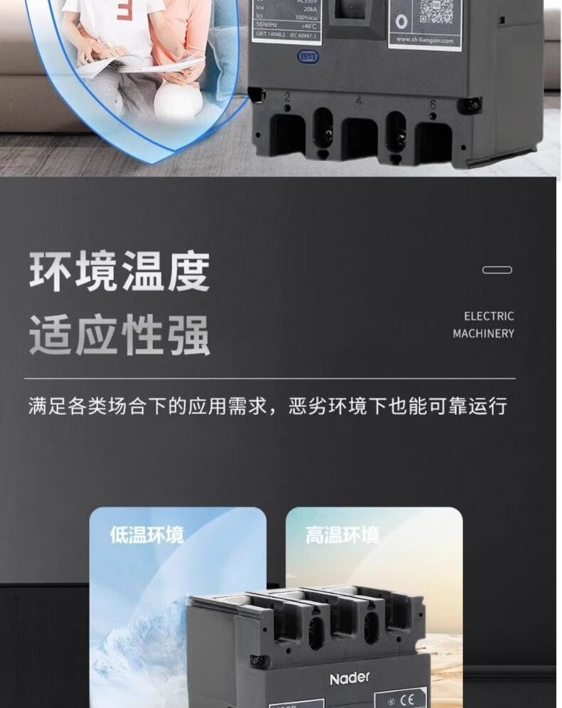Nader Shanghai Liangxin molded case circuit breaker-125 3p125a L-type air switch three-pole 630A 4p 500A