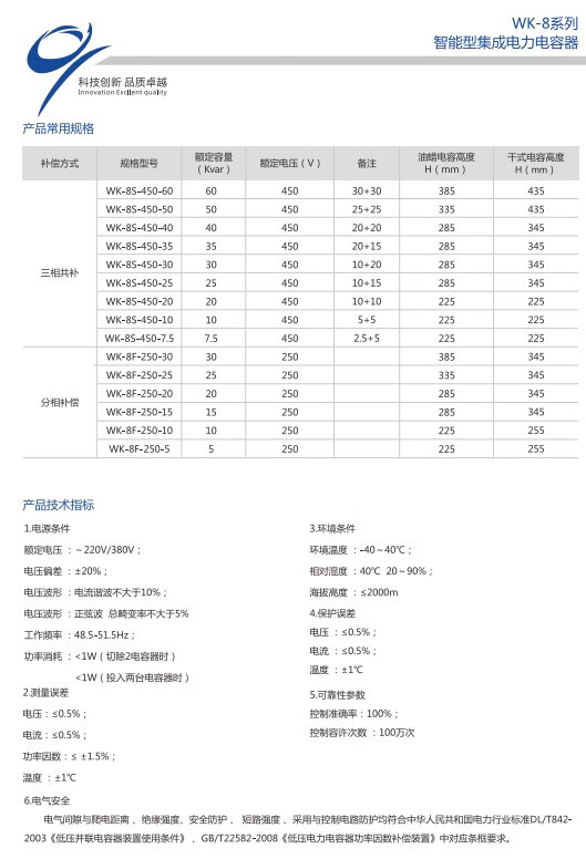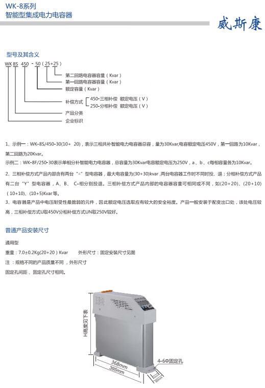Shanghai Viscon WK-8S/450 low-voltage intelligent integrated power capacitor compensation device three-phase common compensation type WK-8F/250-30