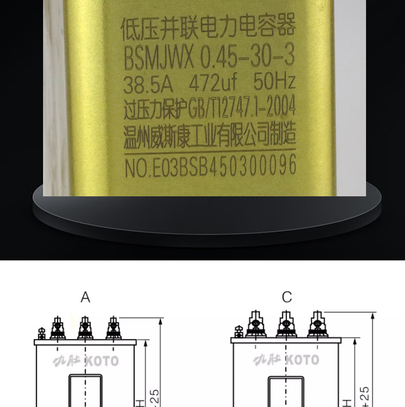 Wenzhou Weisikang Jiudu BSMJWX0.45-30-3 self-healing low-voltage parallel power capacitor BSMJWX0.45-60-3