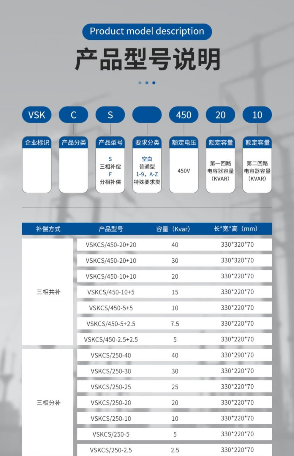 Viscon integrated intelligent power capacitor self-healing low-voltage reactive power compensation device power capacitor compensation cabinet VSKCF/250-40