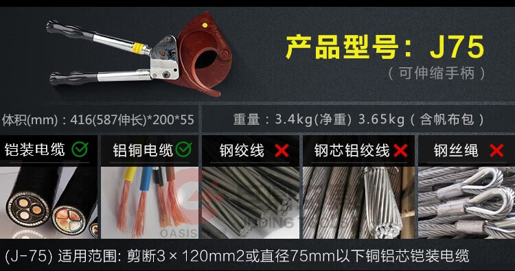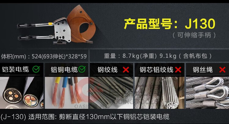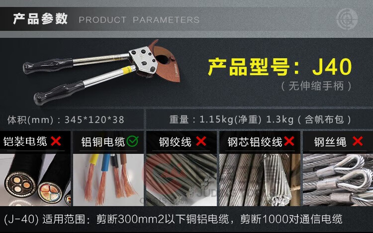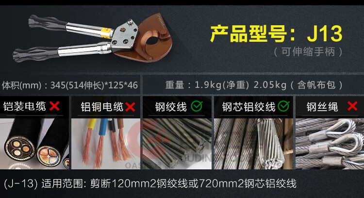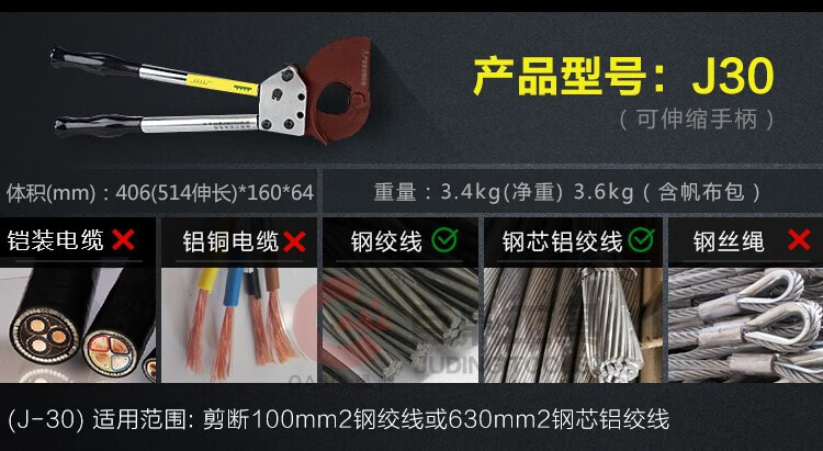 Cable cutter ratchet manual cable cutter J1330405275100130 gear cutter reinforced blade J160 cable cutter