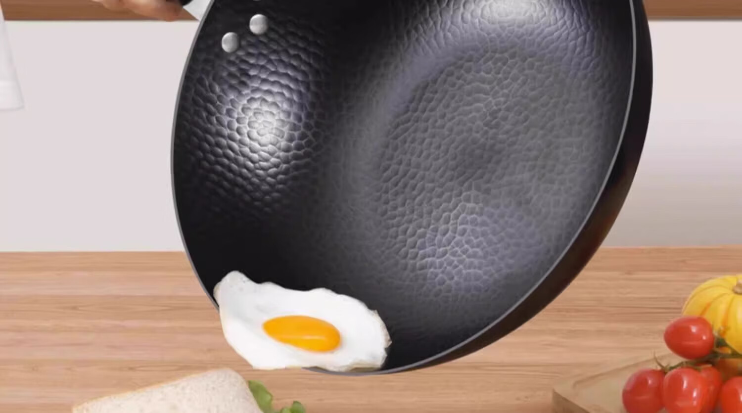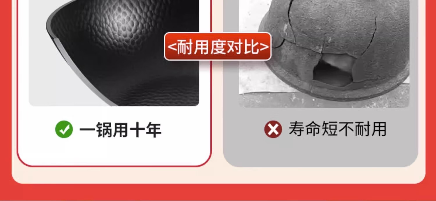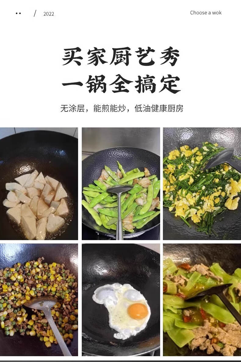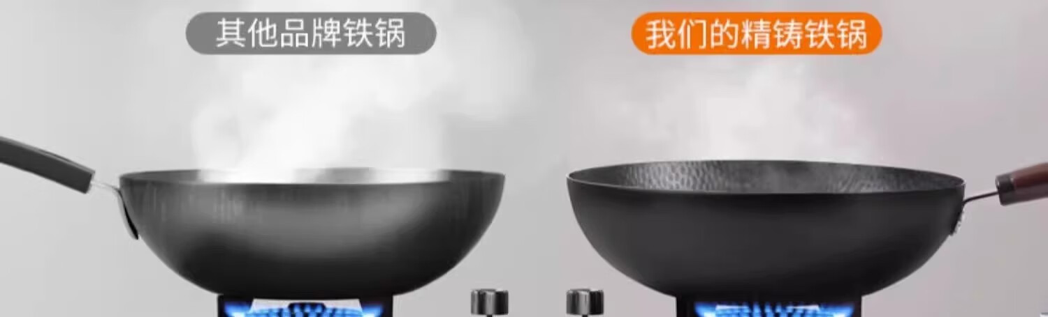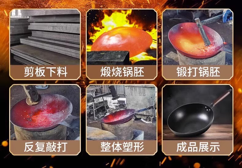 Iron pot wok old-fashioned Zhangqiu wok has been opened uncoated household non-stick pot induction cooker gas stove special round bottom double-sided hammer pattern with lid 32cm