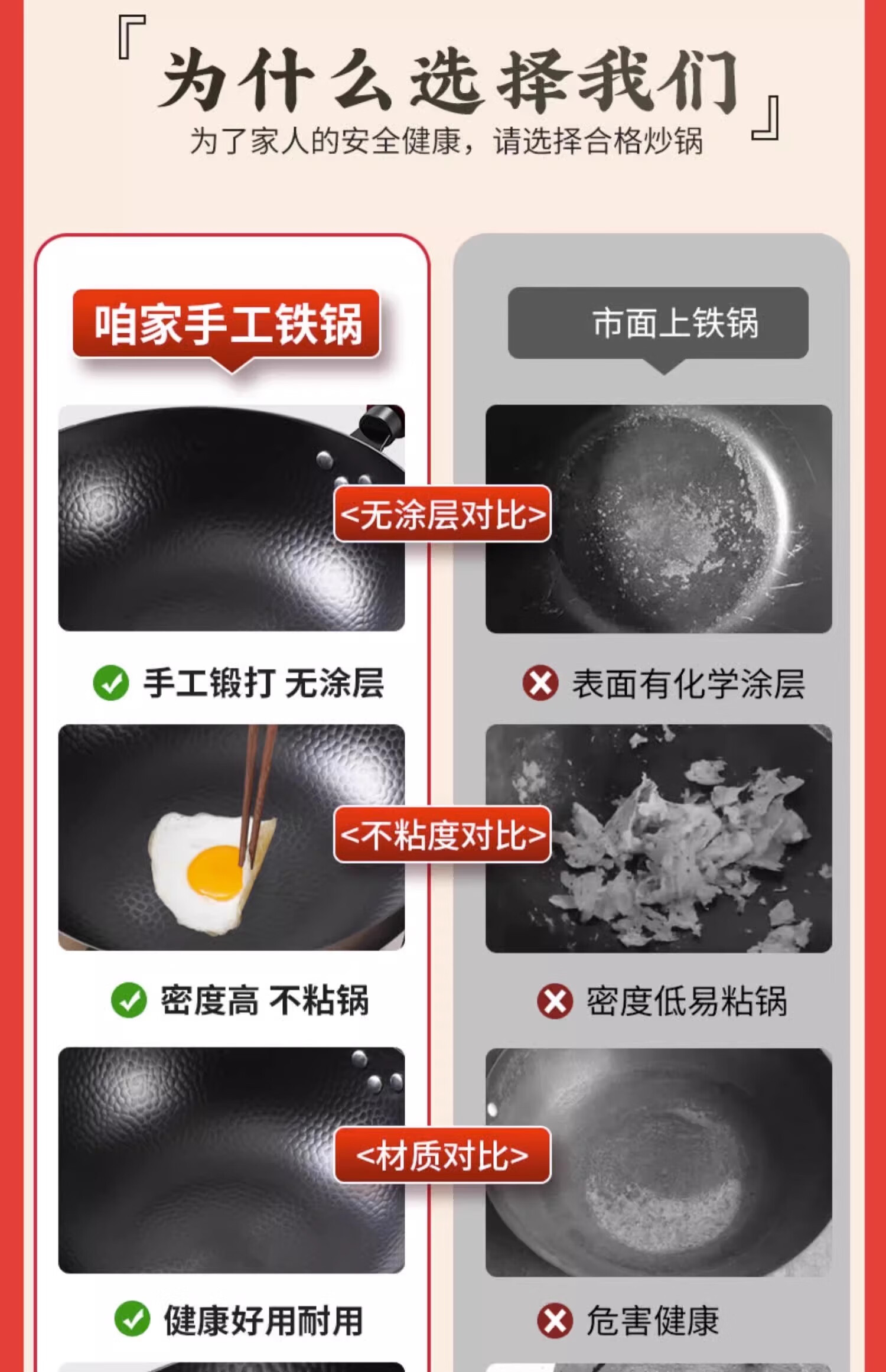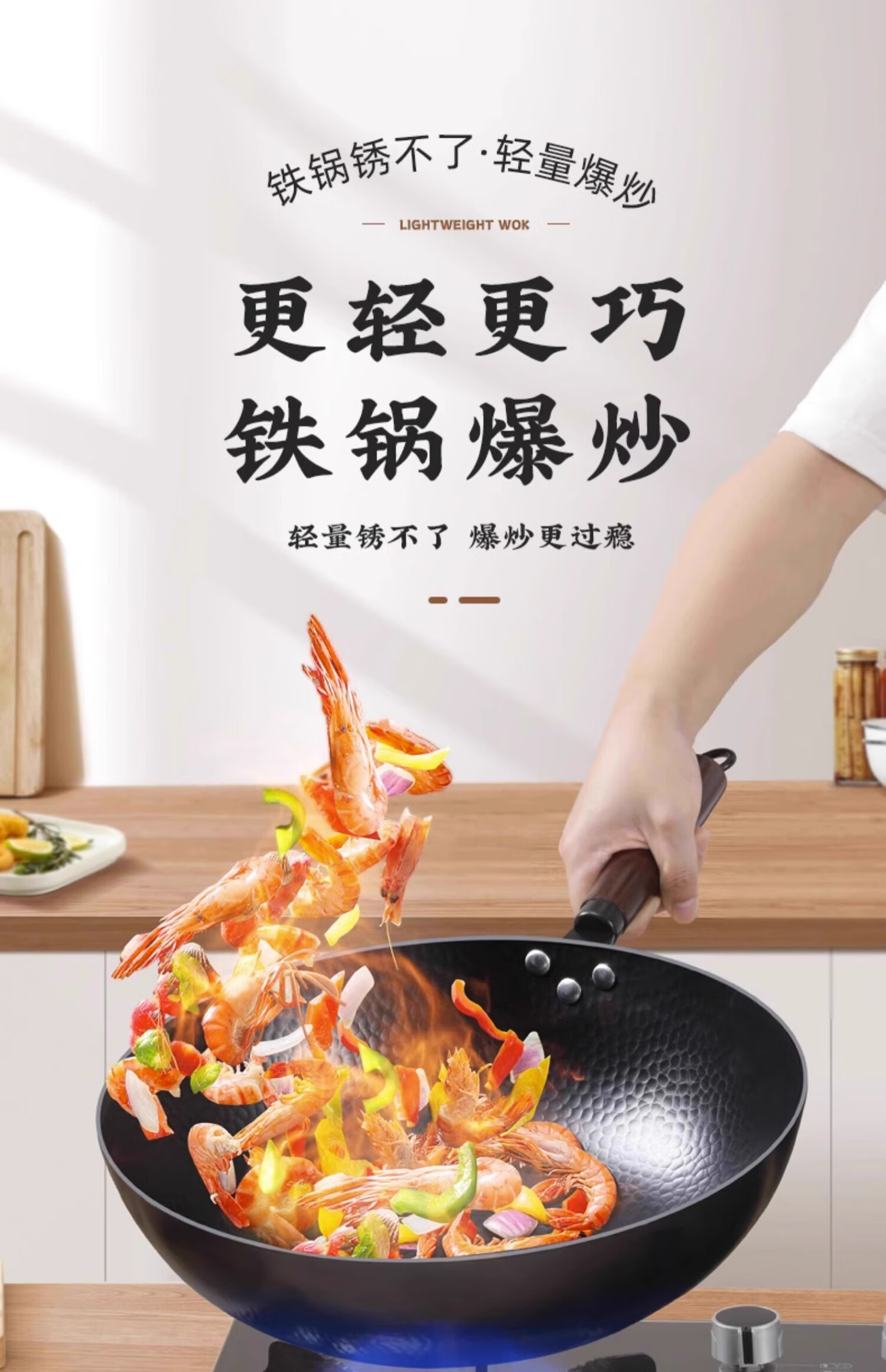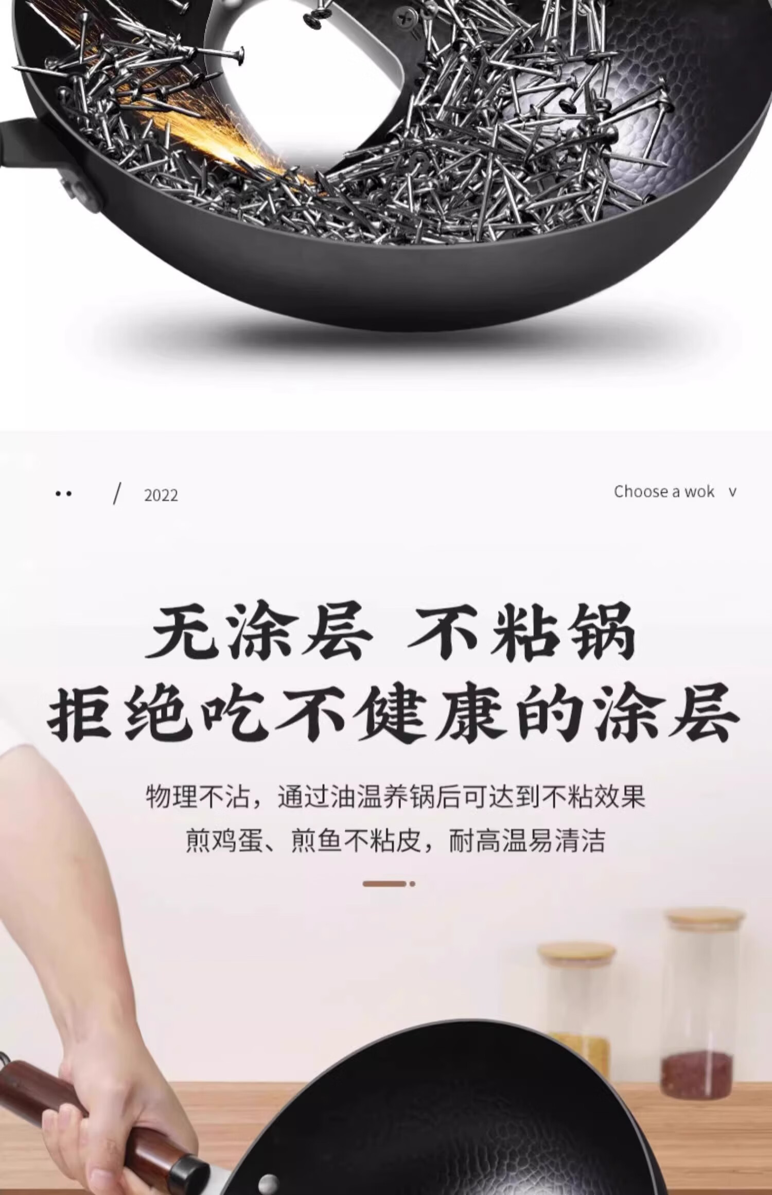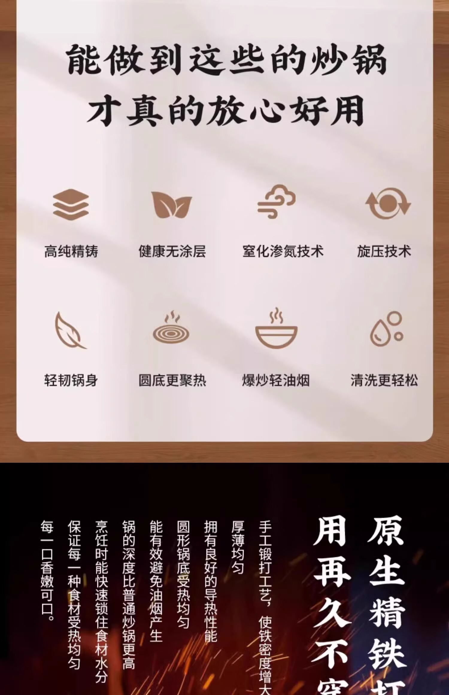 Iron pot wok old-fashioned Zhangqiu wok has been opened uncoated household non-stick pot induction cooker gas stove special round bottom double-sided hammer pattern with lid 32cm