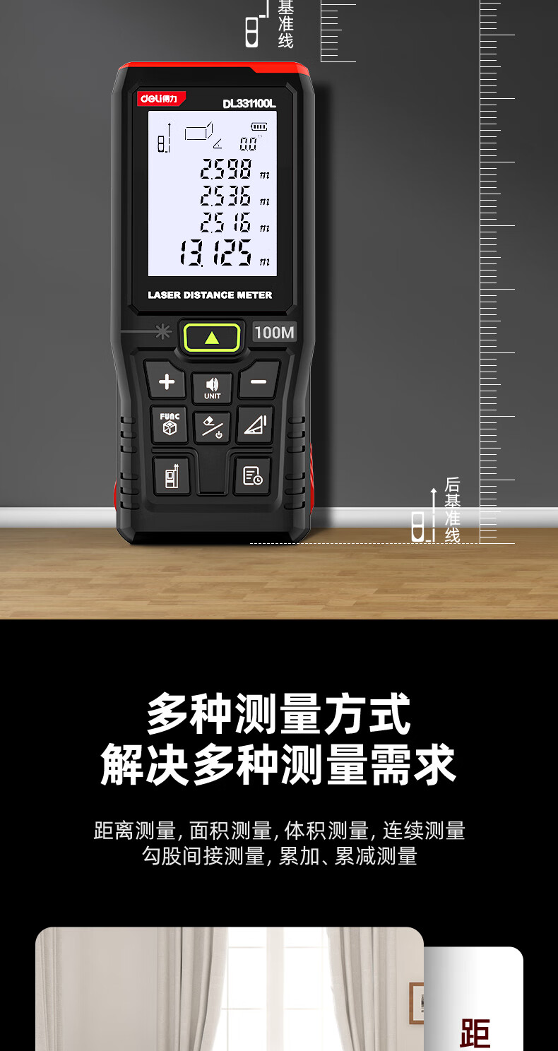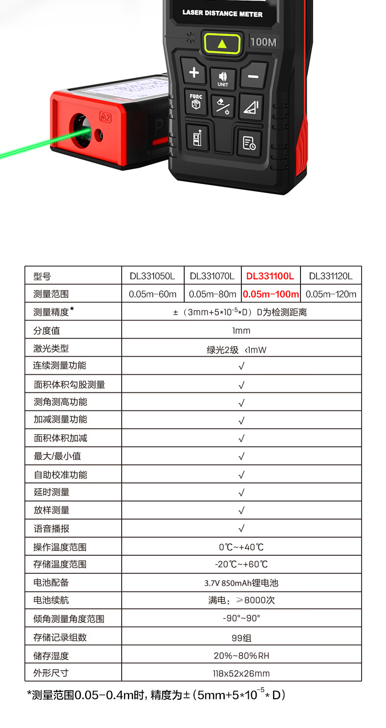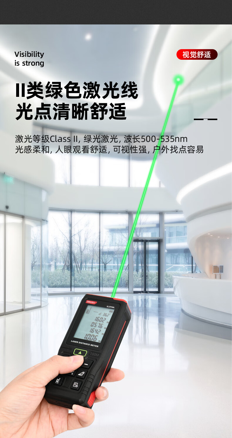 Deli green light outdoor laser rangefinder high precision infrared outdoor electronic ruler strong light handheld measuring ruler DL331005L green light rangefinder 50m dry battery