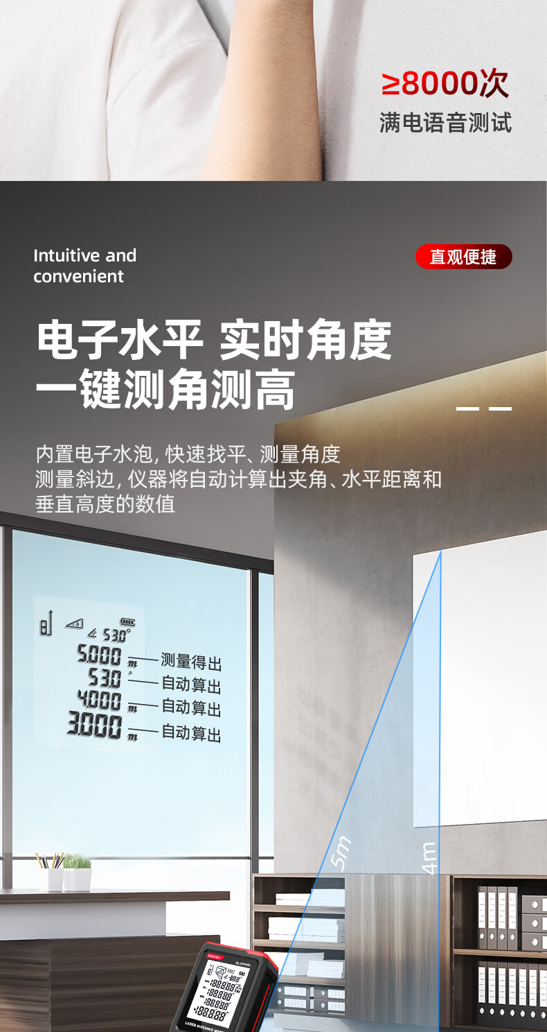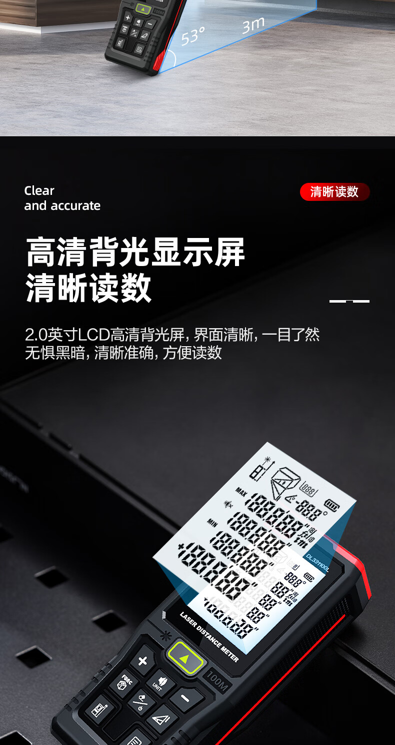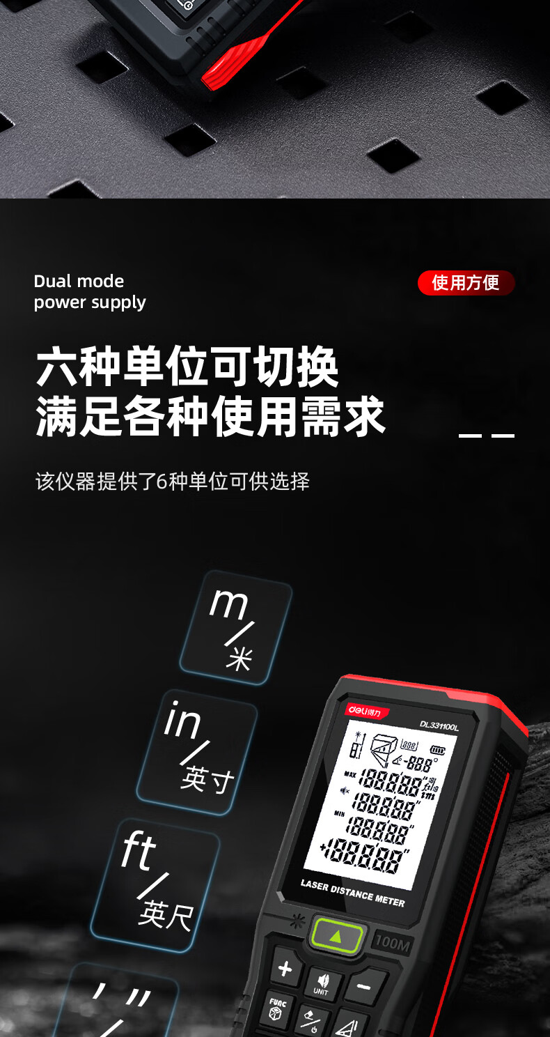 Deli green light outdoor laser rangefinder high precision infrared outdoor electronic ruler strong light handheld measuring ruler DL331005L green light rangefinder 50m dry battery