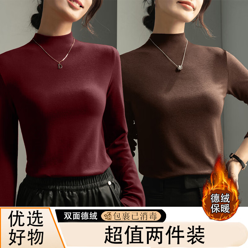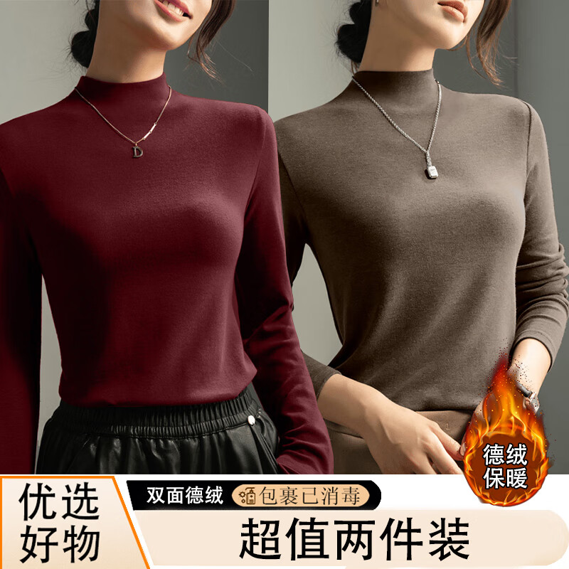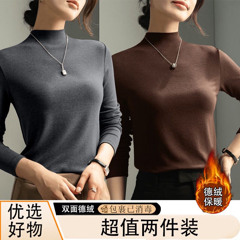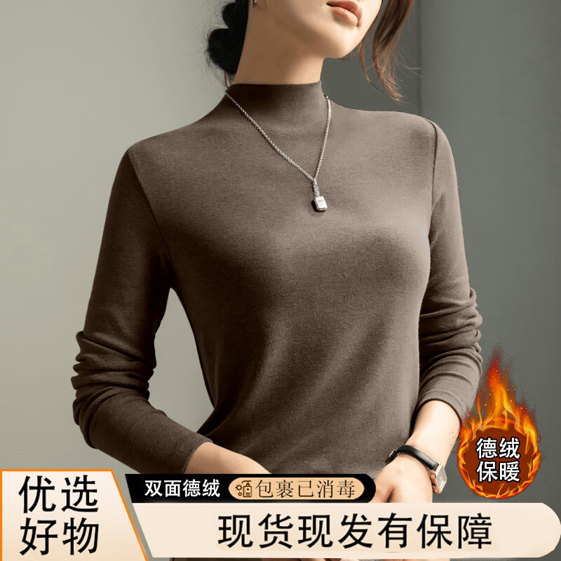 Dark gray half turtleneck long-sleeved top women's base layer 2025 autumn and winter slim fit inner high-end modal T-shirt 917-Mocha color L recommended 90-110 catties