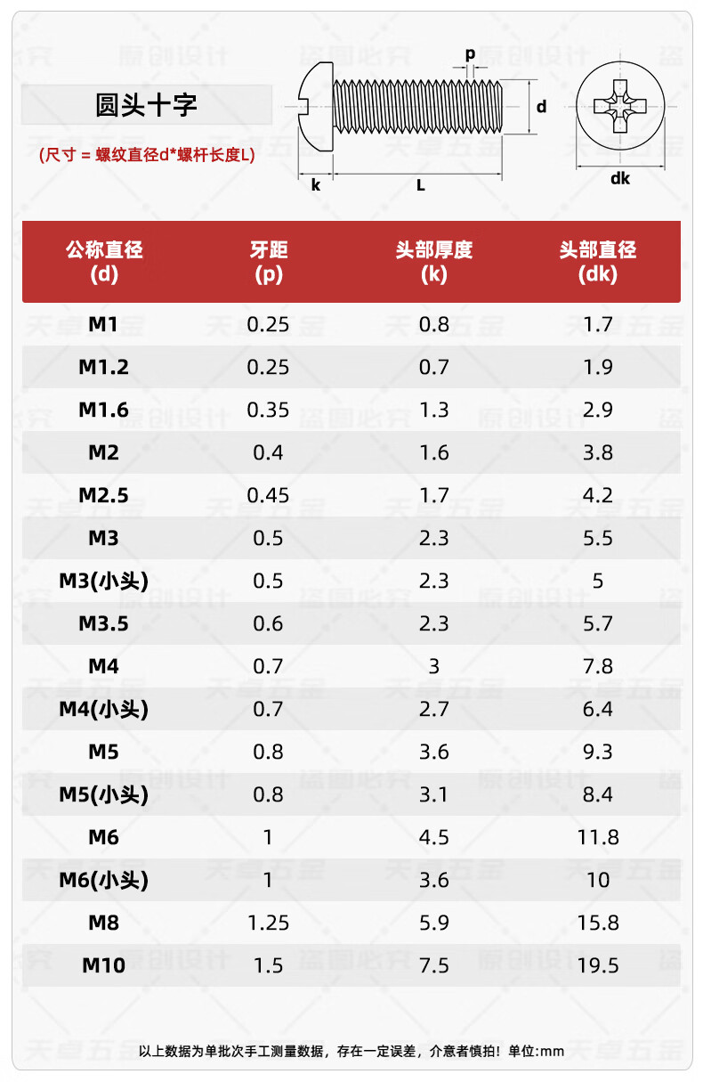 Tianzhuo Hardware 304 stainless steel cross pan head screws extended round head screws bolts M1M1.6M2M3M4M5M6M8M10mm M4*10-20 pieces