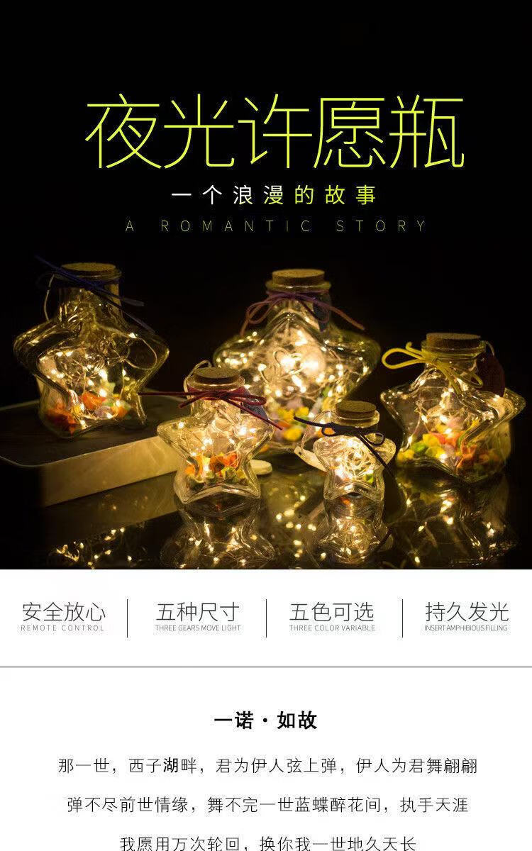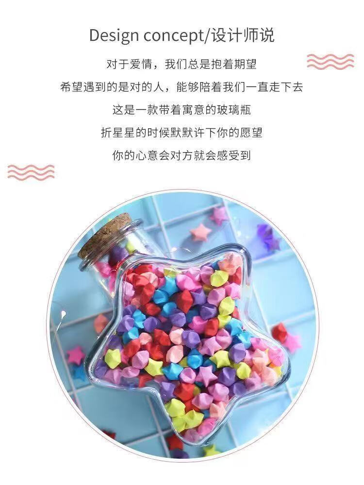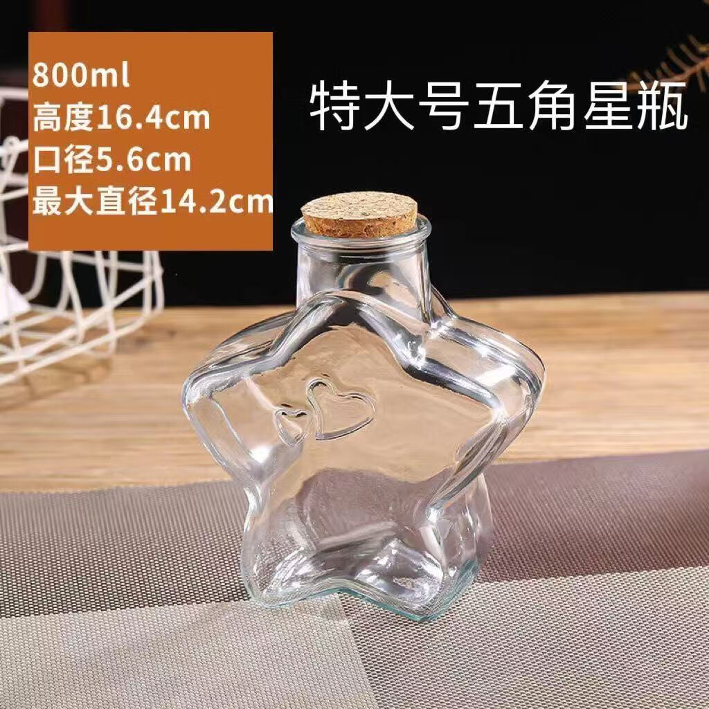 Star note bottle wishing bottle transparent glass jar special five-pointed star bottle 800 ml can hold 520 stars empty bottle + cork
