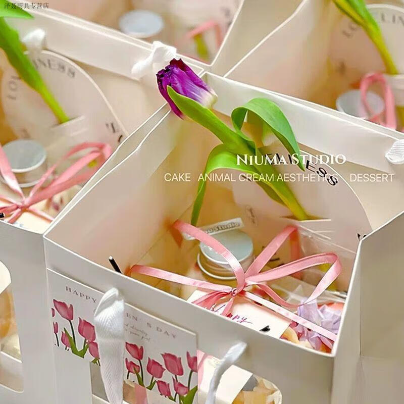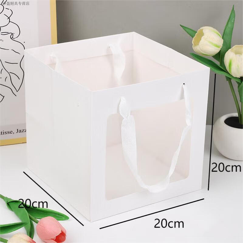 Chaosihui Teacher's Day four-square grid platter picnic cake shop baking square gift bag portable cake tote bag hand box gift bag + transparent box + greeting card + white ribbon (set of 10