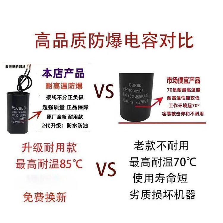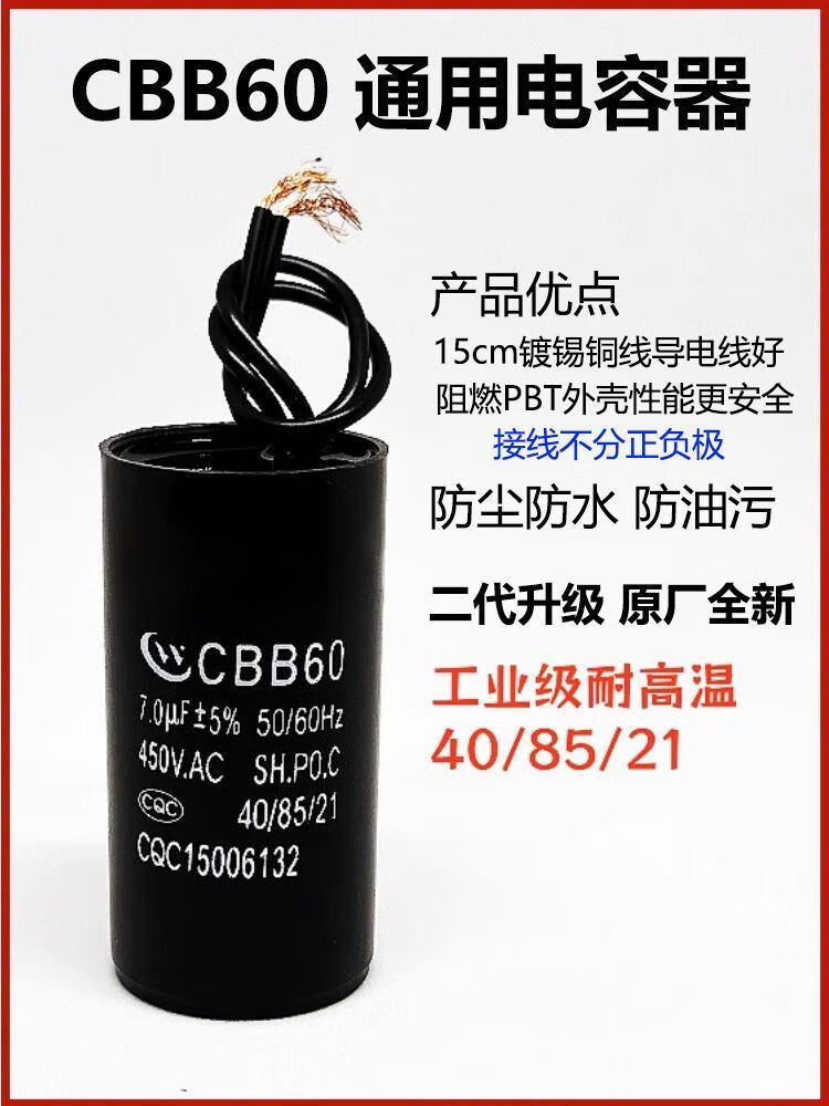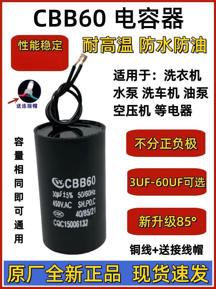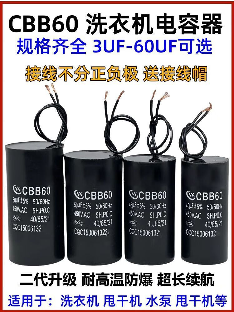 Cbb60 capacitor CBB washing machine water pump start/8/1/12/15/2UF45V universal spin dryer (10UF new 450V *2 connection caps included
