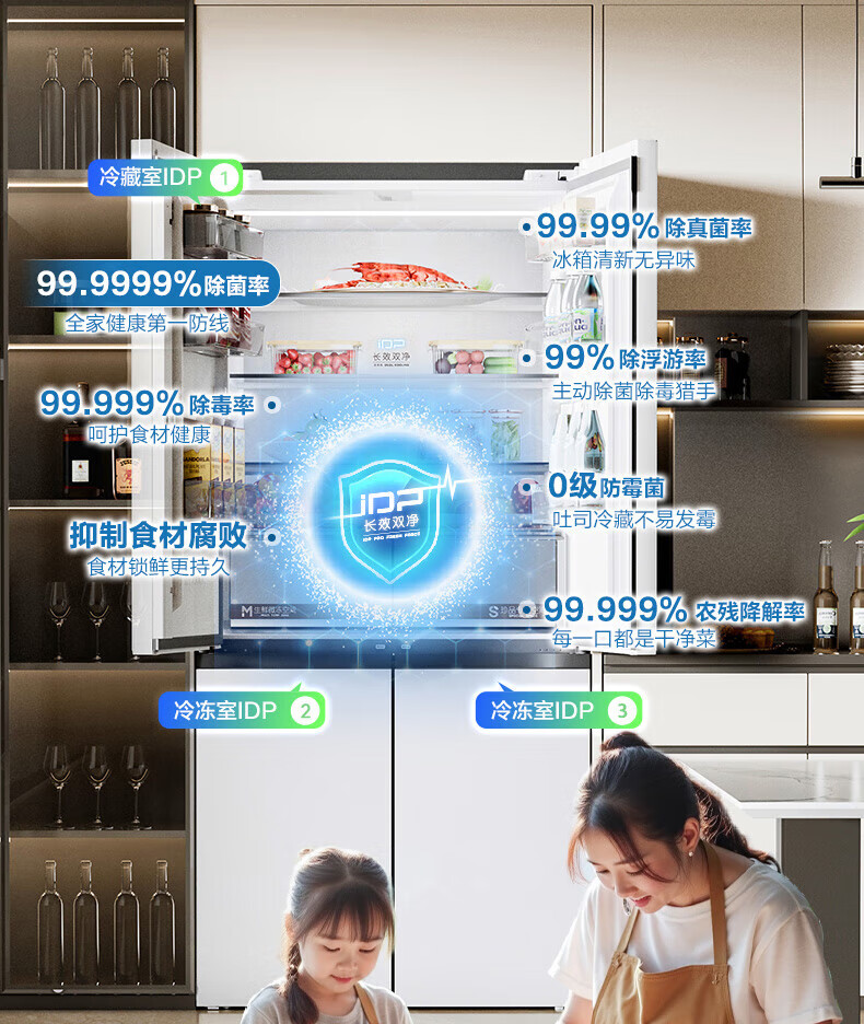 Rongsheng Tangtang 505L Cross Door Refrigerator Dual System Dual Cycle Active Sterilization Ultra-Thin Zero Embedded Household Level One Energy Efficiency BCD-505P60CZMAD White National Subsidy World Cup 60cm True Zero Embedded Bottom Cooling Active Sterilization 2.0