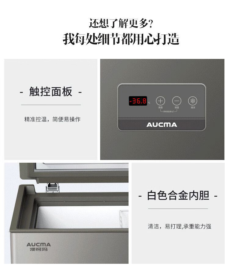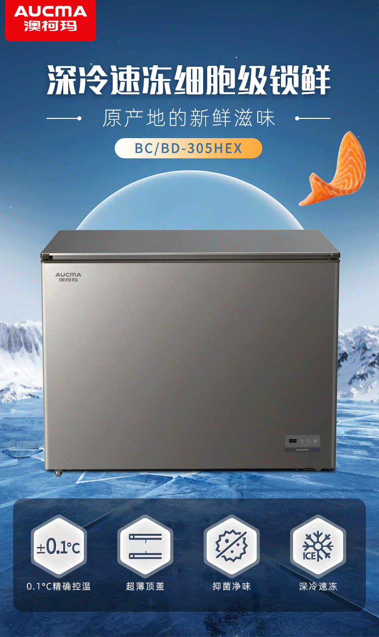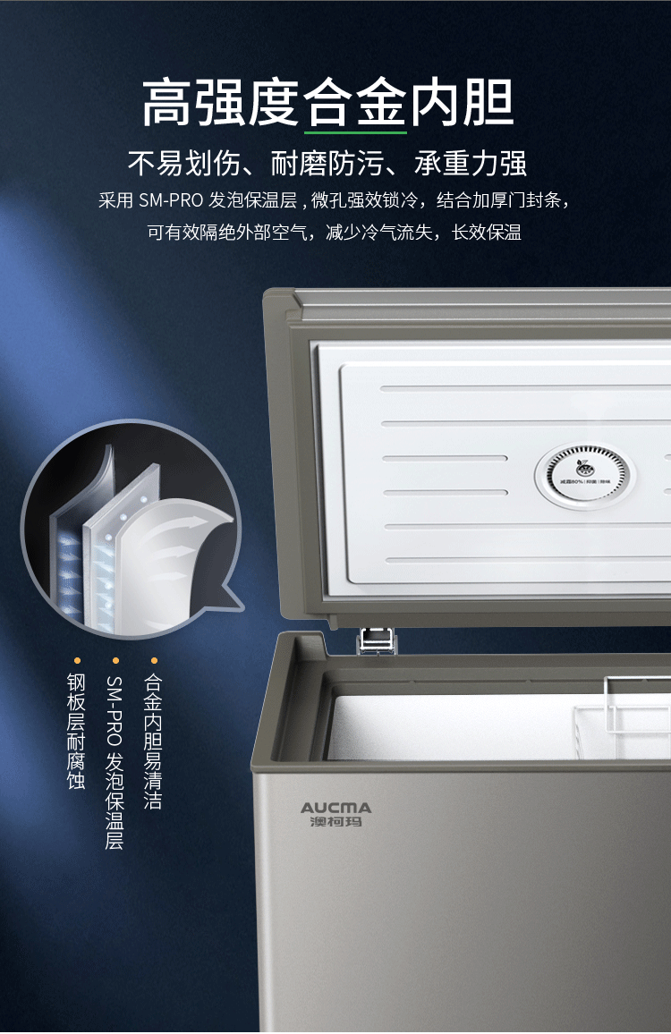 AUCMA small freezer household low-temperature first-level energy-saving efficiency 80% frost reduction fully frozen refrigerated fresh-keeping horizontal top-door single-temperature freezer 200 liters or so 145L/149/203/310 liters 310L, 310NF | frost reduction 80% | level 1 | alloy liner