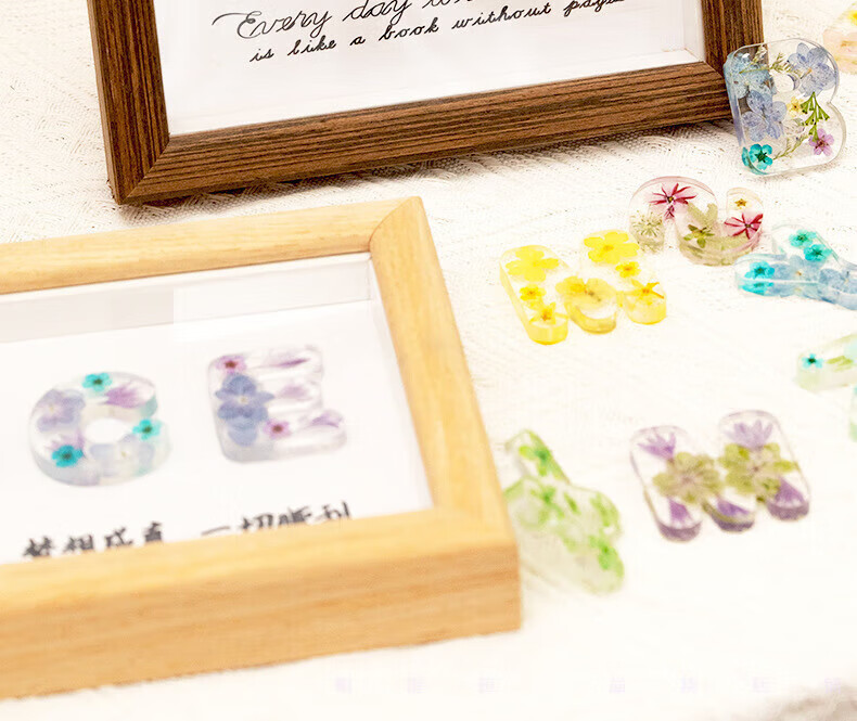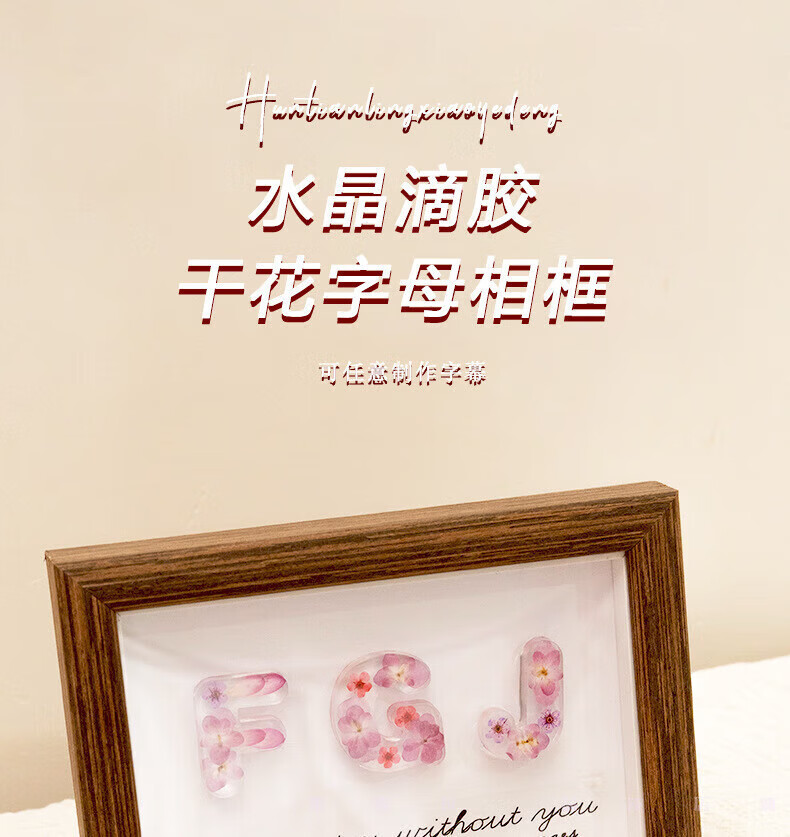 USERJOYdiy handmade glue dried flower letter photo frame ornaments office bedside decoration Chinese Valentine's Day birthday gift 6-inch walnut photo frame + full set of materials + purple flowers plus gift bag