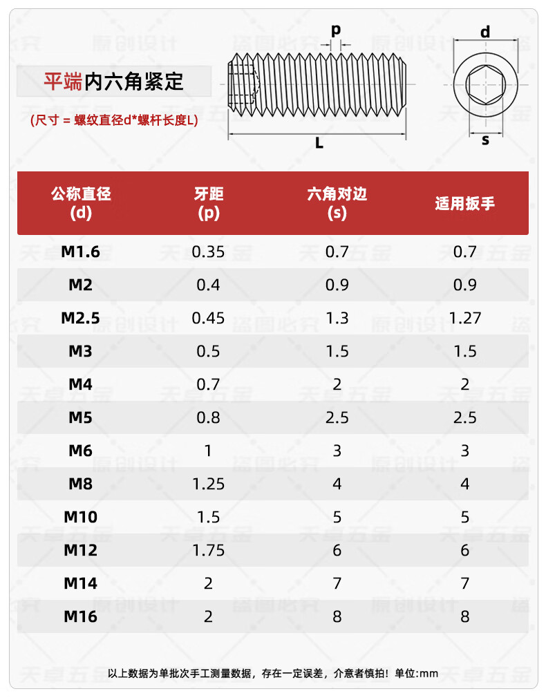 Tianzhuo Hardware M3-M16 flat end set screw 12.9 grade inner hexagon headless screw machine meter stop screw M4M5M6M8 12.9 grade-M8*14-50 pieces