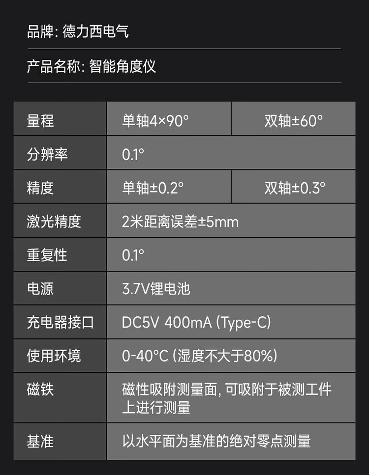 Delixi Electric digital display inclinometer high-precision level ruler angle measuring instrument multi-functional angle ruler strong magnetic angle meter flagship dual laser/intelligent inclinometer double-sided digital display large screen/high-precision measurement