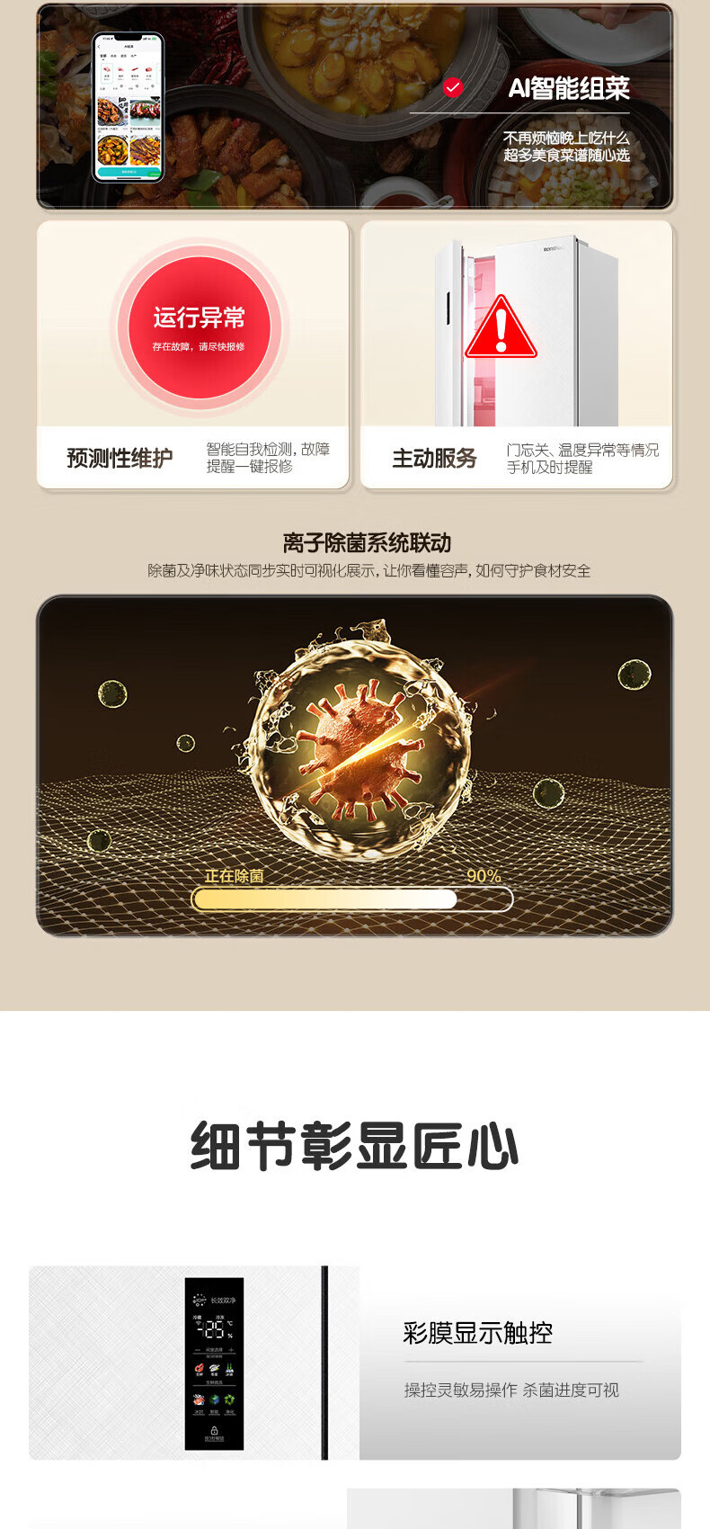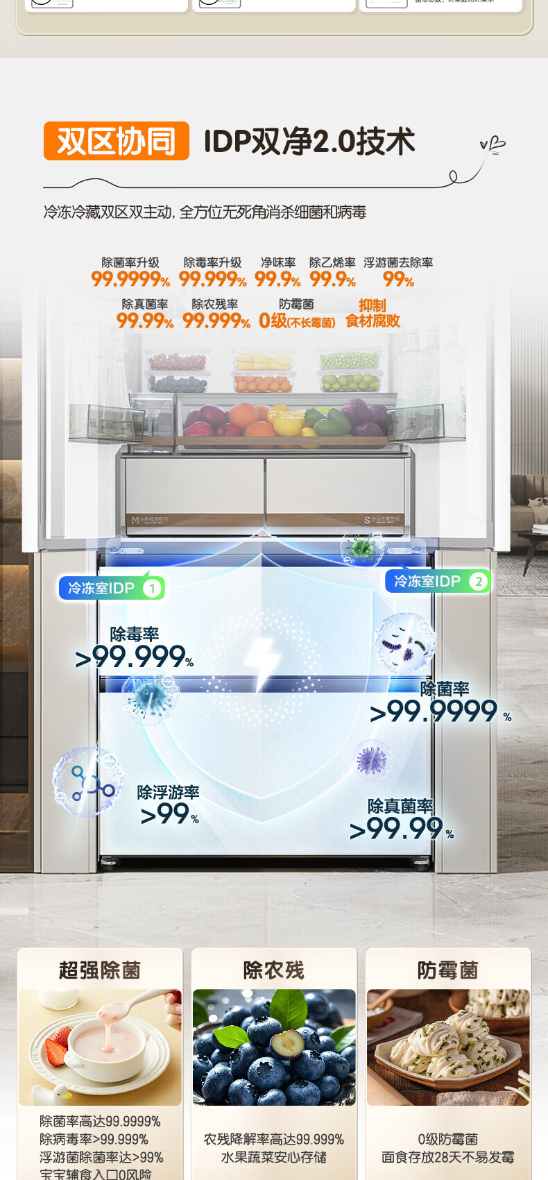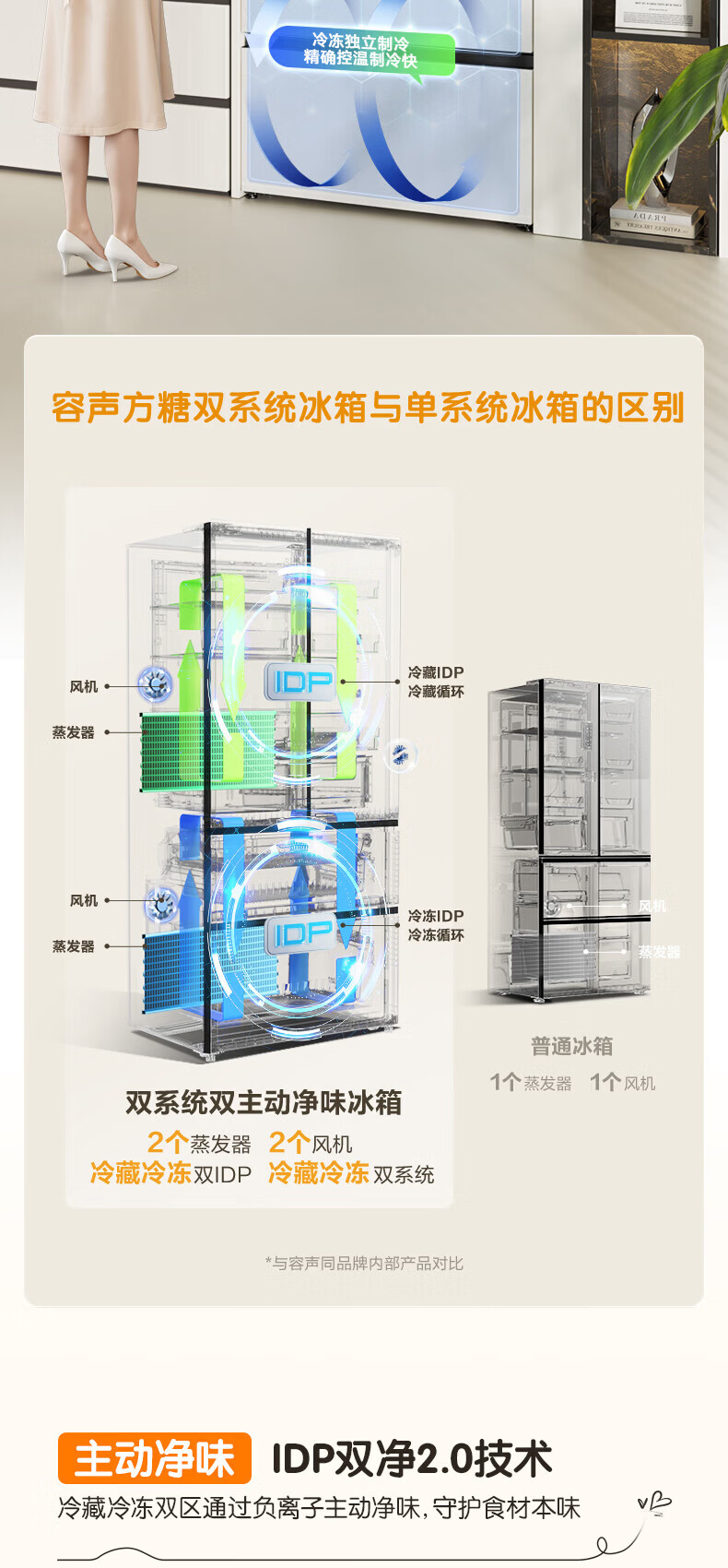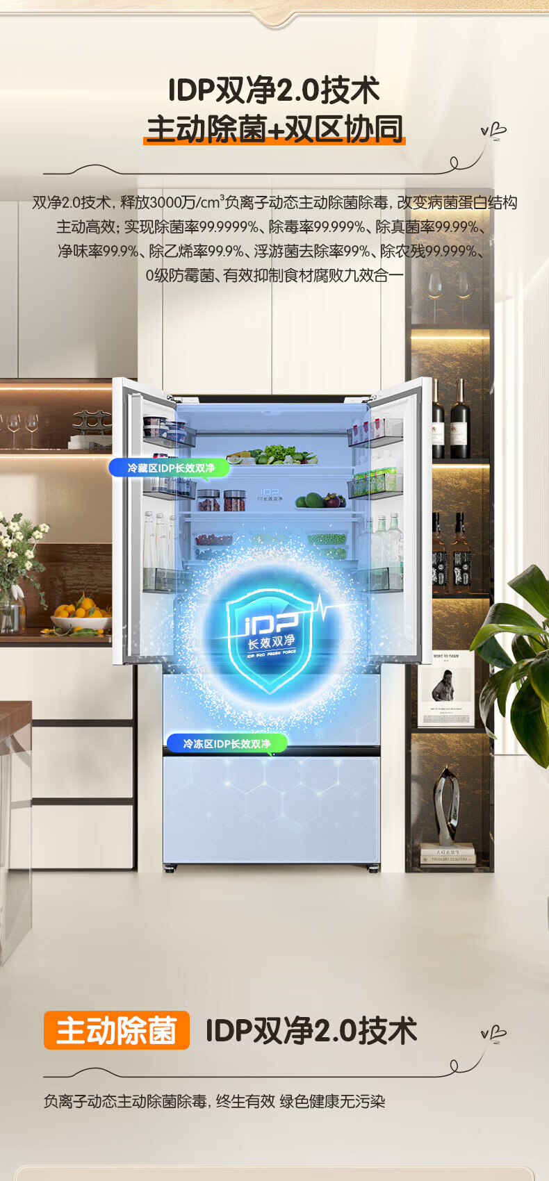 Rongsheng Cube 515 Double System French Multi-door Four-Door Refrigerator Ultra-Thin Zero Embedded First-Class Energy Efficiency Automatic Ice Making BCD-515P60FZNAD White National Subsidy World Cup 60cm True Zero Embedded | Bottom Cooling Ultra-Clean Automatic Ice Making