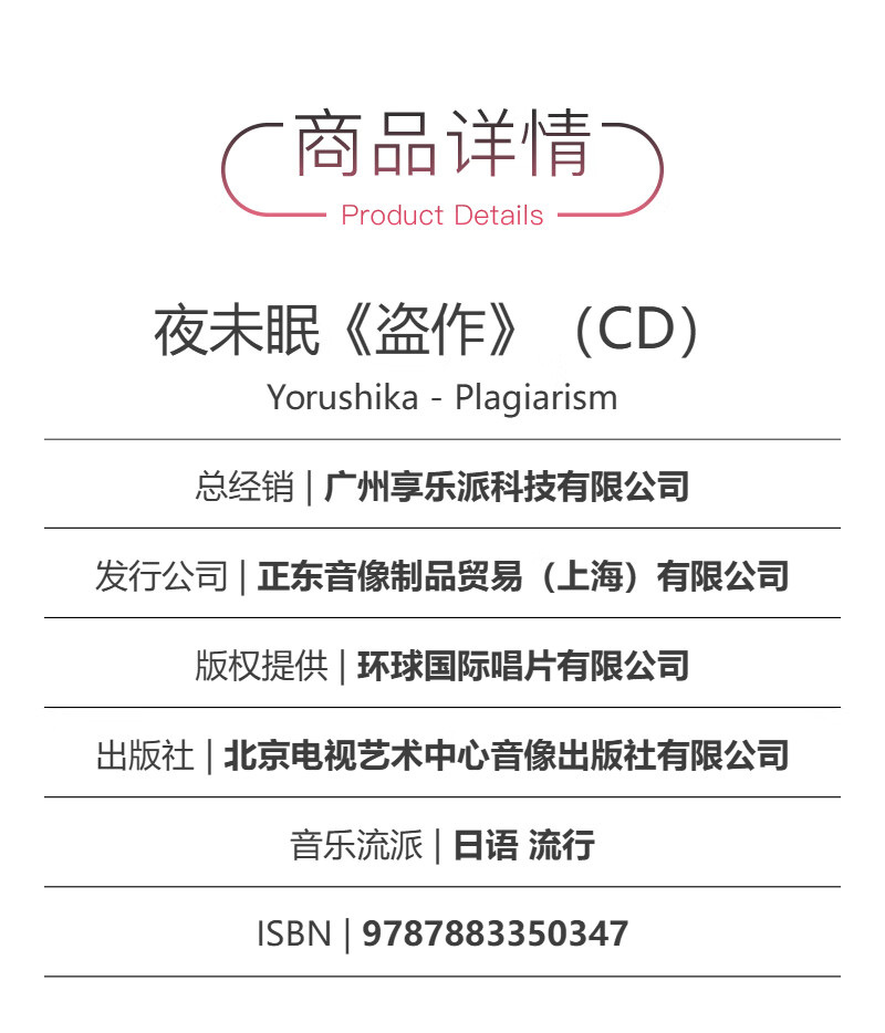 Official Genuine Sleepless Night Piracy Rock Band Yelu's 3rd Album CD Yorushika - Plagiarism