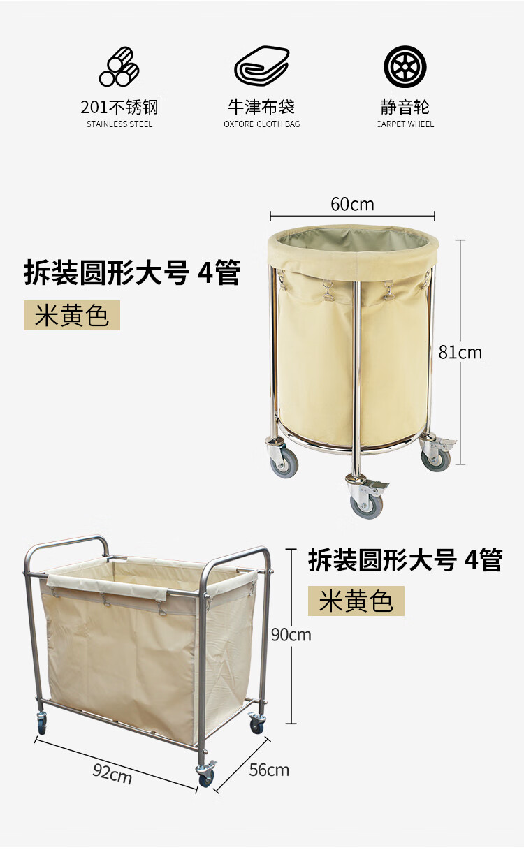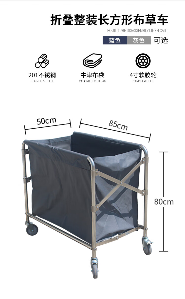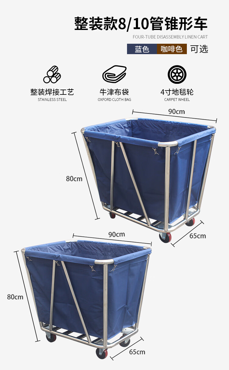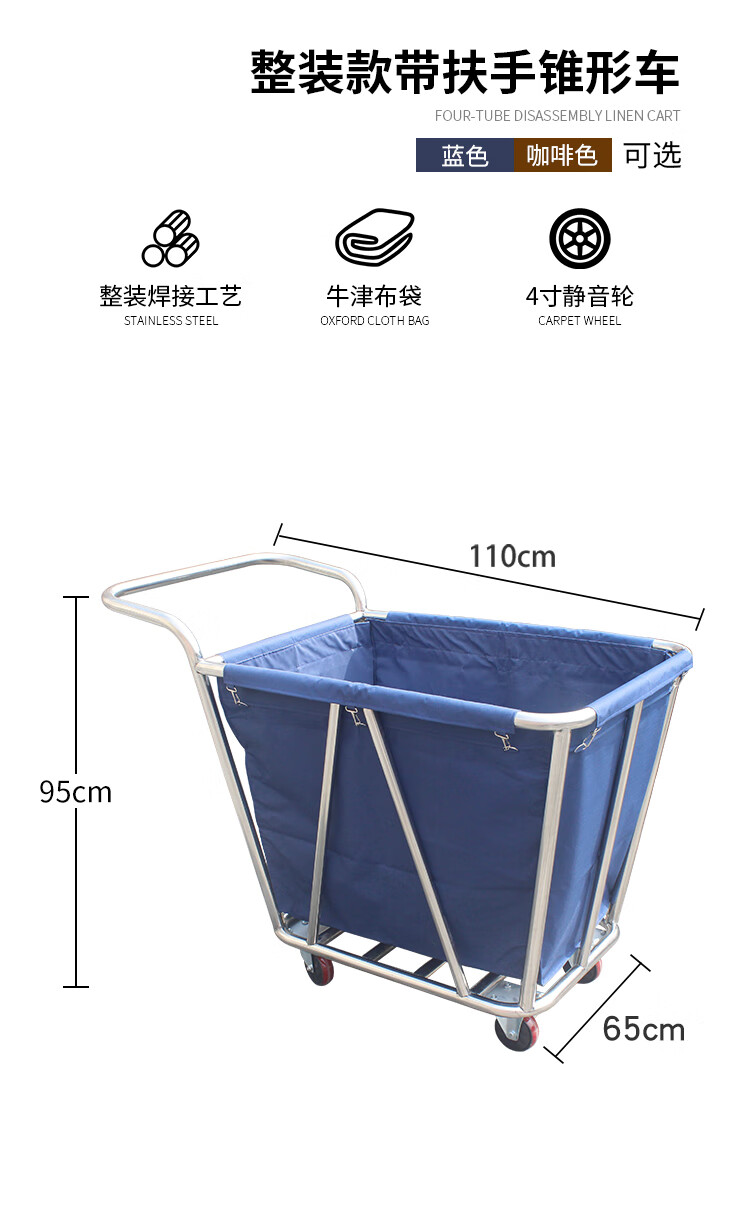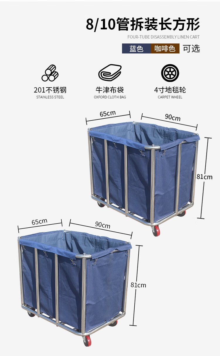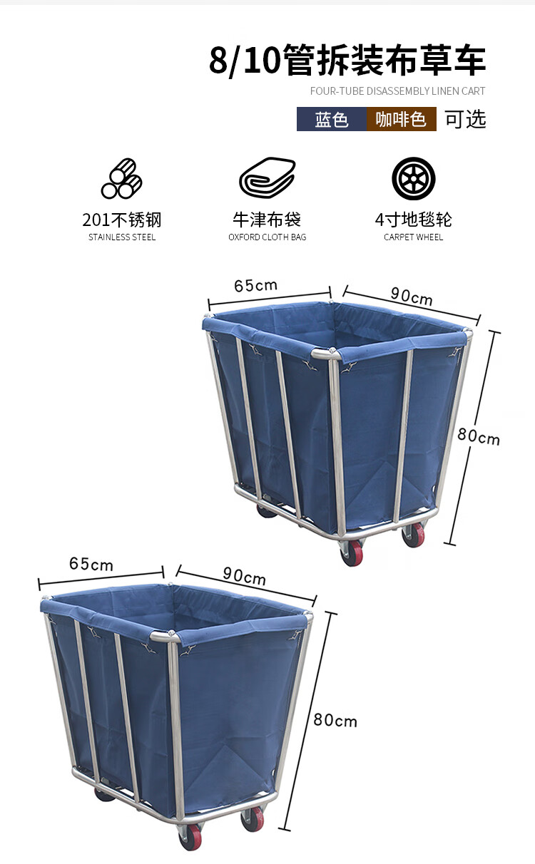 Hotel linen cart cart guest room stainless steel cleaning work cart linen bag removable room entrance cart nationwide (blue) except remote areas_disassembly and assembly 4 tubes