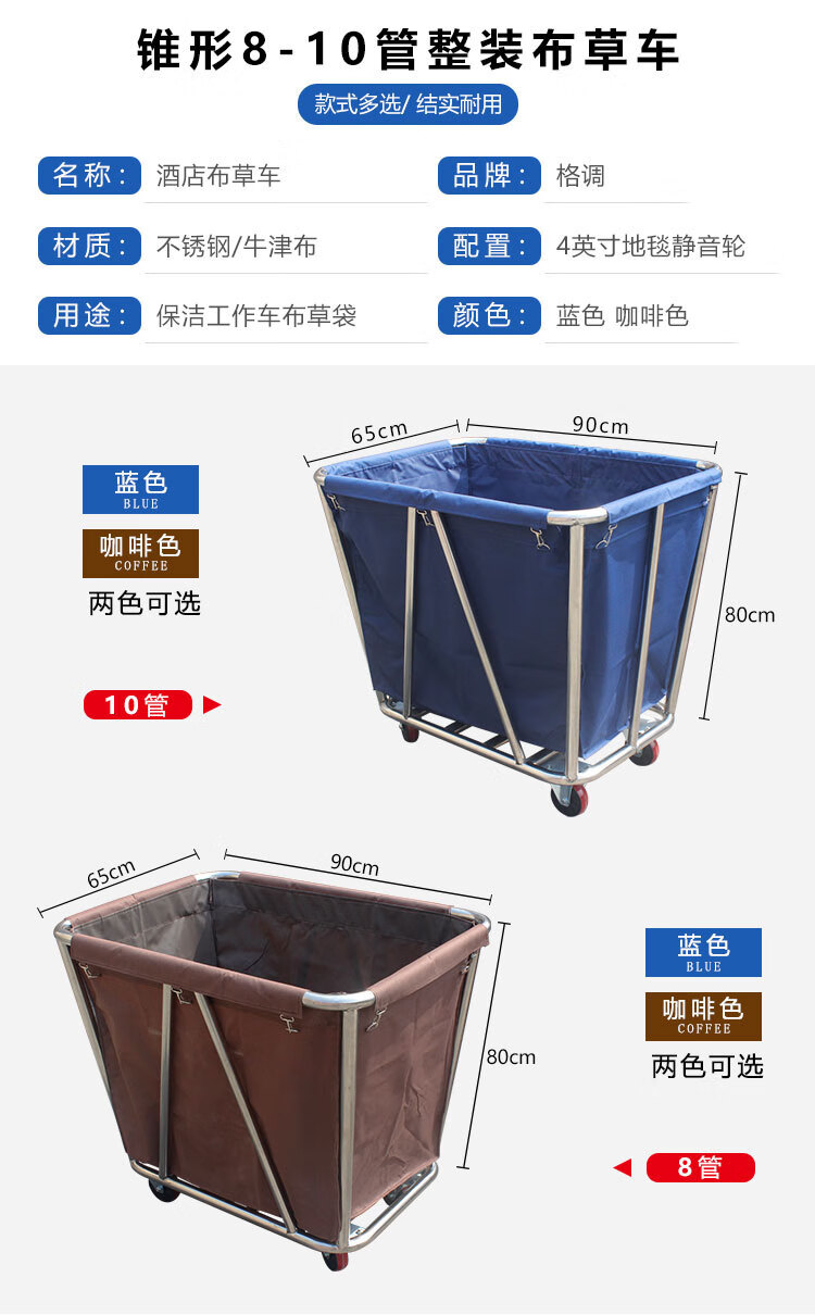 Conical linen cart hotel room service cart stainless steel cleaning cart laundry room storage cart blue_double-layer cloth bag