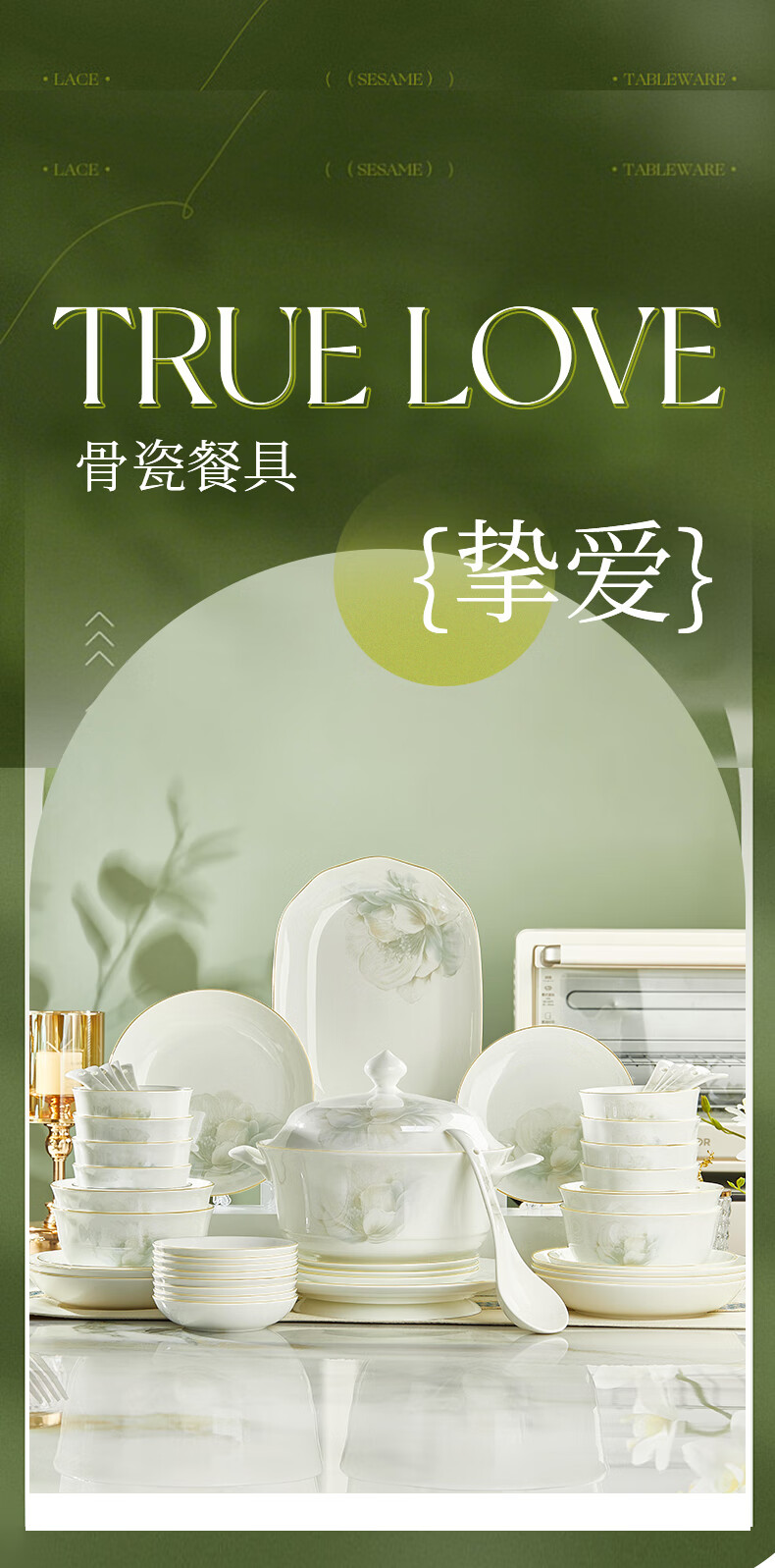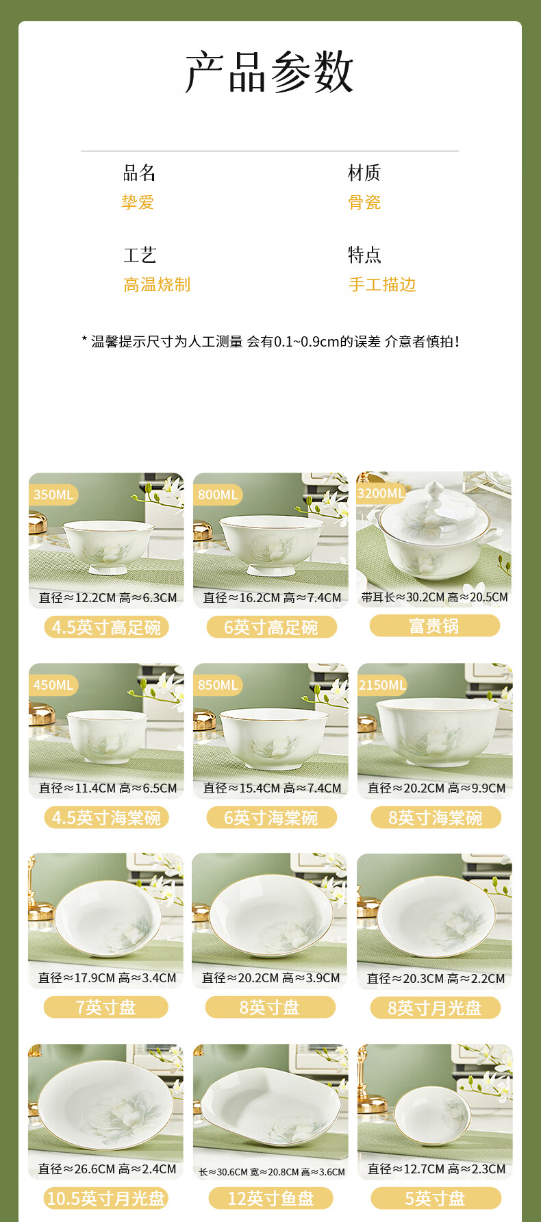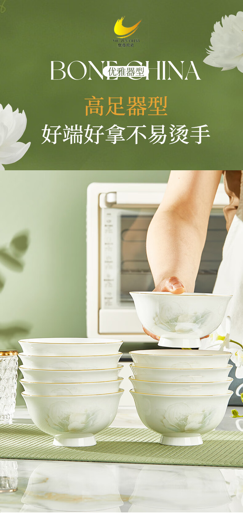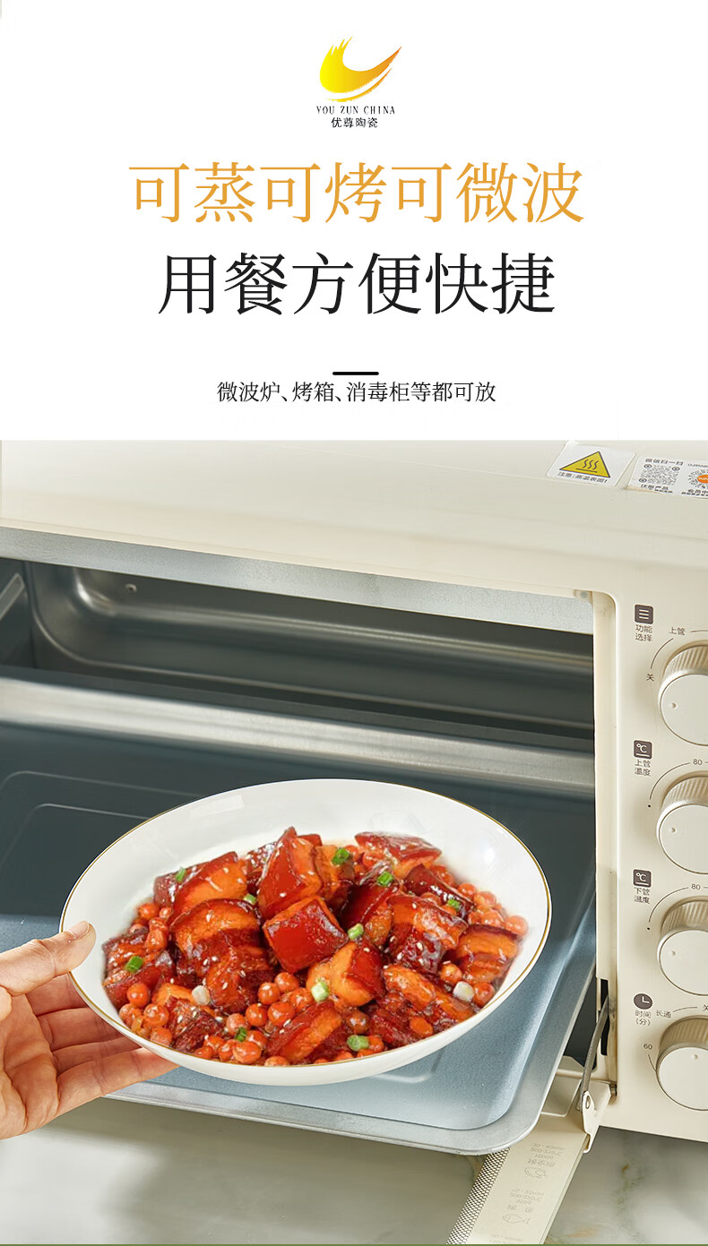 Youzun Ceramics bone china bowl and dish set for home move-in and new home gift new light luxury high-end tableware plate and dish set 60-piece gift box Begonia bowl series soup bowl version