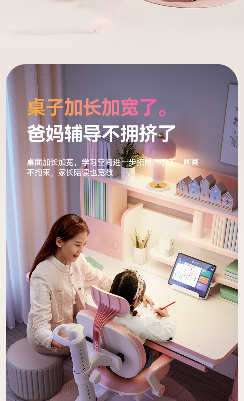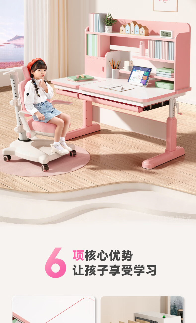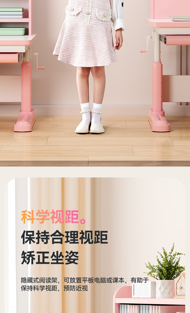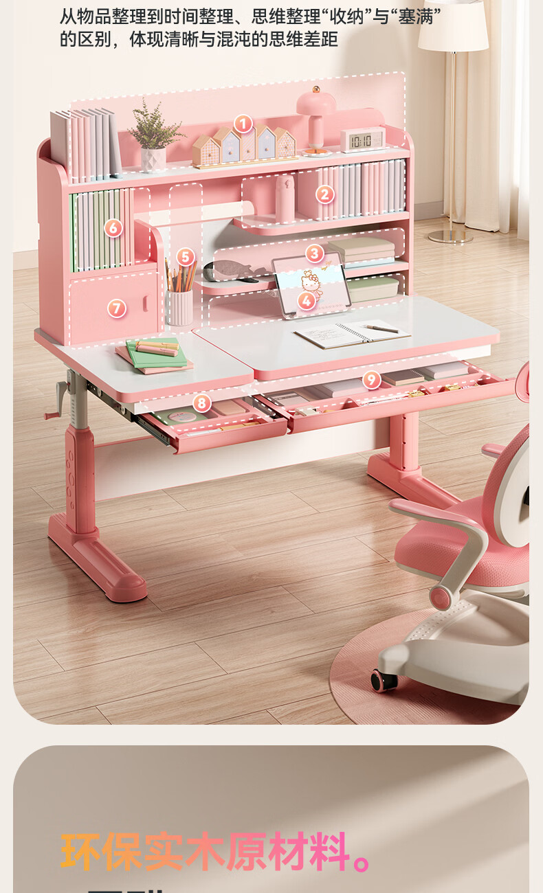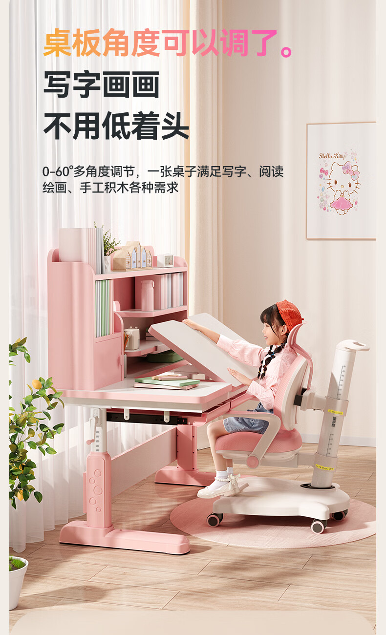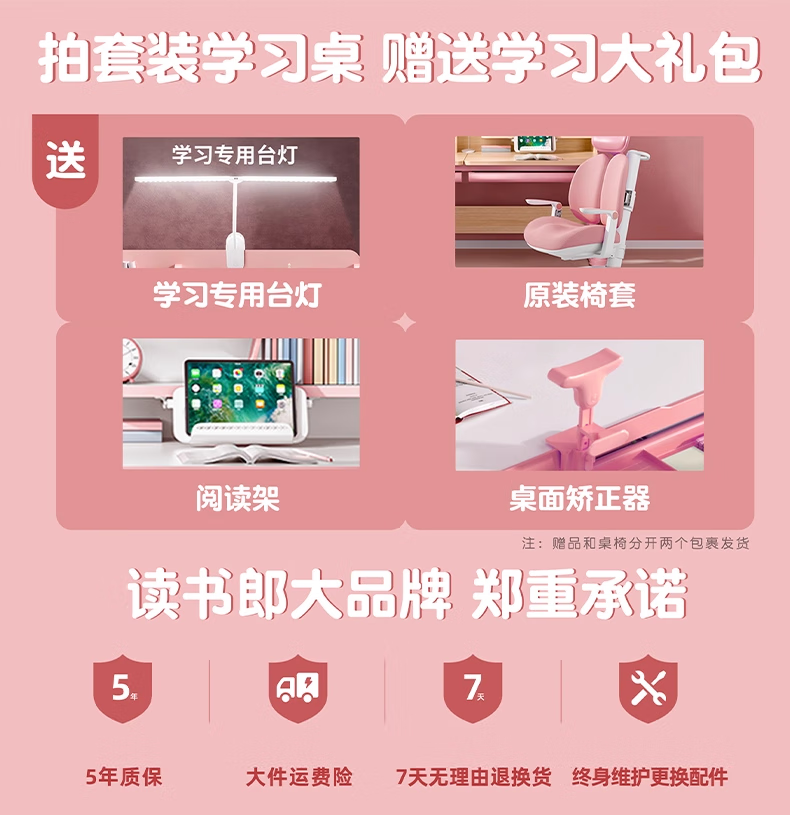 Reading Lang children's study table for home writing and learning special adjustable primary school desk table and chair package pink 0.8M desk + study chair