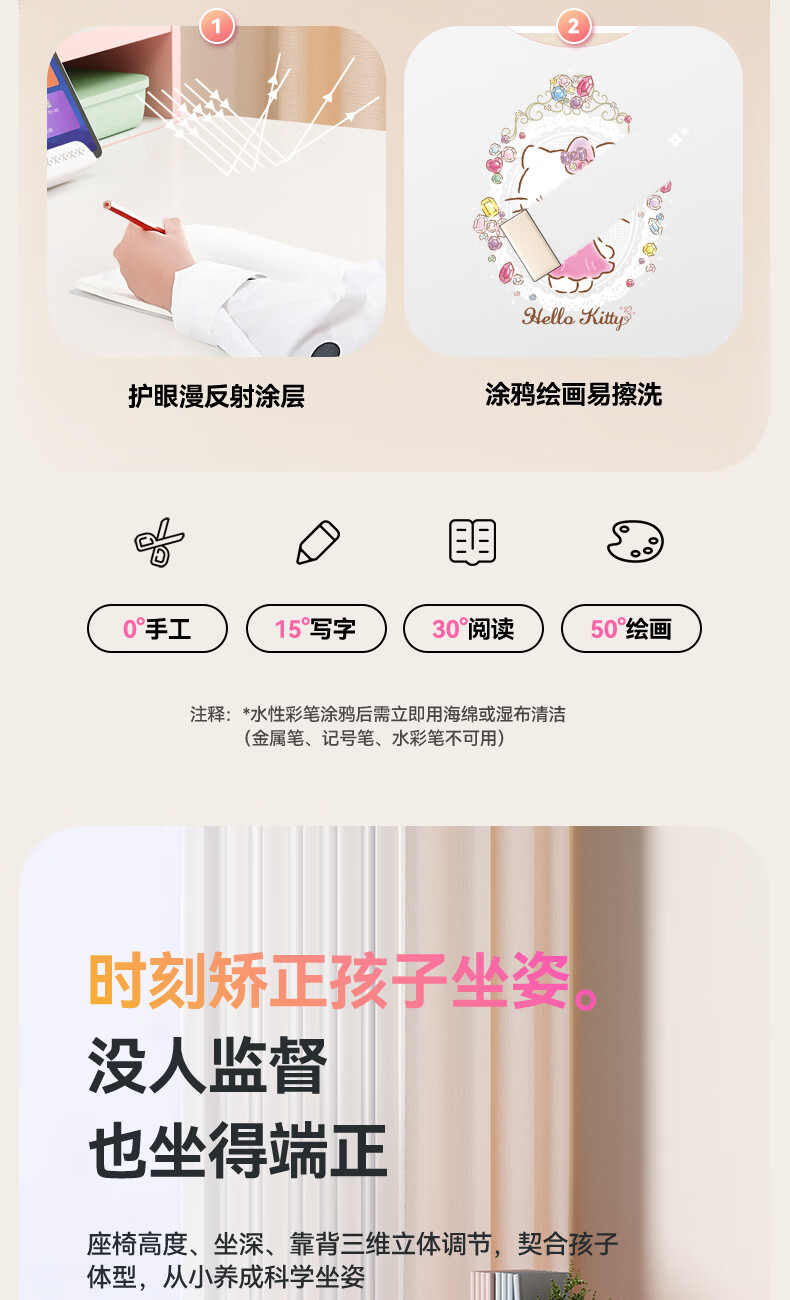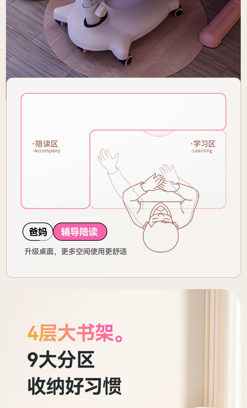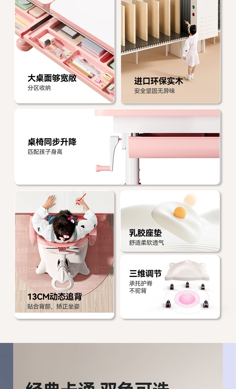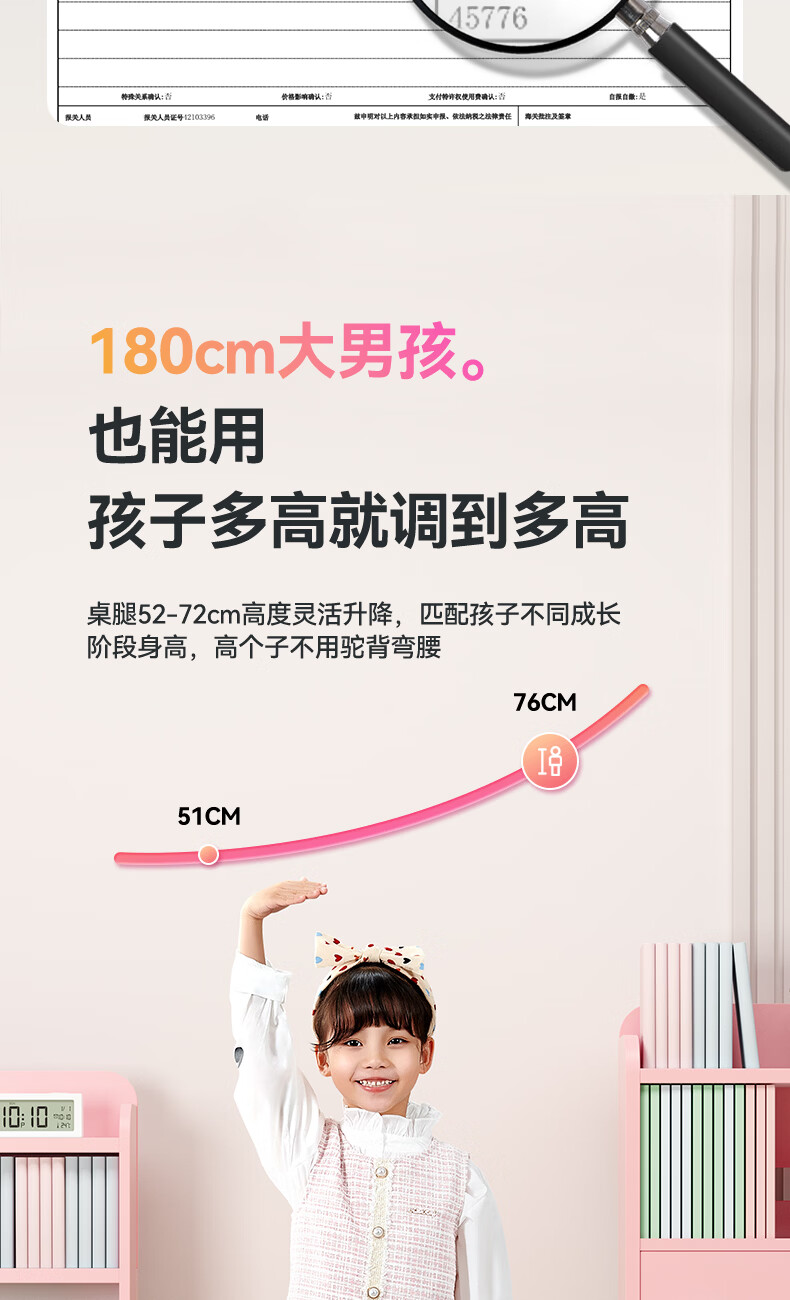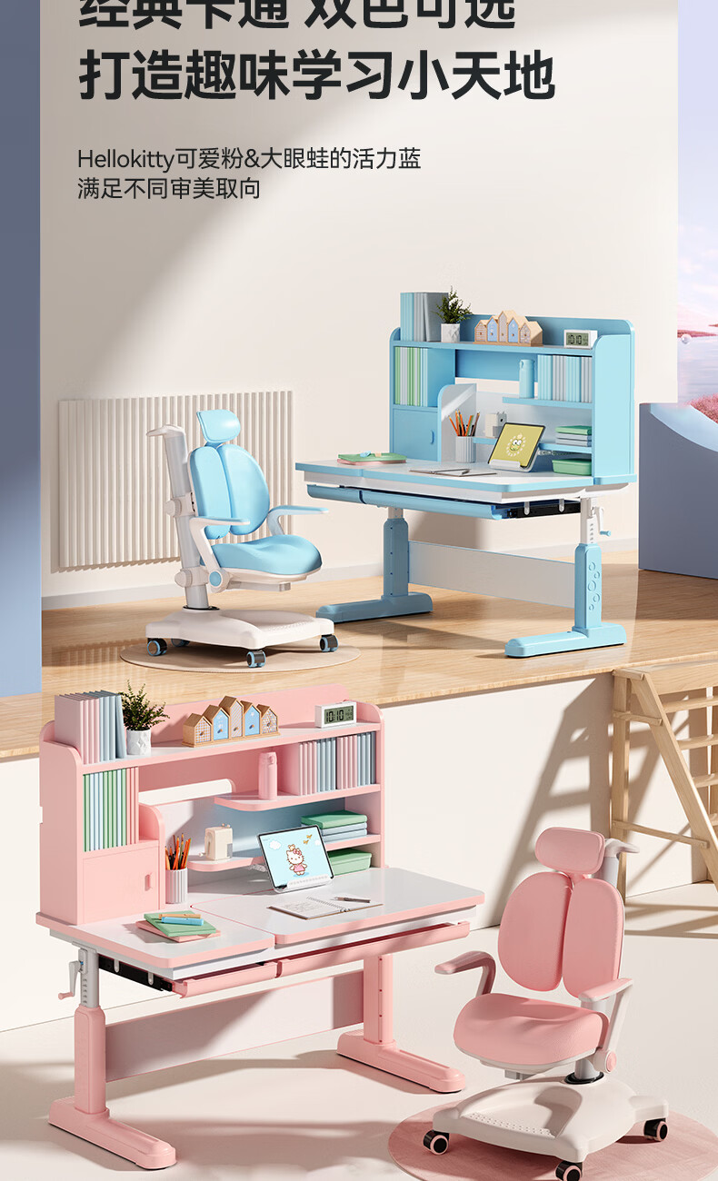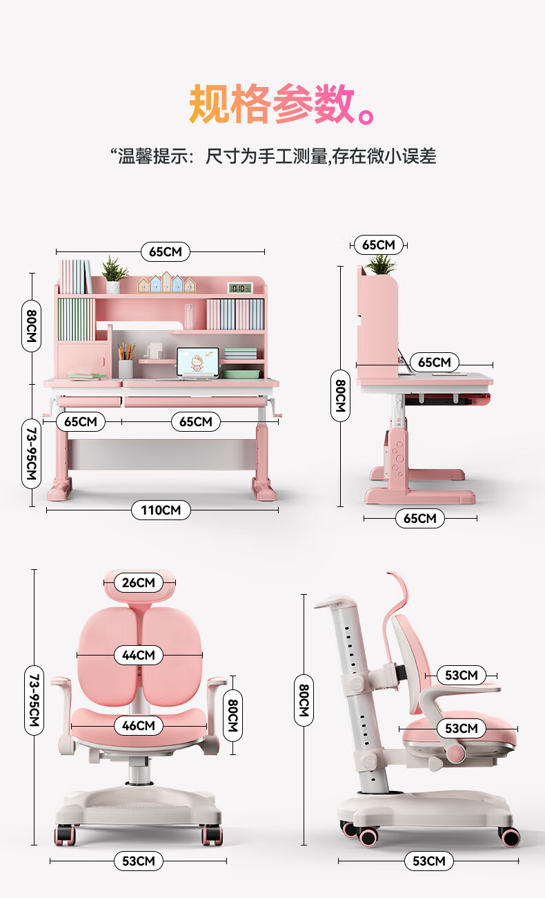 Reading Lang children's study table for home writing and learning special adjustable primary school desk table and chair package pink 0.8M desk + study chair