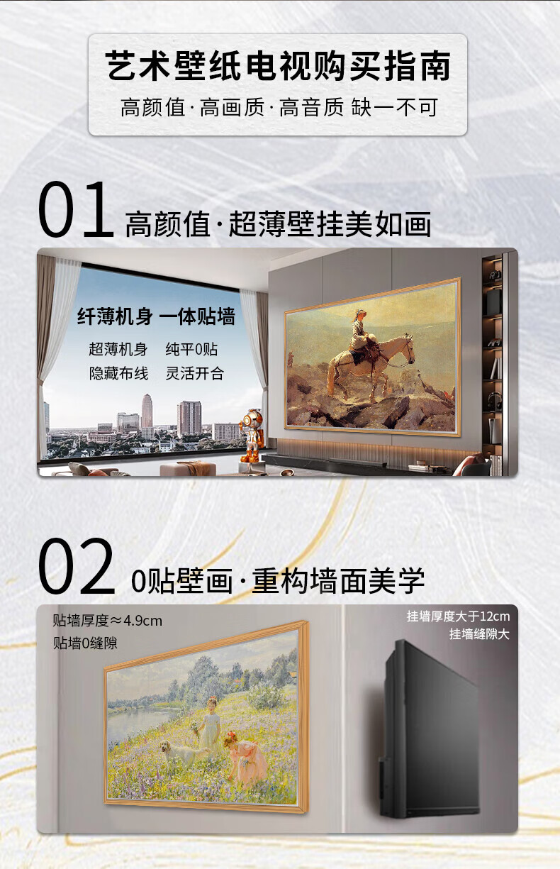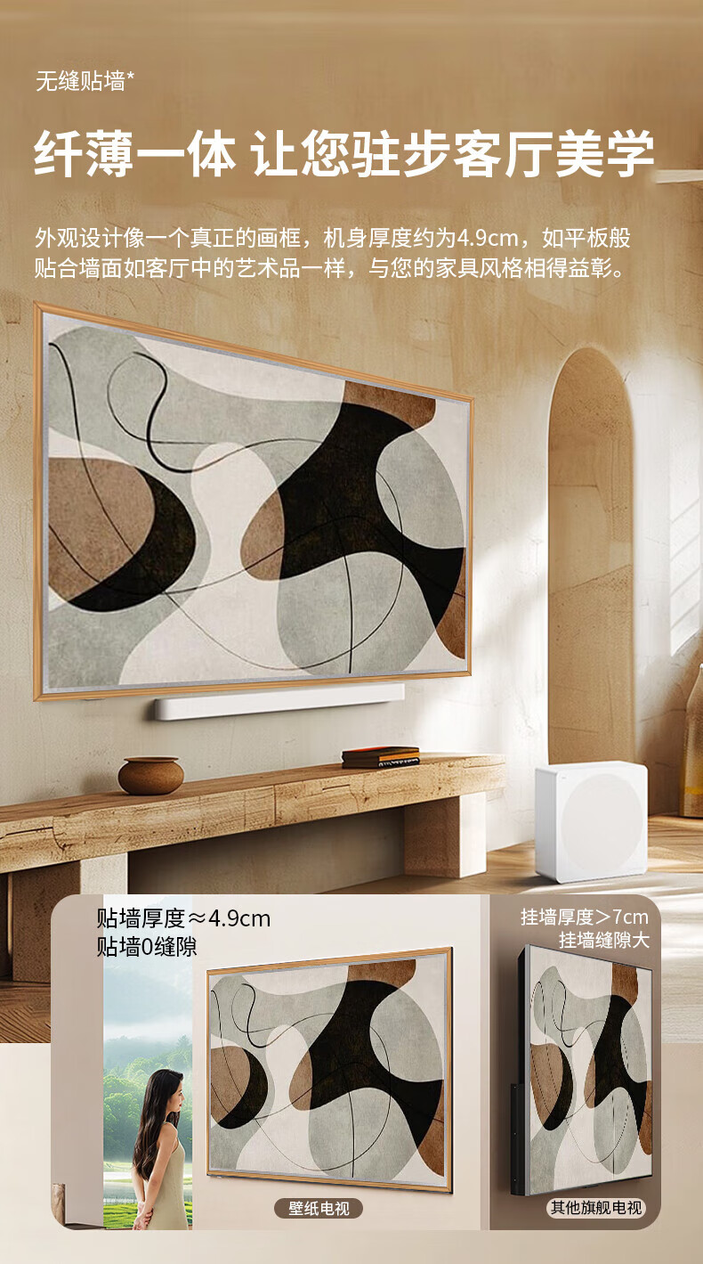 Shiji wallpaper TV 4K ultra-thin seamless wall wallpaper TV ultra-thin mural matte screen display seamless wall art TV smart flat-panel LCD TV 43-inch 4K home installation