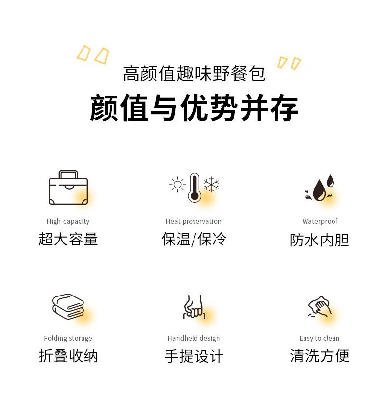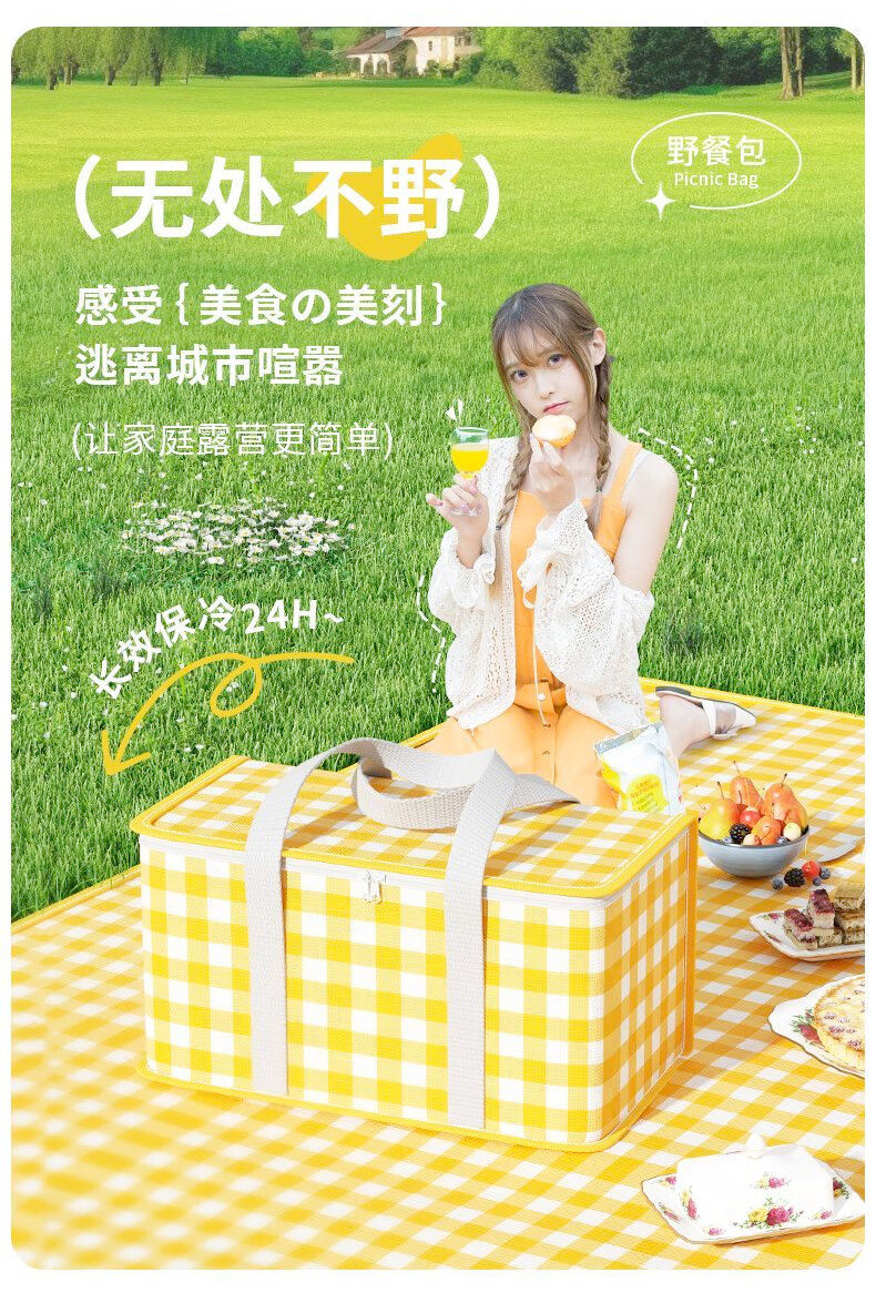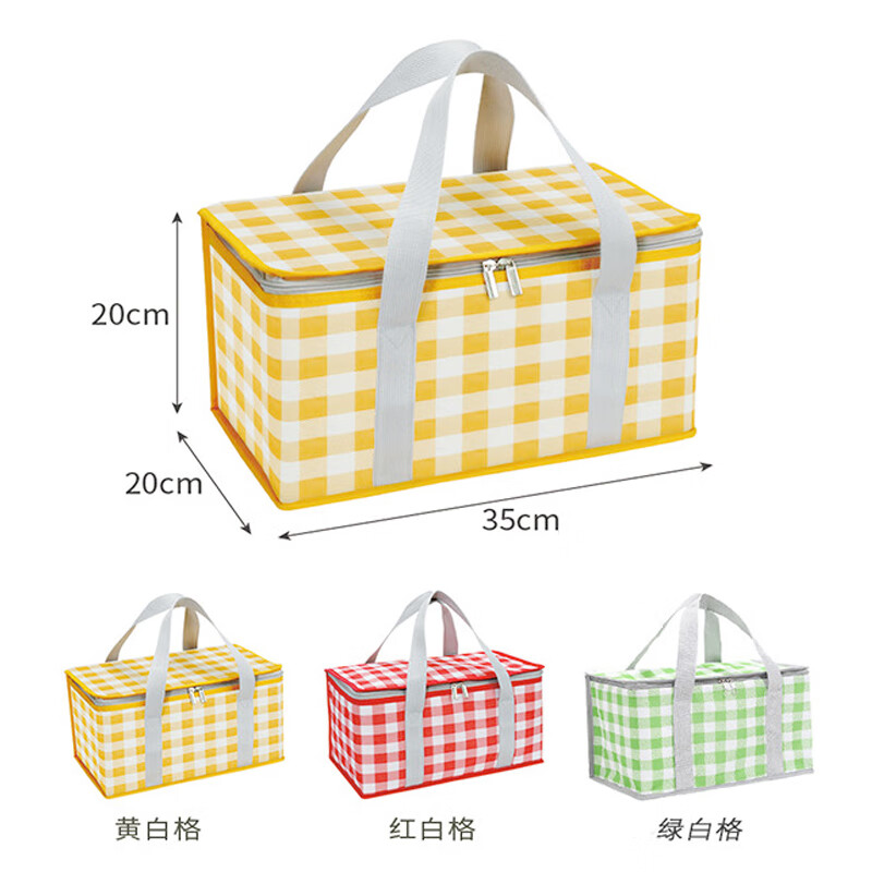 Portable folding insulated box, outdoor picnic ice bag, refrigerator, take-out special, car cooling bag insulated box, yellow and white grid