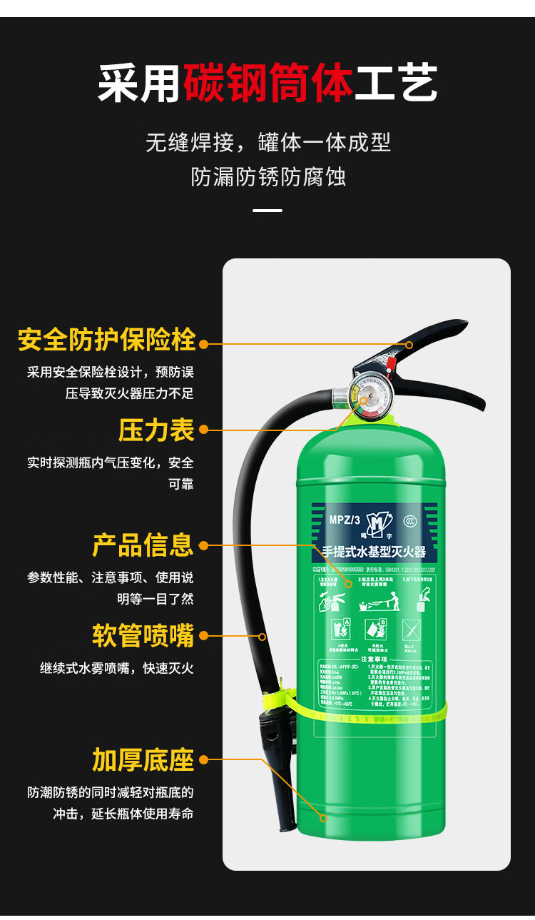 Water-based fire extinguisher 3 liters shop factory household 2L6L9L portable trolley-type environmentally friendly car-mounted oil-fired electric fire 550ml water-based fire extinguisher (red) car recommendation