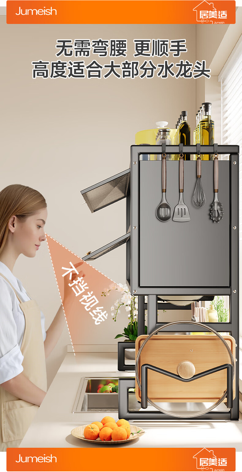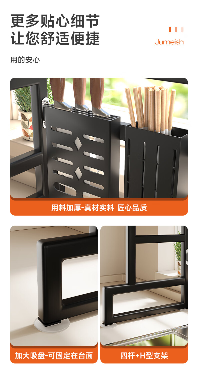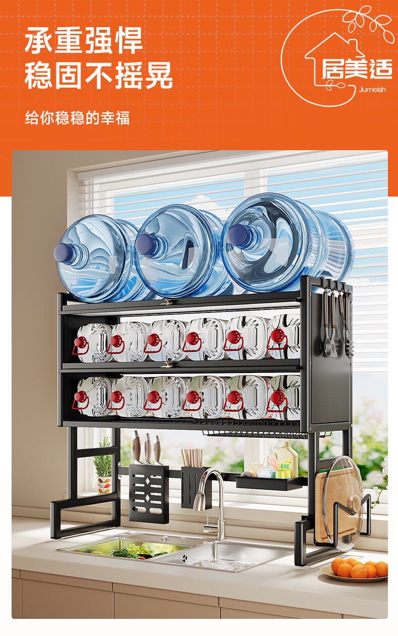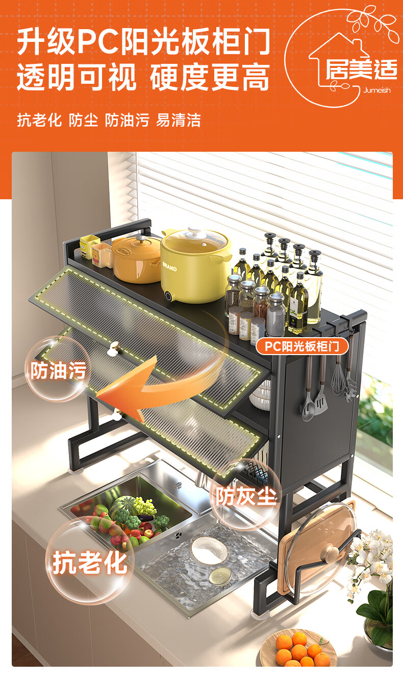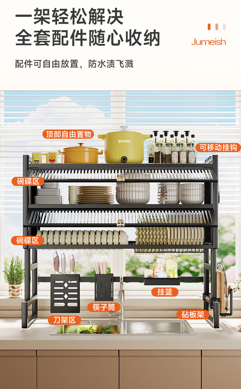 Jumeishi kitchen sink rack dish drainer with door dust-proof rack above cabinet countertop cupboard multi-functional storage rack Yaohei-double layer length 65cm+6 hooks+luxury set